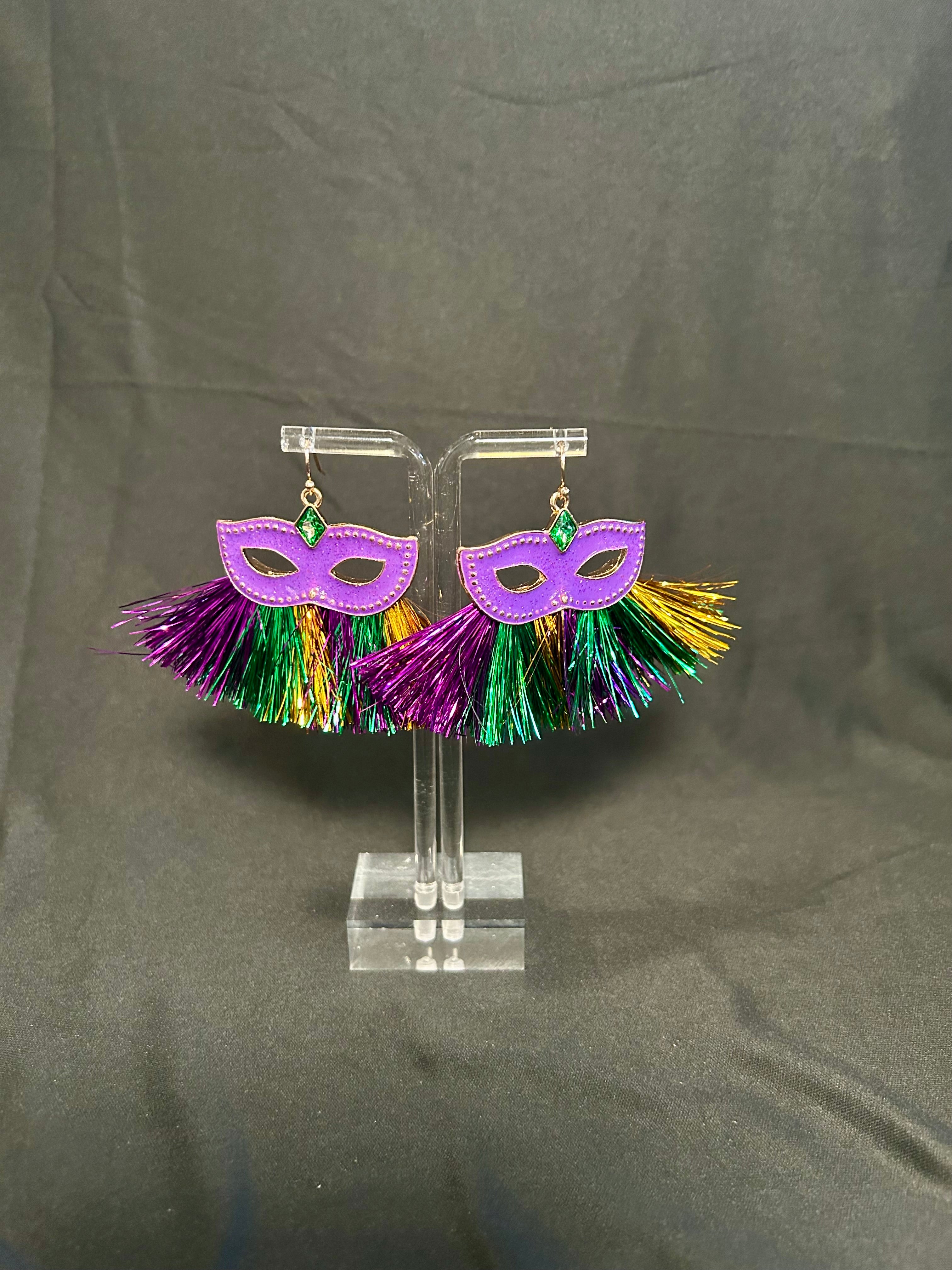 Mardi Gras Mask Tassel Fringe Dangle Earrings