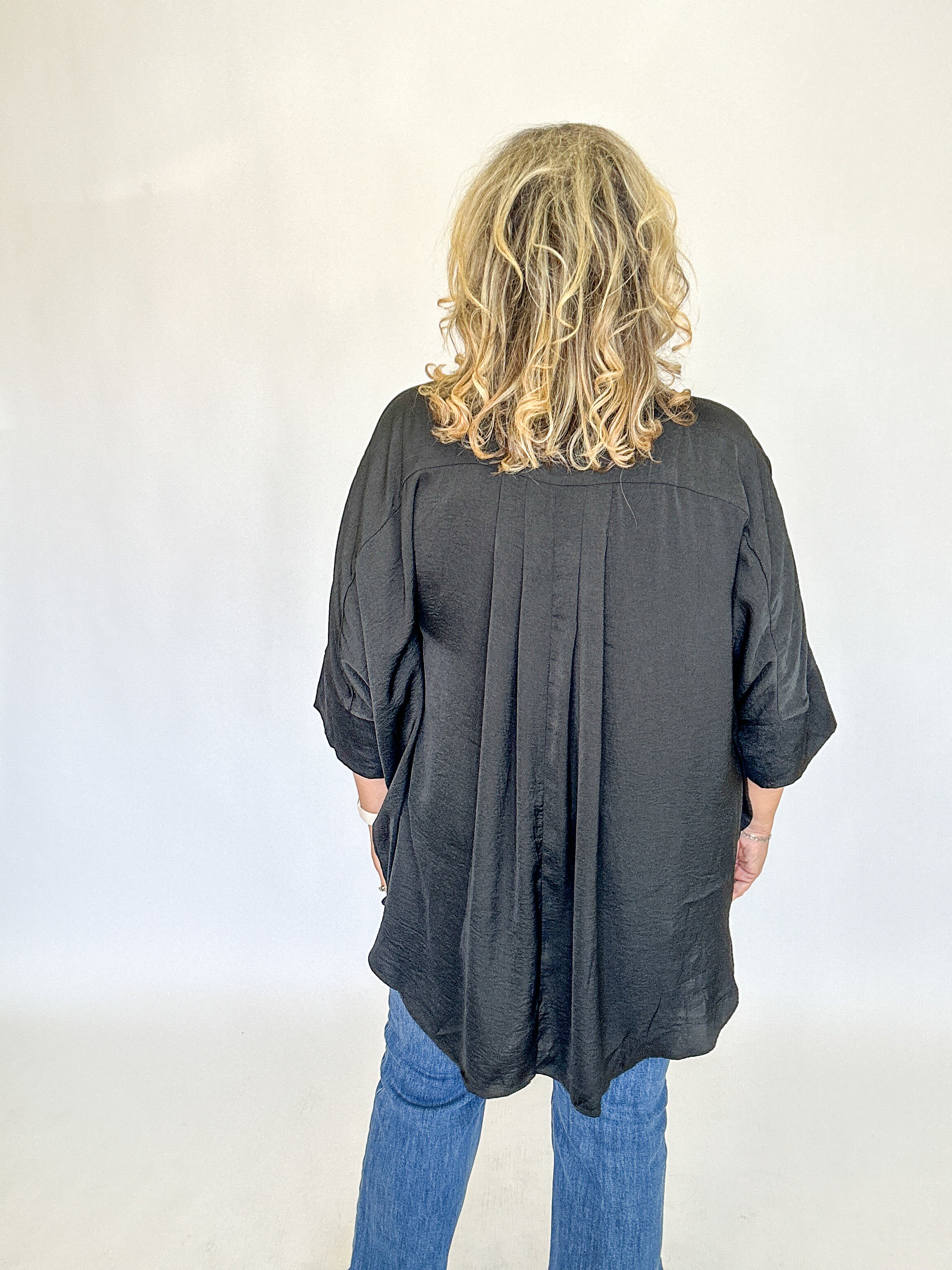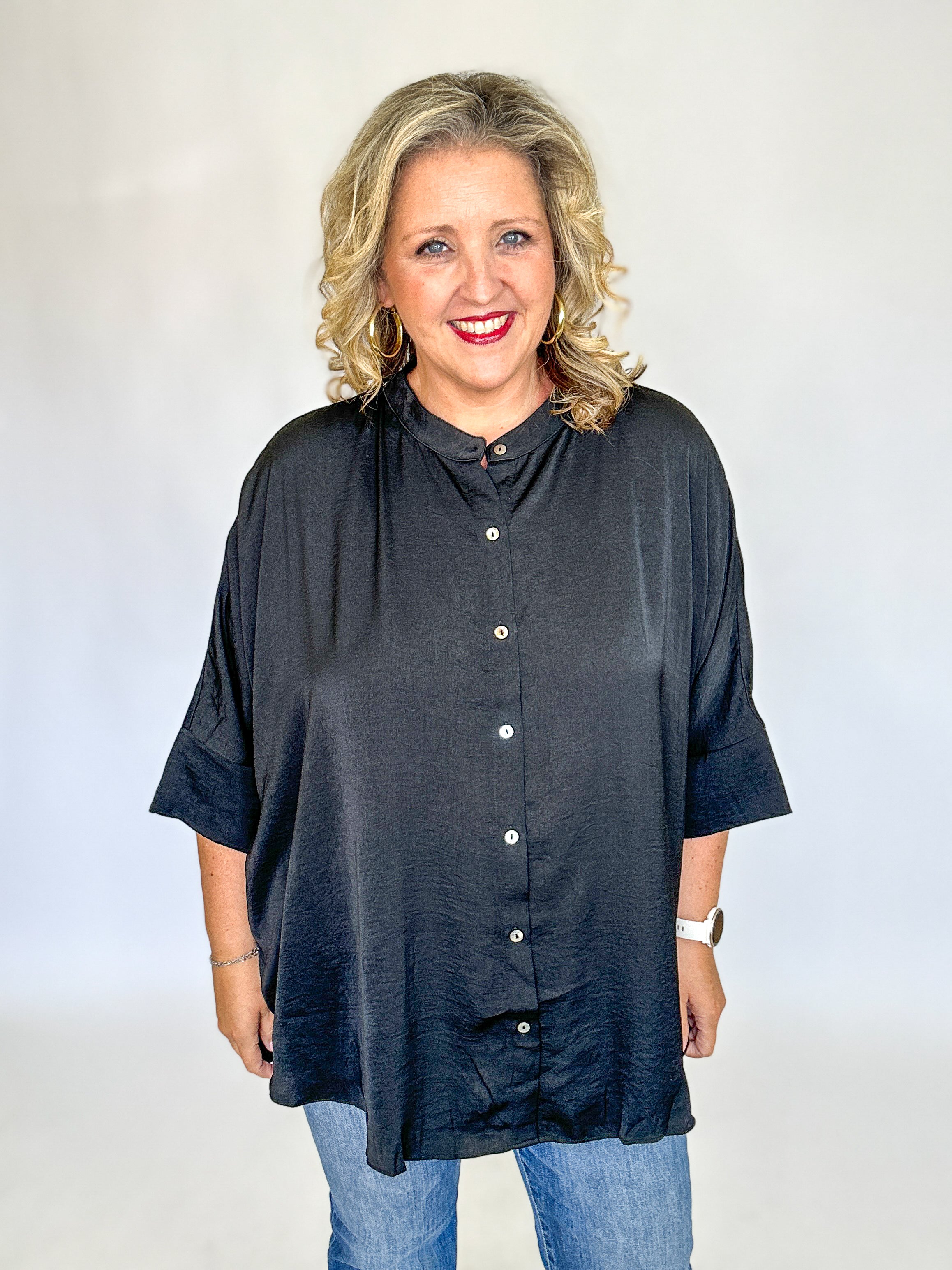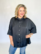 The lightweight, breathable fabric keeps things cool, while the button-front detail and soft texture add just the right amount of polish. With its oversized feel and easy movement, this top is perfect for dressing up or keeping it casual.