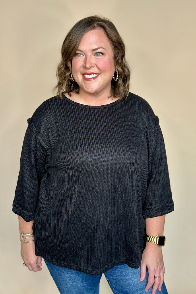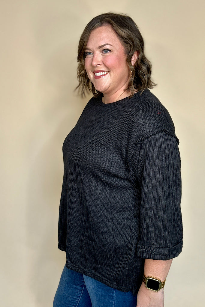 Black Ribbed Knit Top