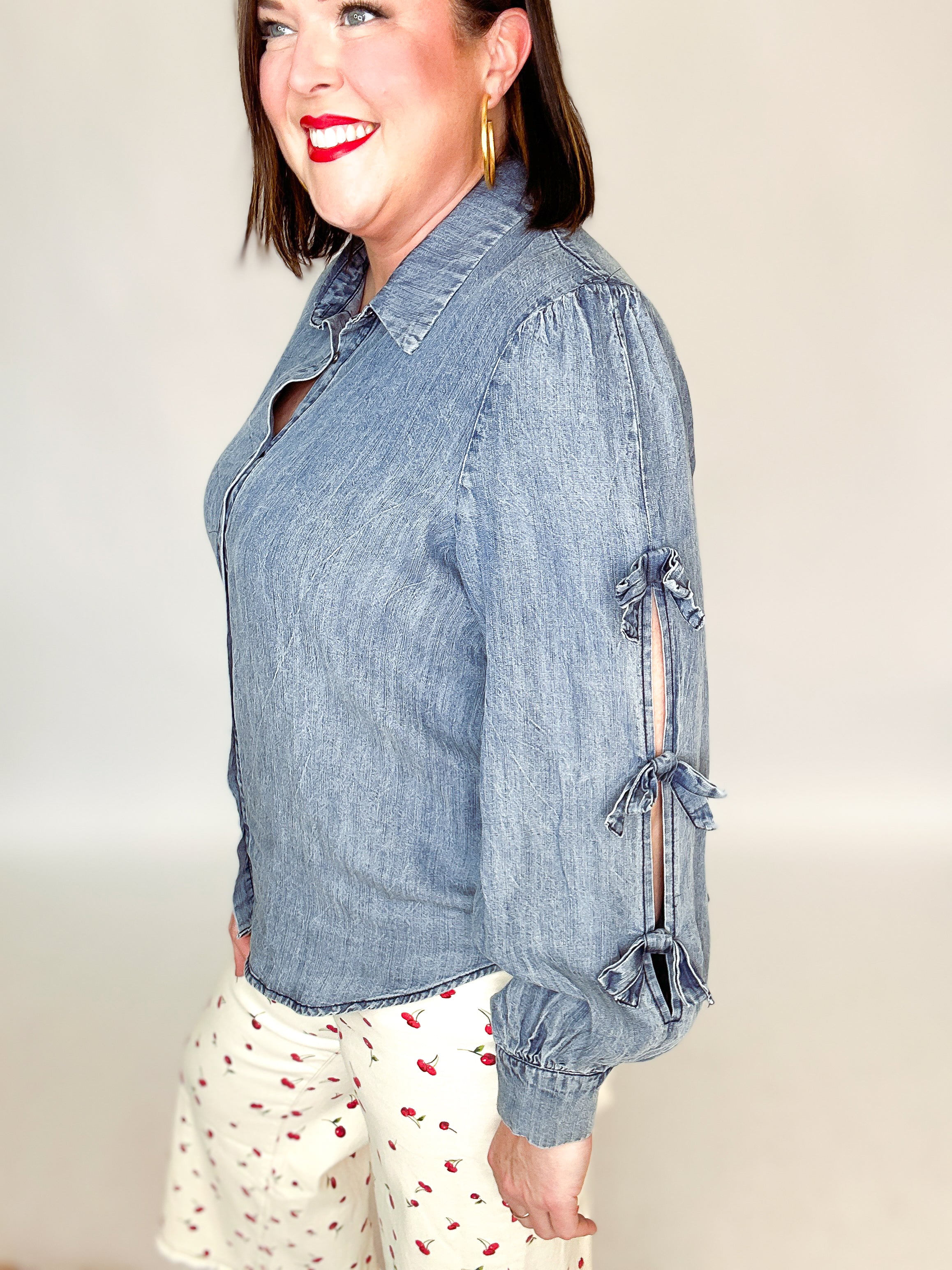 Bow Detail Washed Denim Top
