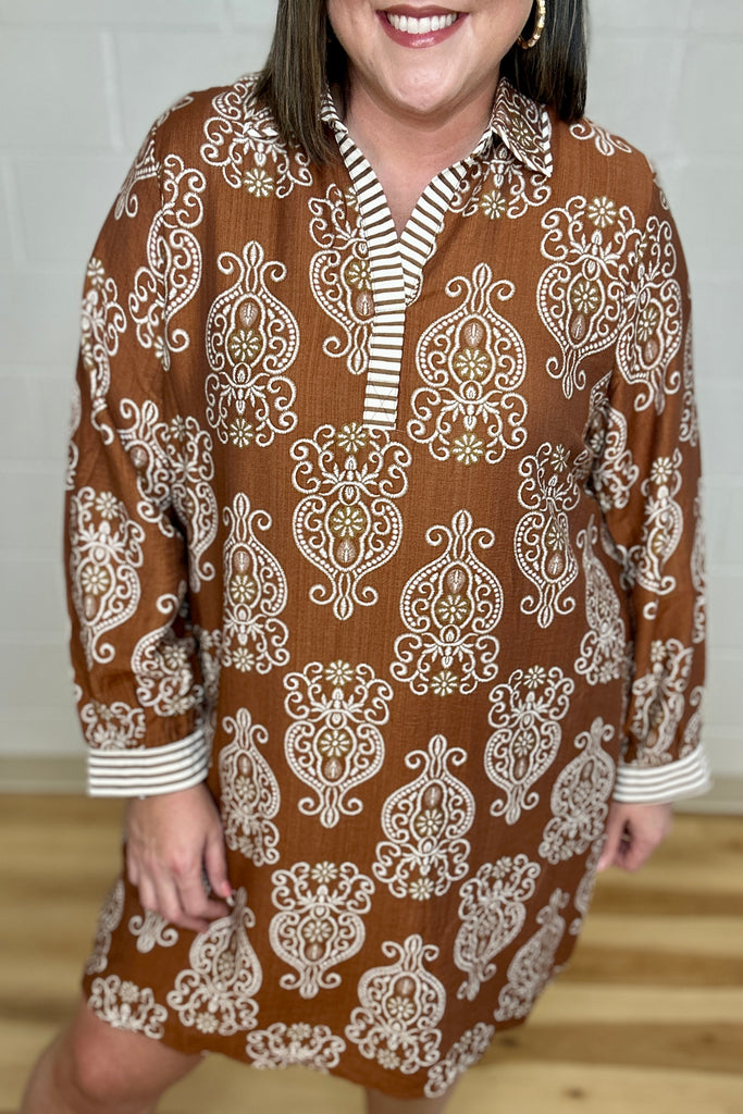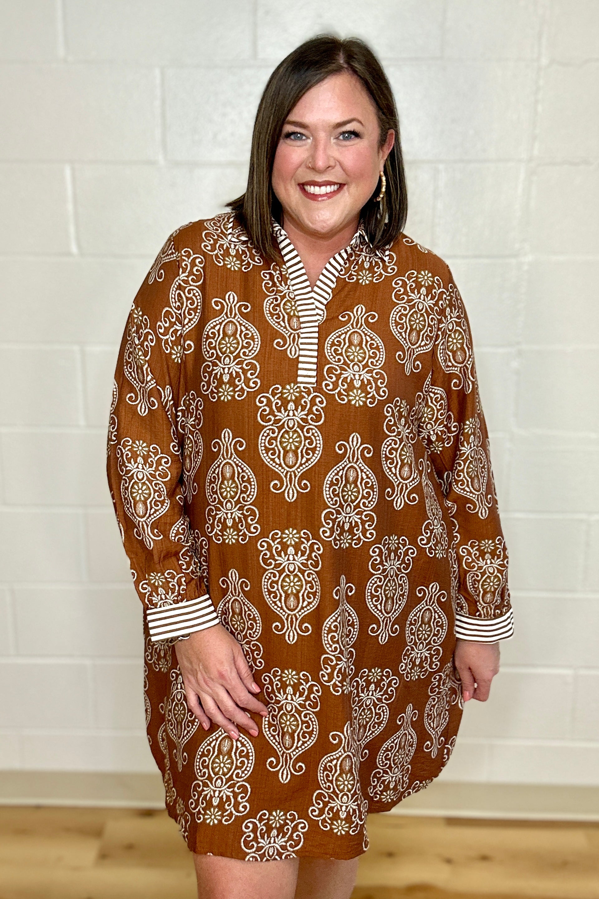 Elevate your wardrobe with this sophisticated long sleeve woven mini dress from She+Sky. Featuring intricate print details and elegant contrast accents, it combines style with practicality through thoughtfully designed pockets. Perfect for dressing up or down, this dress offers a refined silhouette that enhances your look while ensuring comfort throughout your day.