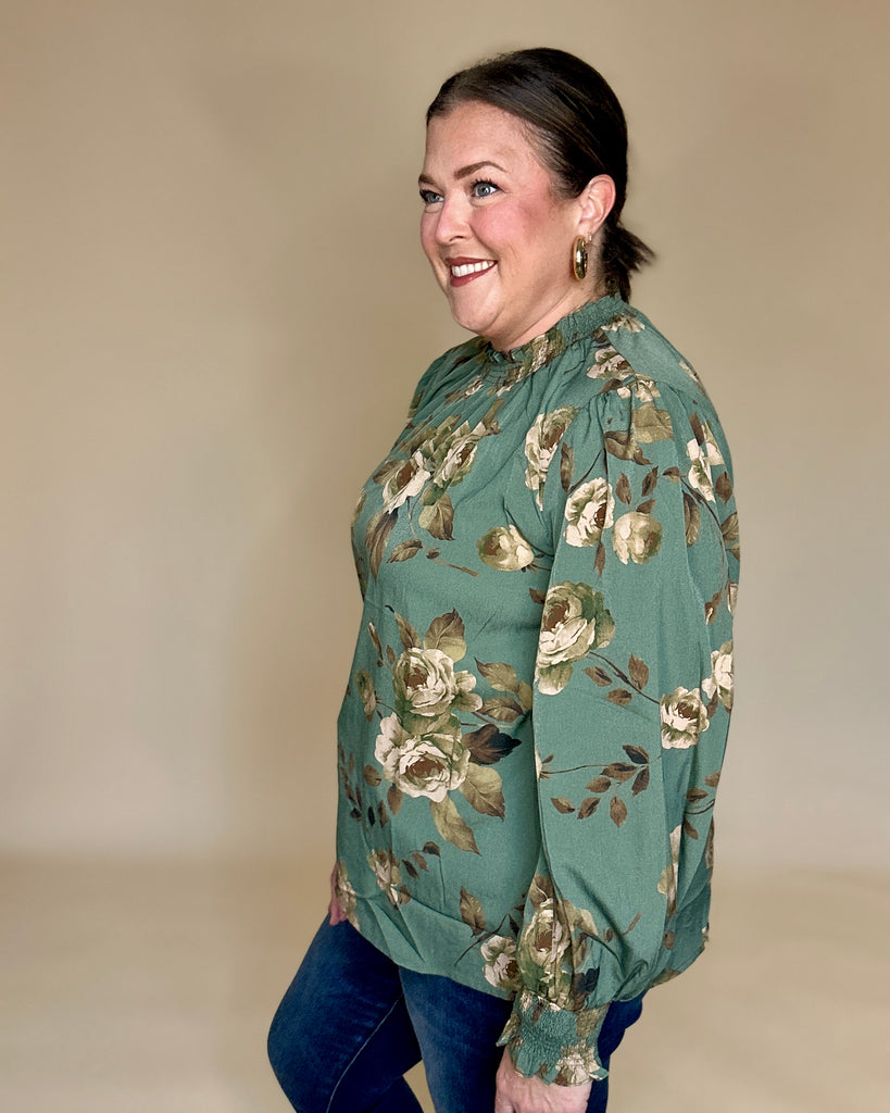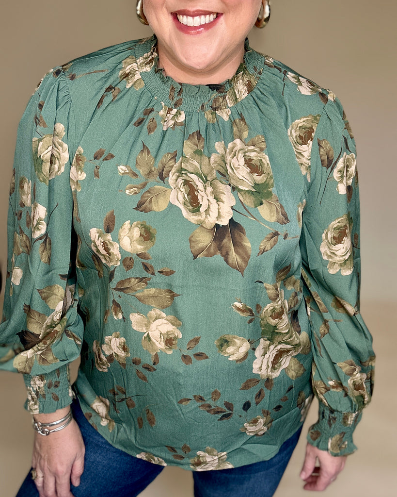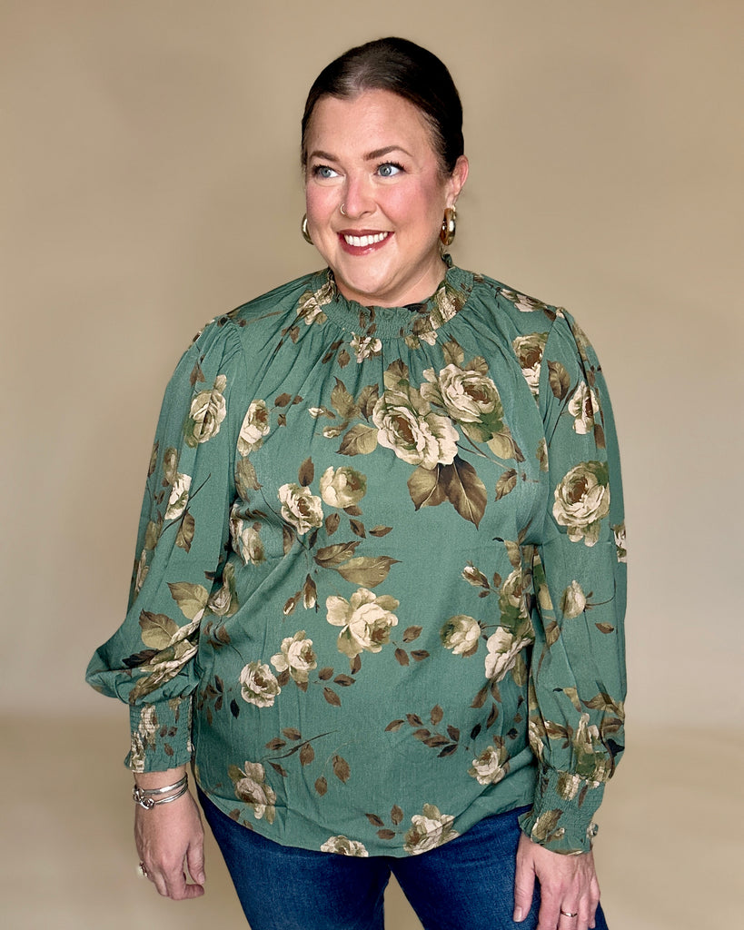 Elevate your wardrobe with this floral printed blouse from Oddi, featuring an elegantly smocked neckline and cuffs that provide a refined, tailored fit. The delicate floral pattern adds a touch of sophistication, making it perfect for both professional settings and stylish casual occasions.