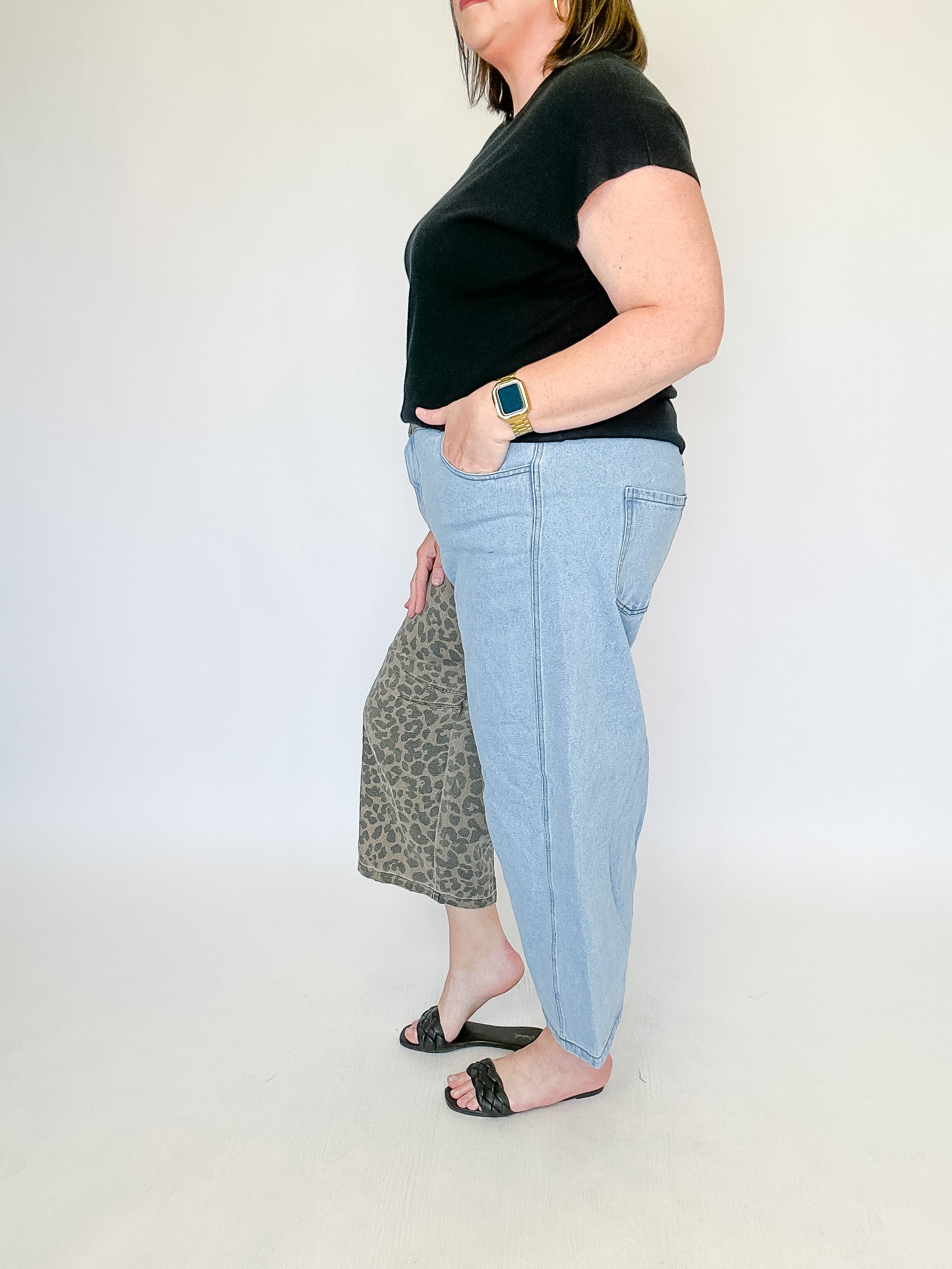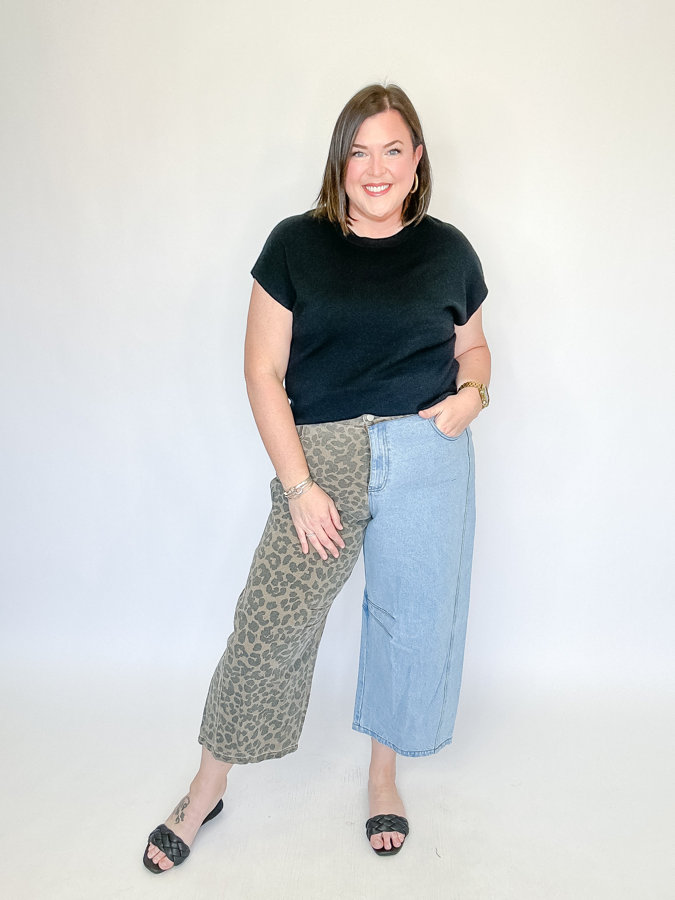Denim & Leopard Wide Leg Jeans