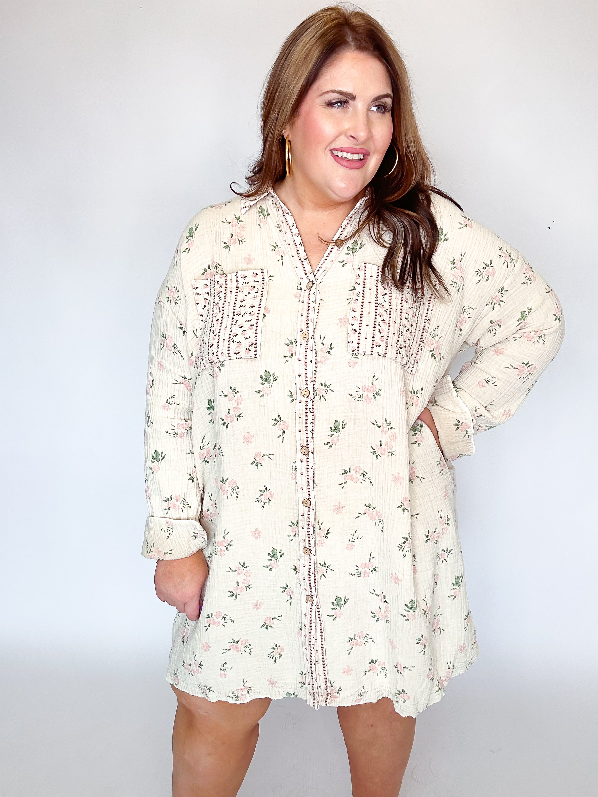 Effortless elegance meets everyday comfort in this oversized shirt dress from Easel. Crafted from textured, lightweight gauze with a mineral wash finish, it drapes beautifully while maintaining breathability. The all-over floral print adds visual interest, while practical details—including a collared neckline, button front closure, and dual chest pockets plus side pockets—make it as functional as it is stylish. Perfect for layering or wearing solo, this relaxed silhouette transitions seamlessly from casual outings to weekend getaways.