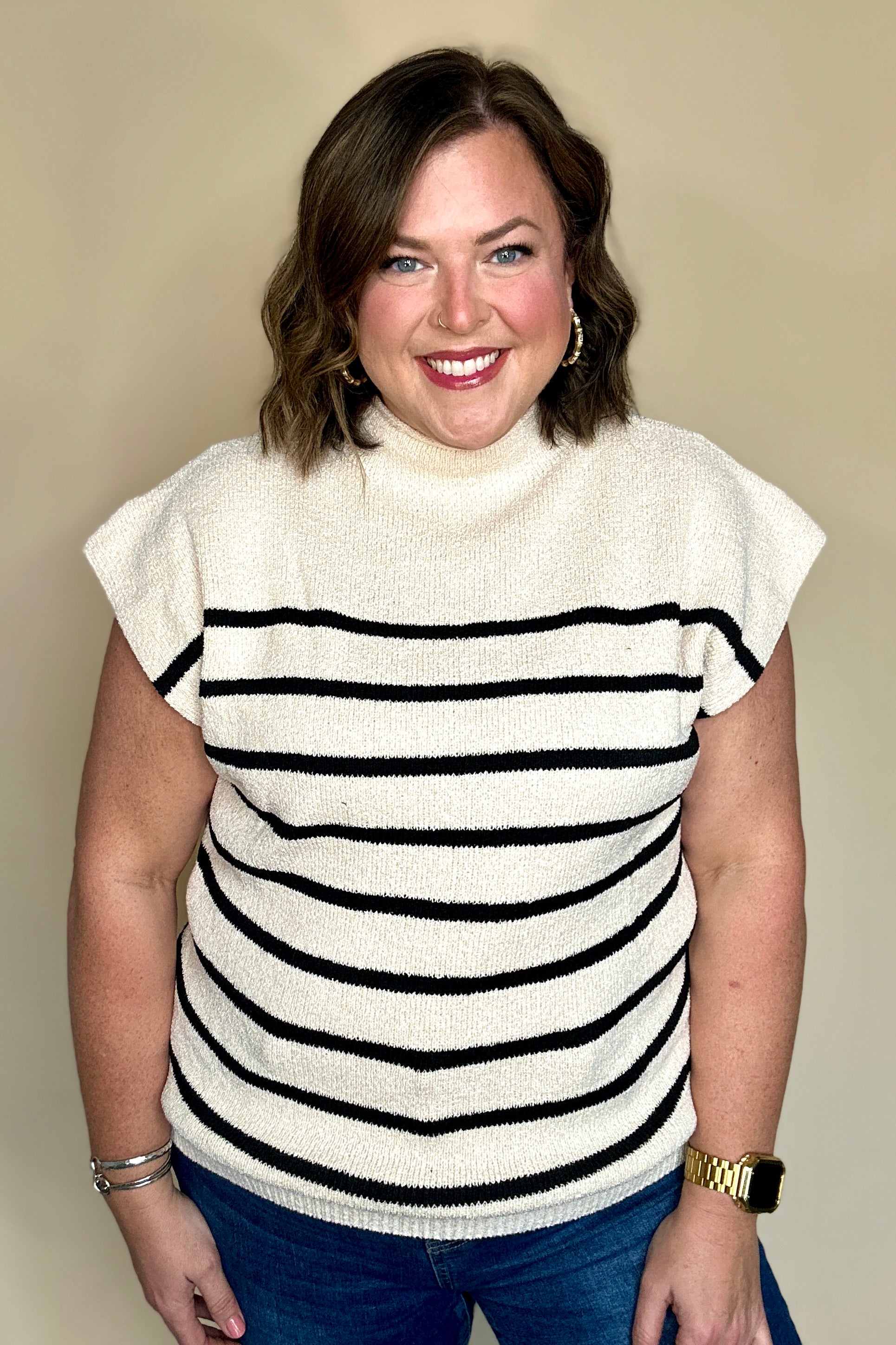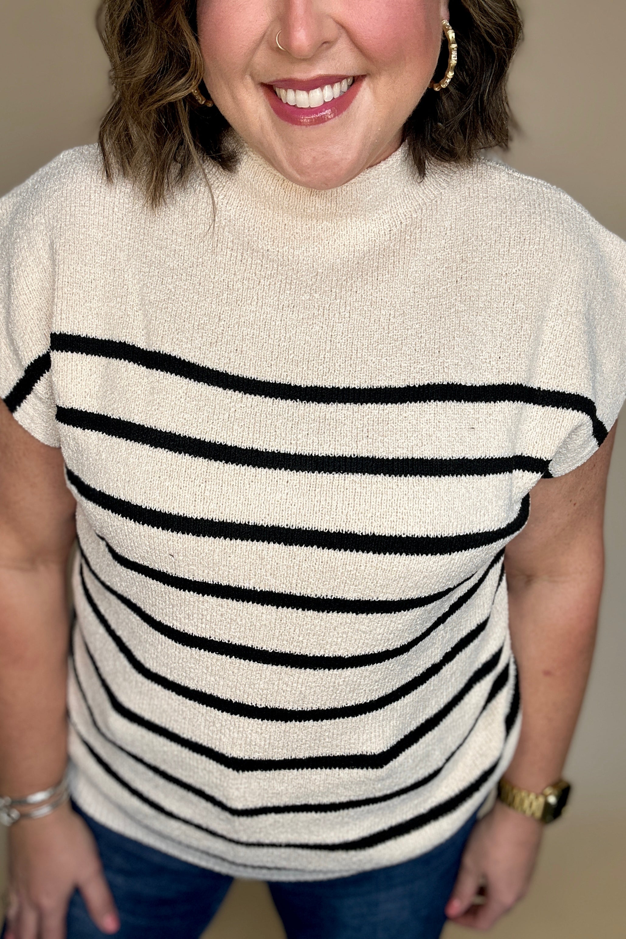 Effortlessly chic and undeniably comfortable, this drop shoulder mock neck striped sweater top from She+Sky delivers laid-back sophistication. The relaxed drop shoulder silhouette flatters every frame while the classic striped pattern adds visual interest to your everyday rotation. The mock neck provides just the right amount of coverage and structure, making it perfect for layering or wearing solo. Whether you're heading to the office, meeting friends, or settling in at home, this versatile piece transitions seamlessly through your week. Elevate your basics with a sweater that combines timeless style with modern comfort.