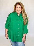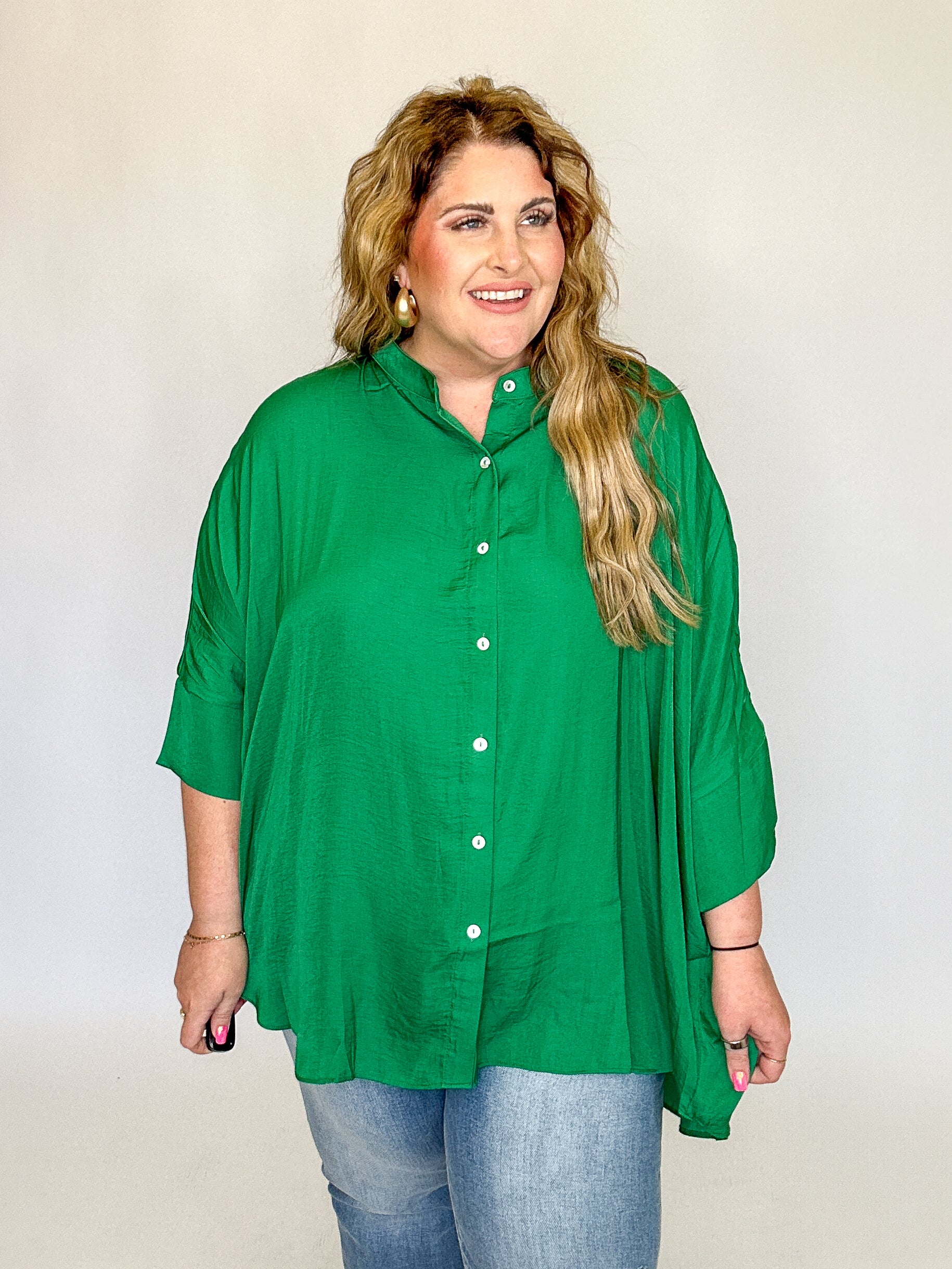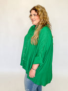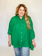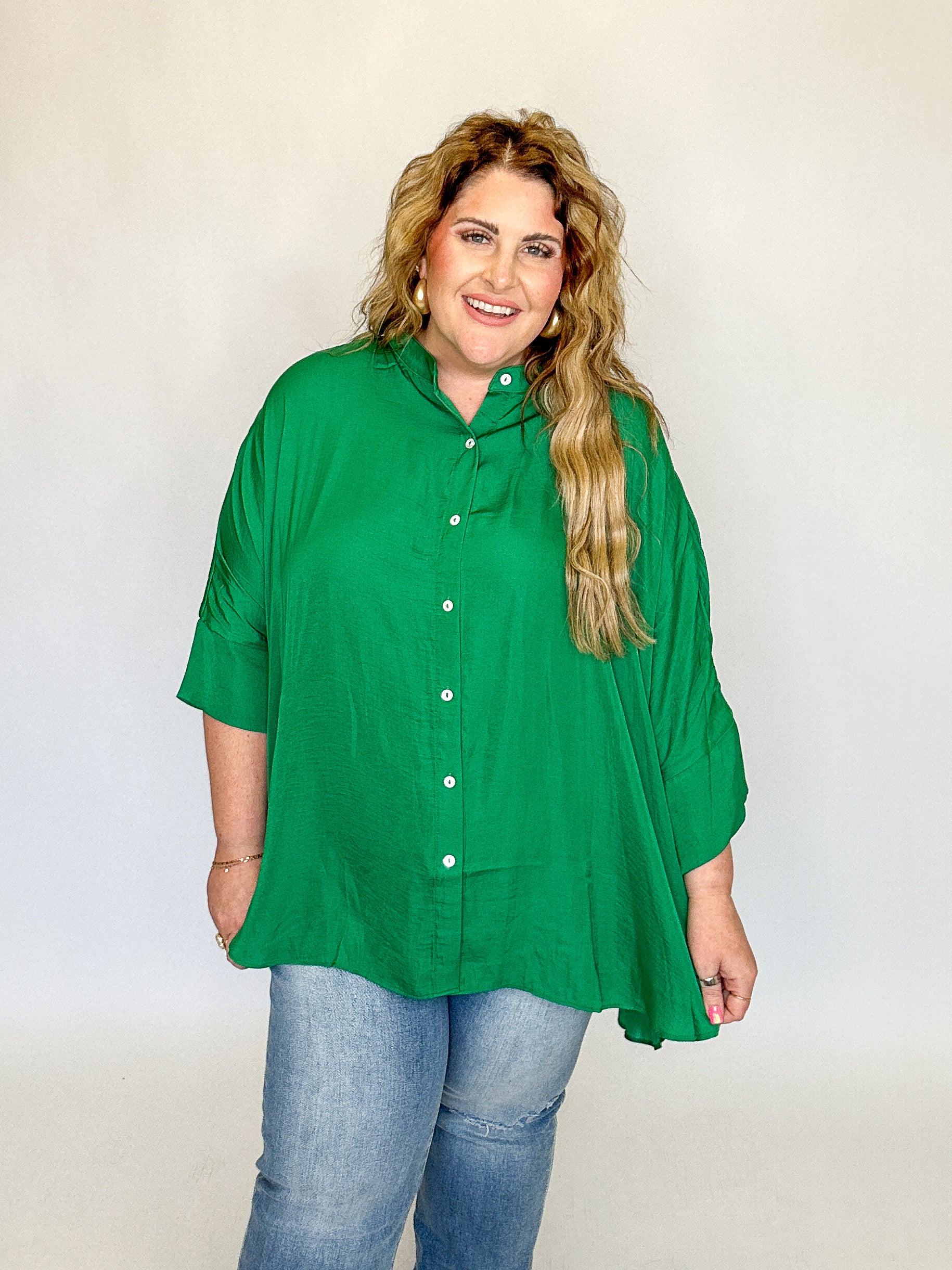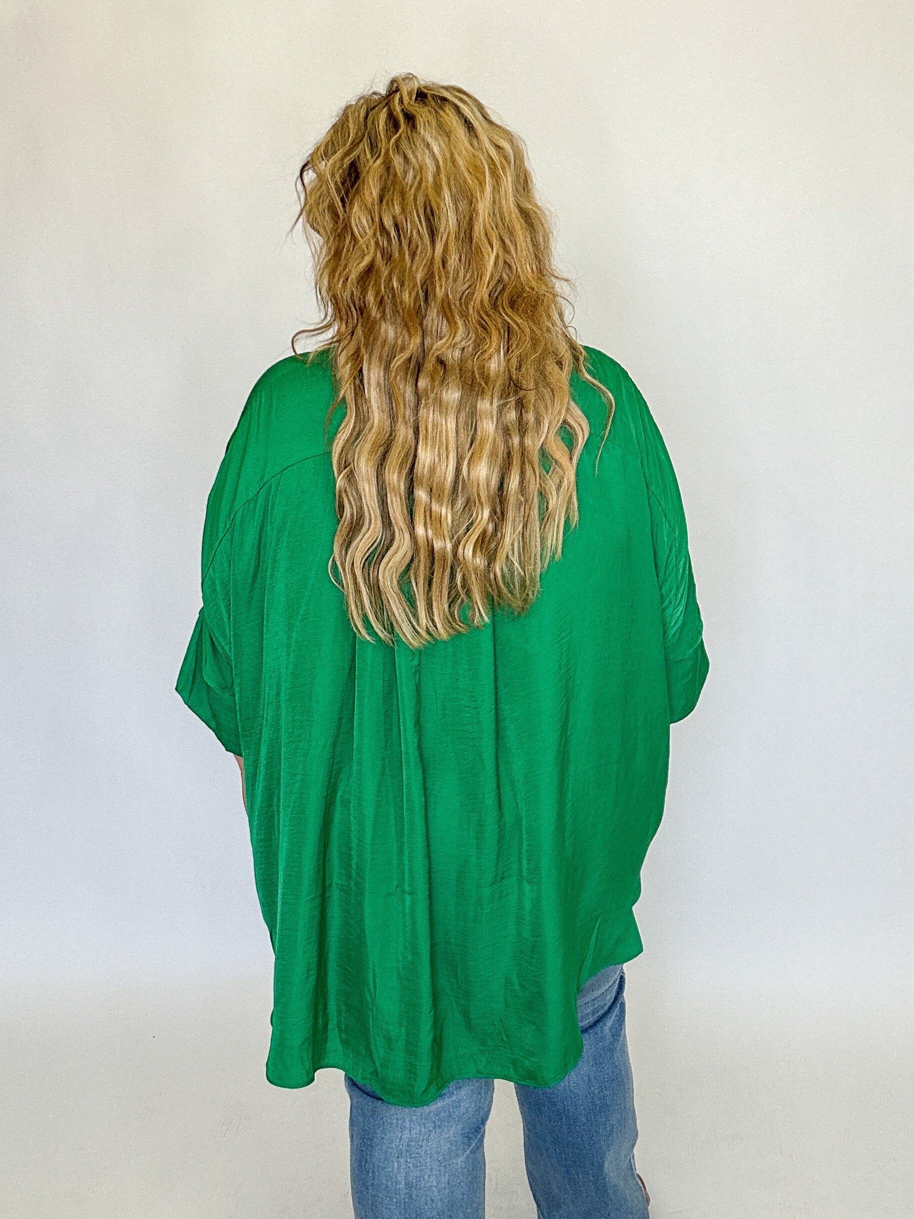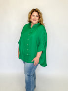 This vibrant emerald green top is the perfect statement piece for easy, everyday style. Designed with a relaxed, flowy silhouette, it drapes beautifully for a comfortable and flattering fit you’ll reach for again and again.