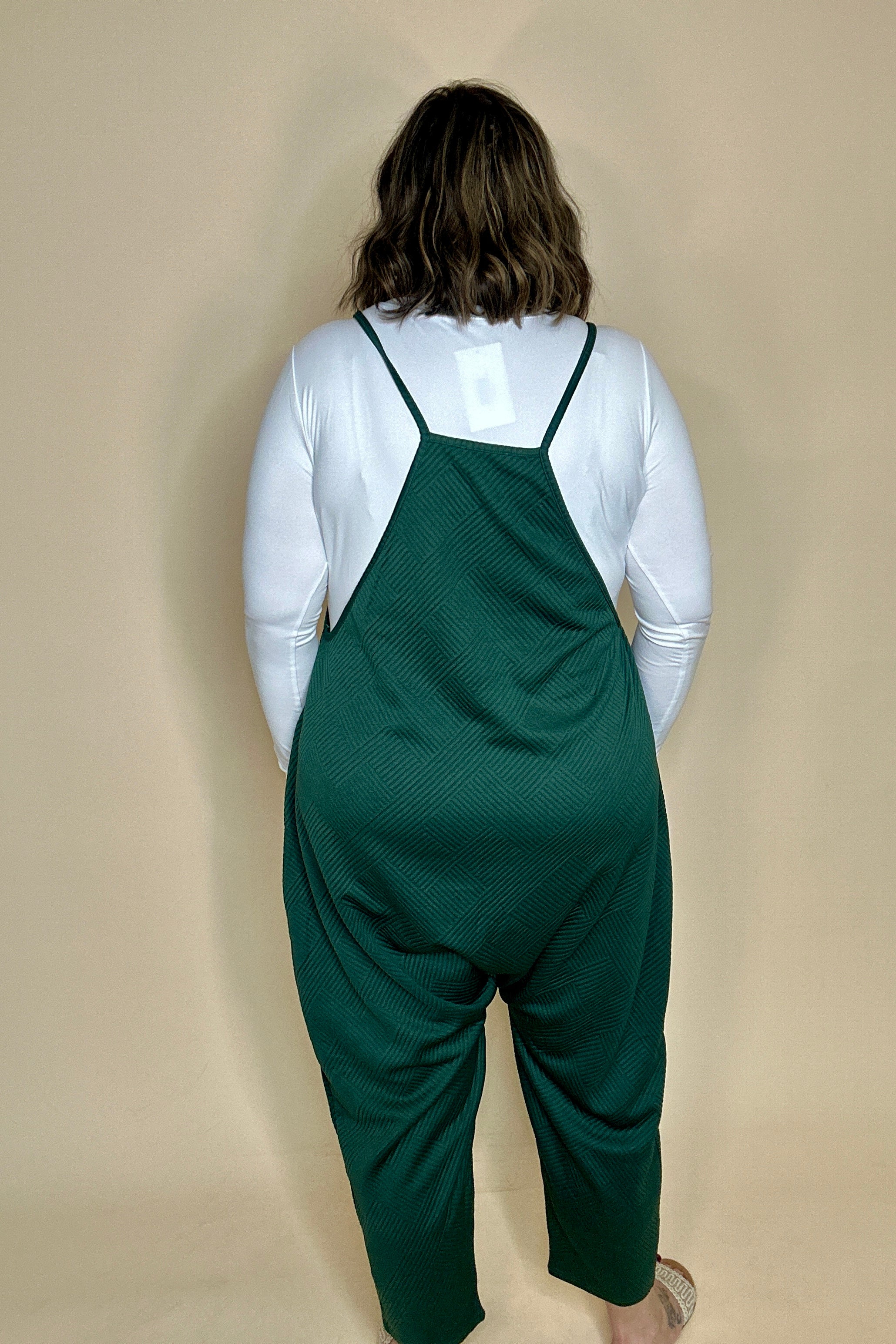 Step into effortless style with this forest green jumpsuit by VeryJ featuring a playful v-neck and delicate spaghetti straps. The textured fabric adds a fun twist, while handy front pockets keep your essentials close. Perfect for sunny days or casual nights out, it’s a fresh and flirty choice that’s as comfortable as it is cute.