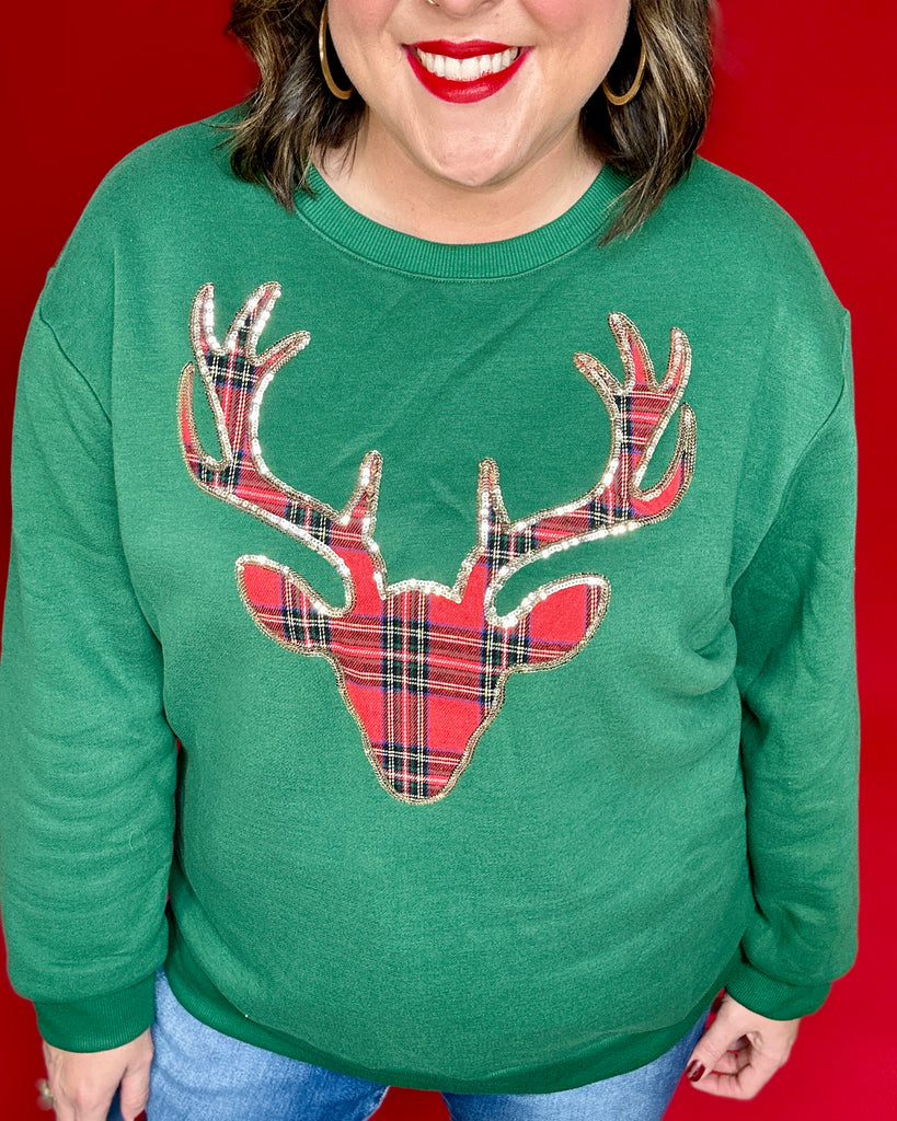 Embrace festive comfort with the She+Sky Long Sleeve Christmas Plaid Reindeer Knit Top. Crafted from soft knit fabric, this top features a classic plaid pattern complemented by charming reindeer motifs, perfectly capturing holiday spirit. Its long sleeves provide warmth, making it ideal for seasonal gatherings or cozy days at home. The expert blend of style and comfort ensures you look festive while staying comfortable throughout the holidays.
