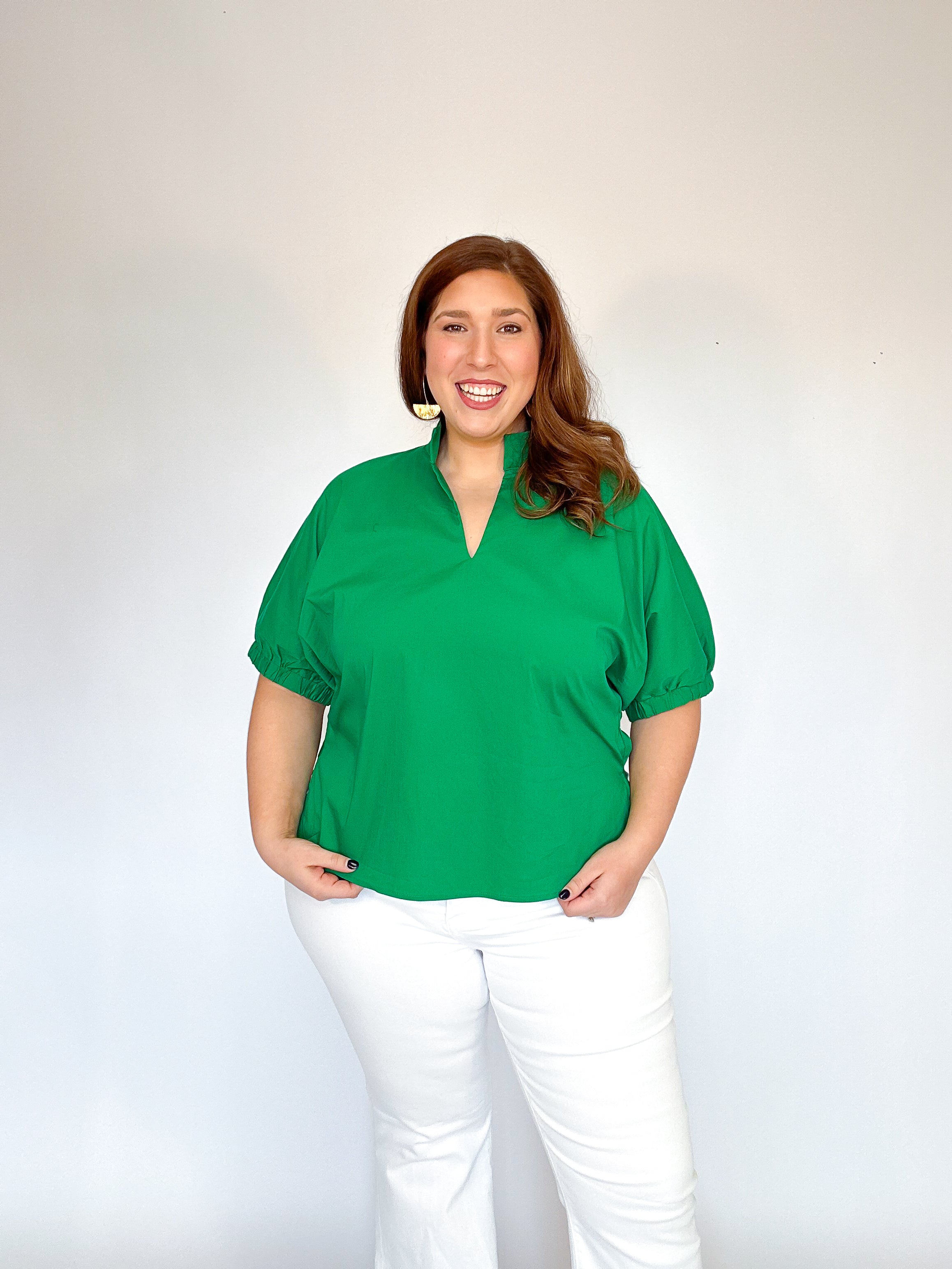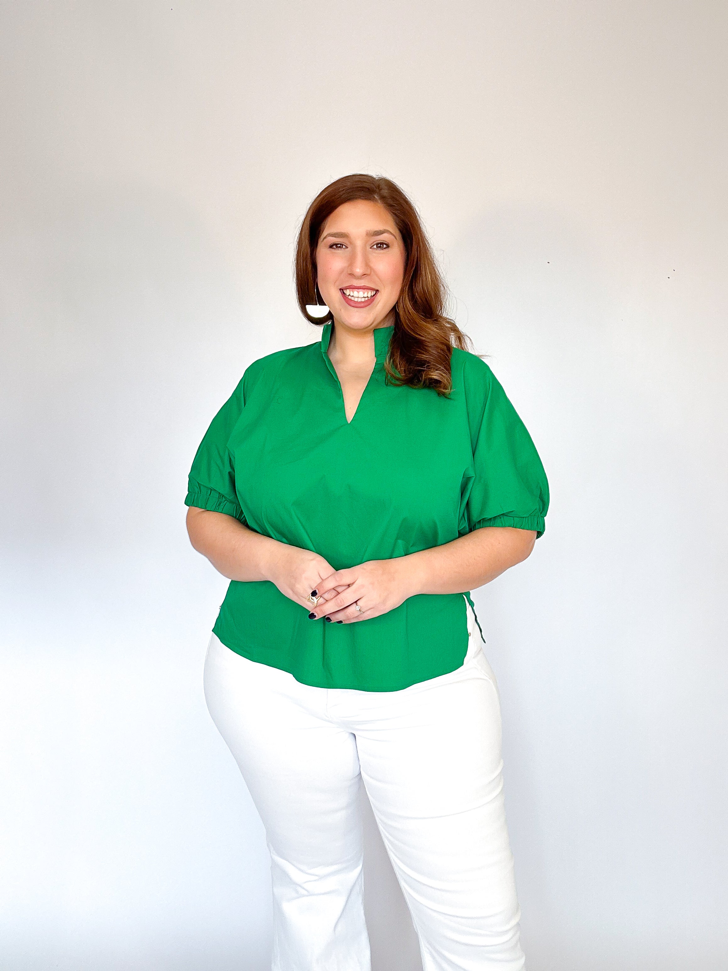 This Green Puff Sleeve Mock Neck Top from Entro combines structured silhouette with refined simplicity. The standing collar and V-neck create a modern neckline, while puff sleeves add dimension without bulk. Crafted from lightweight woven fabric that's non-sheer and unlined, this piece offers breathable comfort and versatile layering potential. A polished essential for contemporary wardrobes.