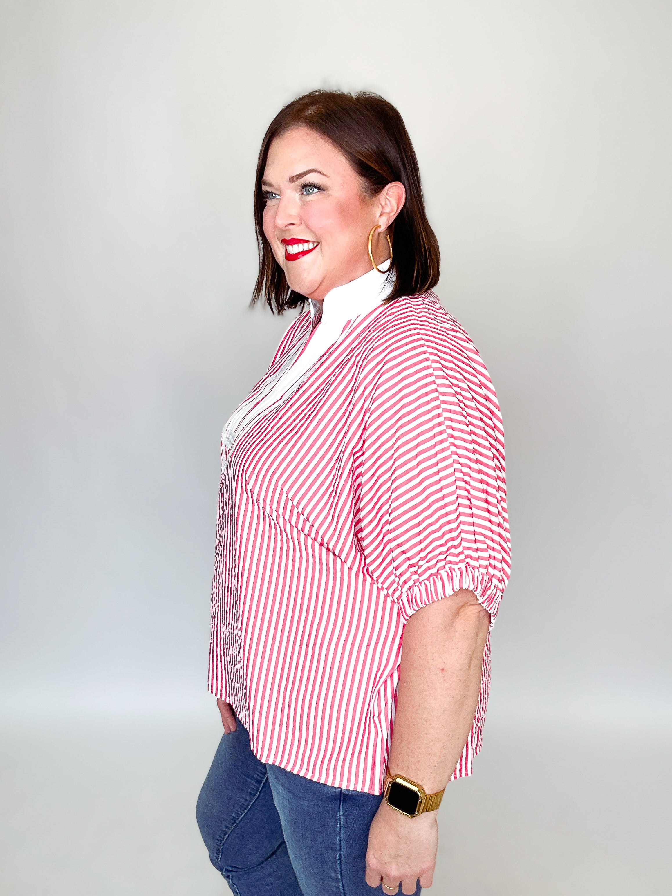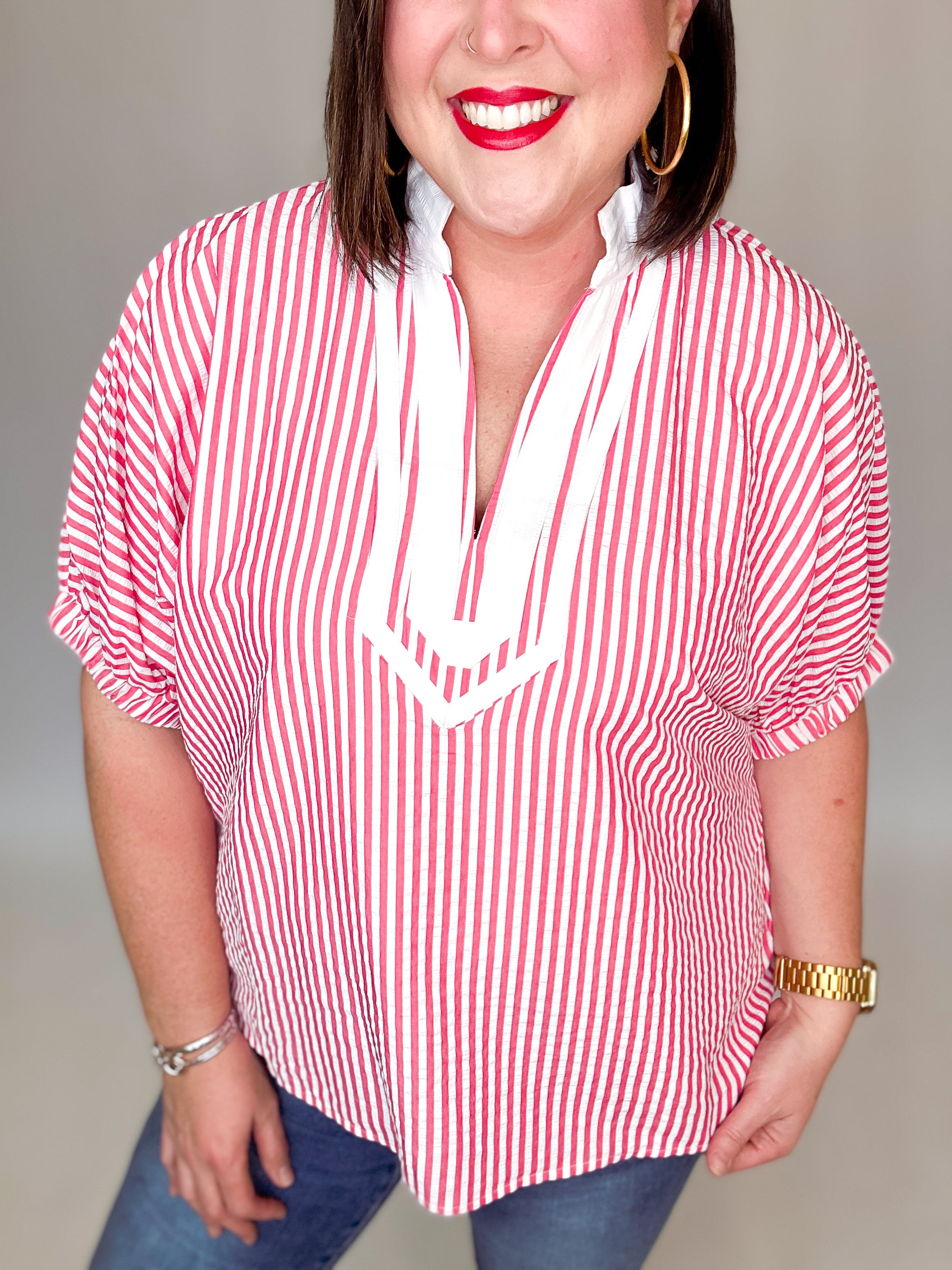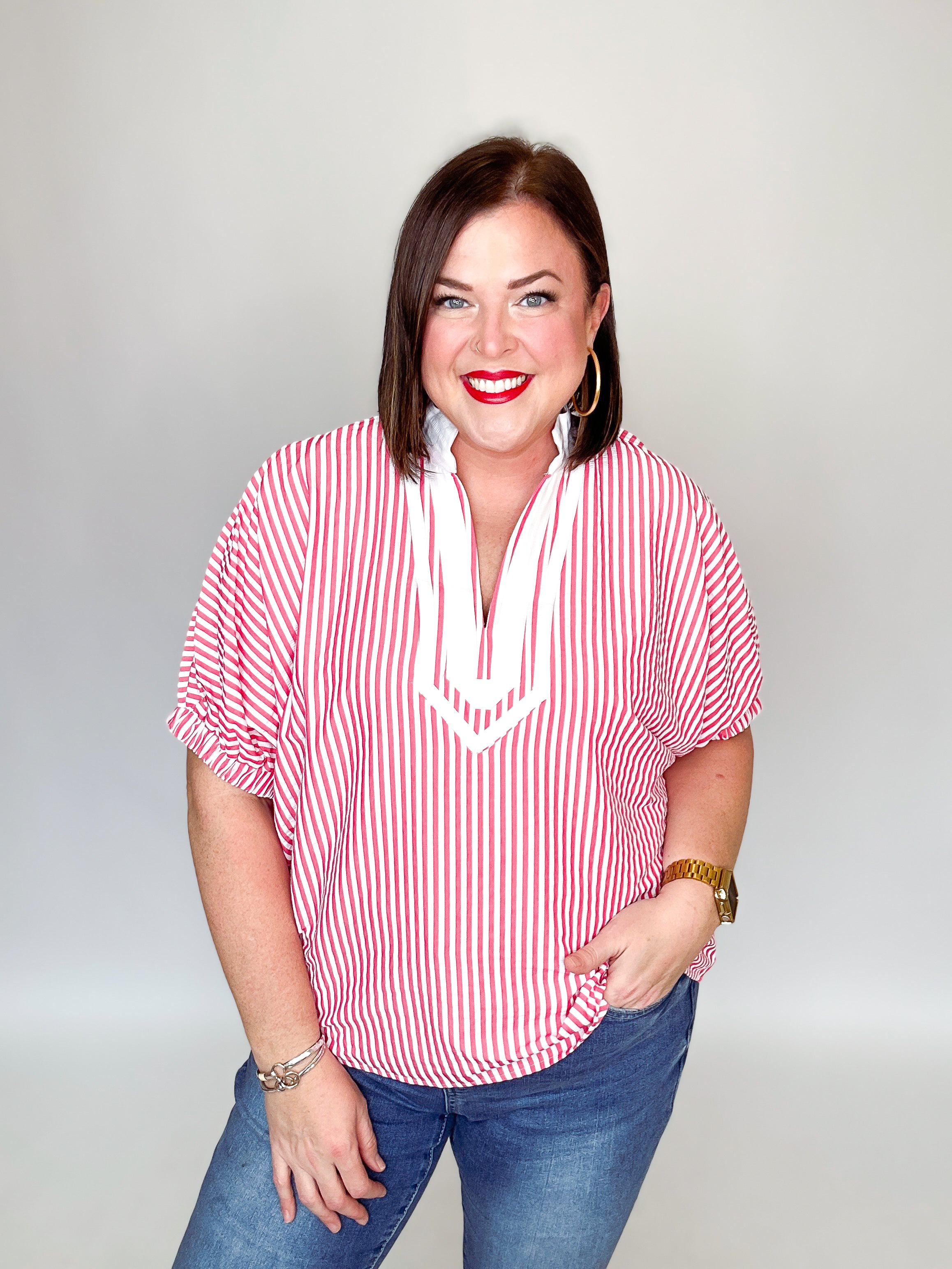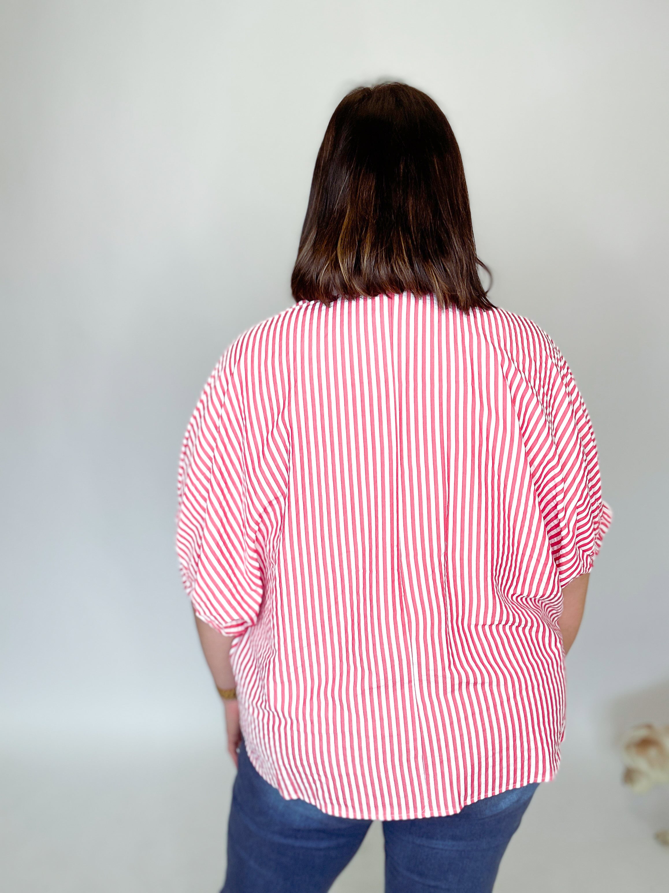 Effortless sophistication meets everyday comfort in this striped dolman top from Entro. The contrast V-neck panel adds refined detail, while the lightweight woven fabric drapes beautifully without clinging. Unlined and non-sheer, it's designed for confident, all-day wear. Perfect layered or worn solo, this piece transitions seamlessly from casual to polished occasions.