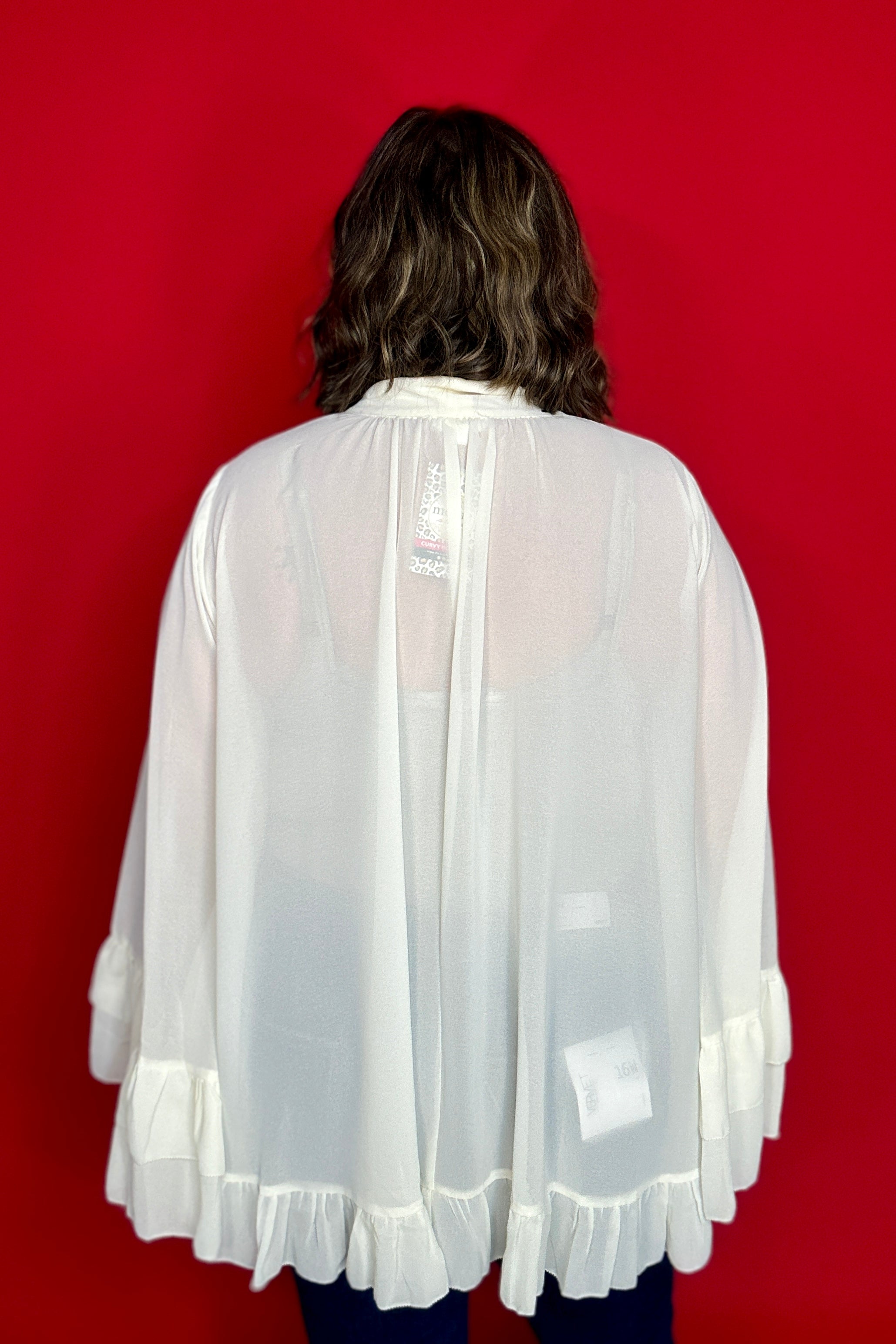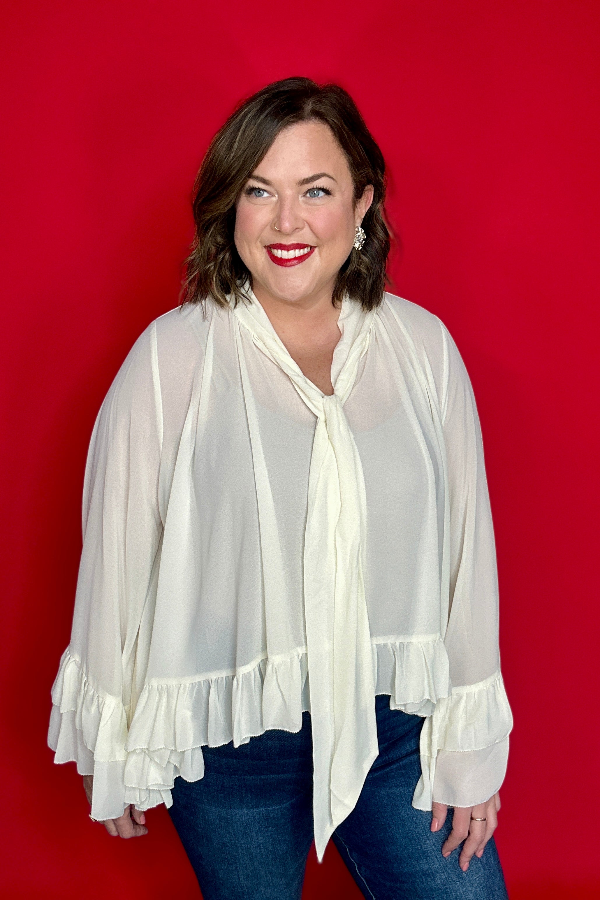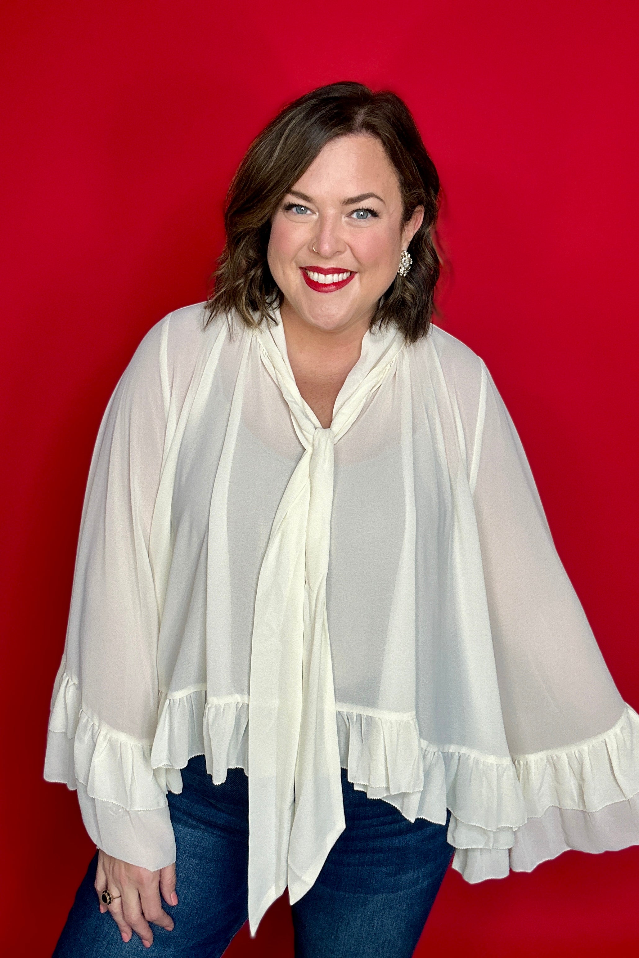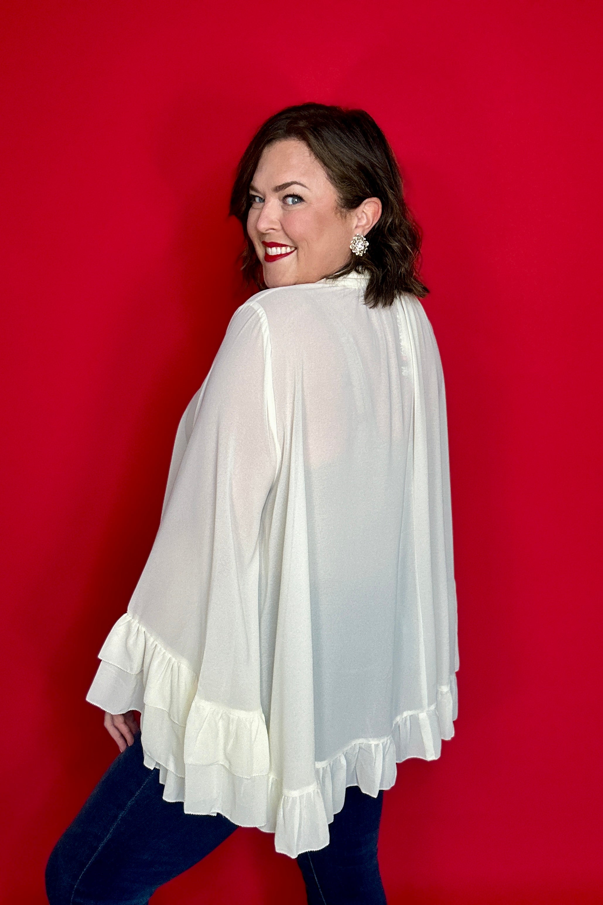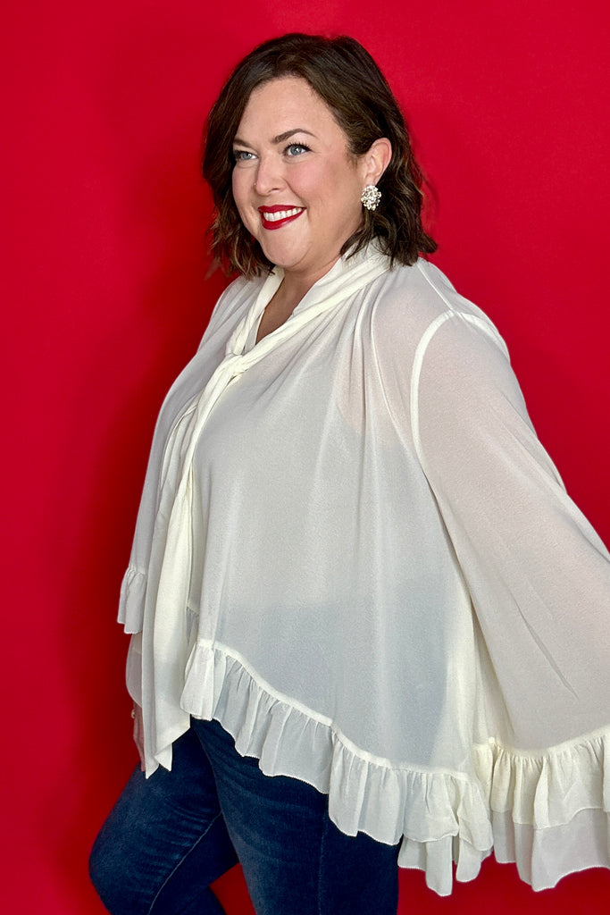 Ivory Chiffon Bell Sleeve Ruffle Detail Top