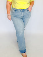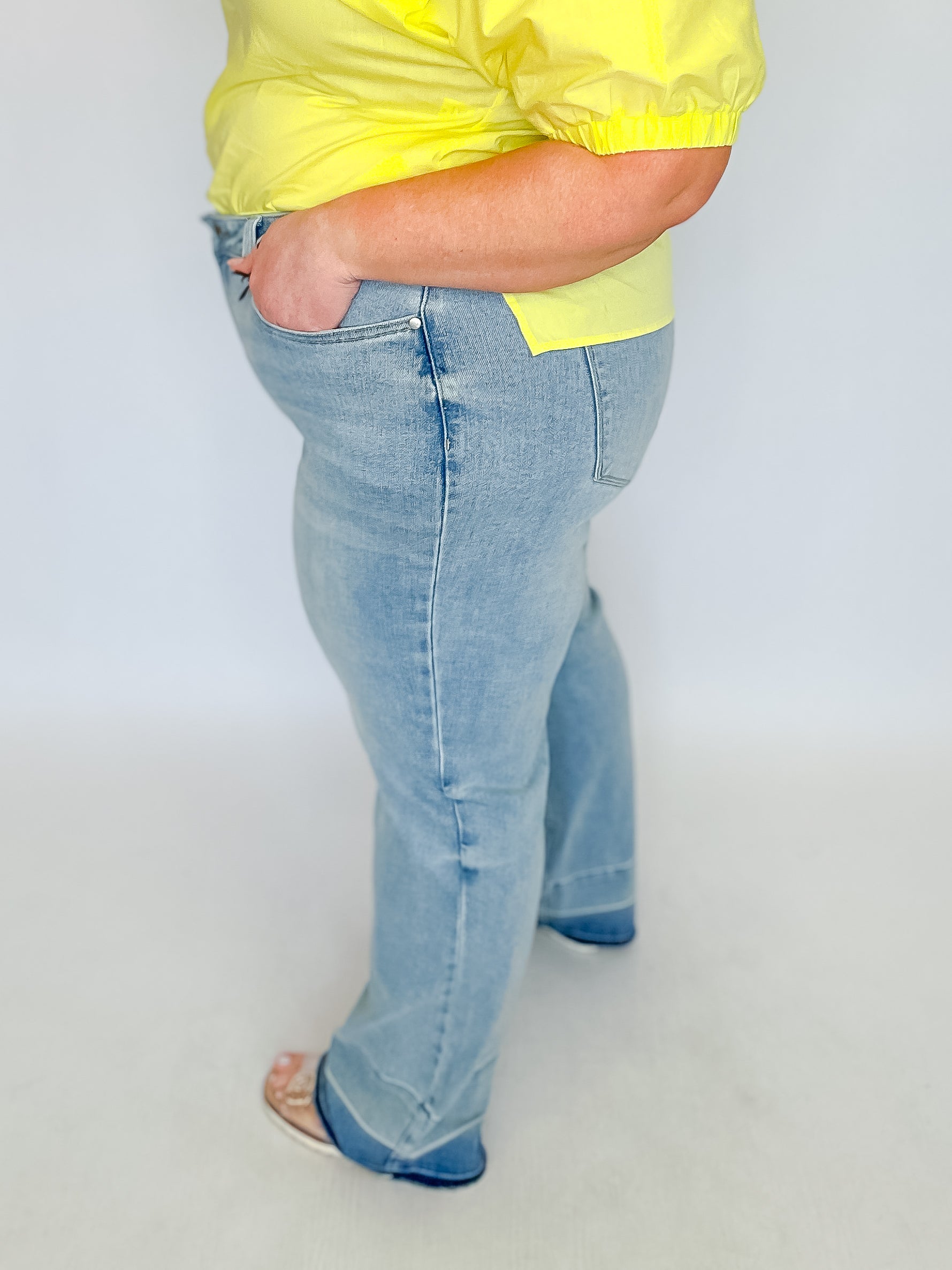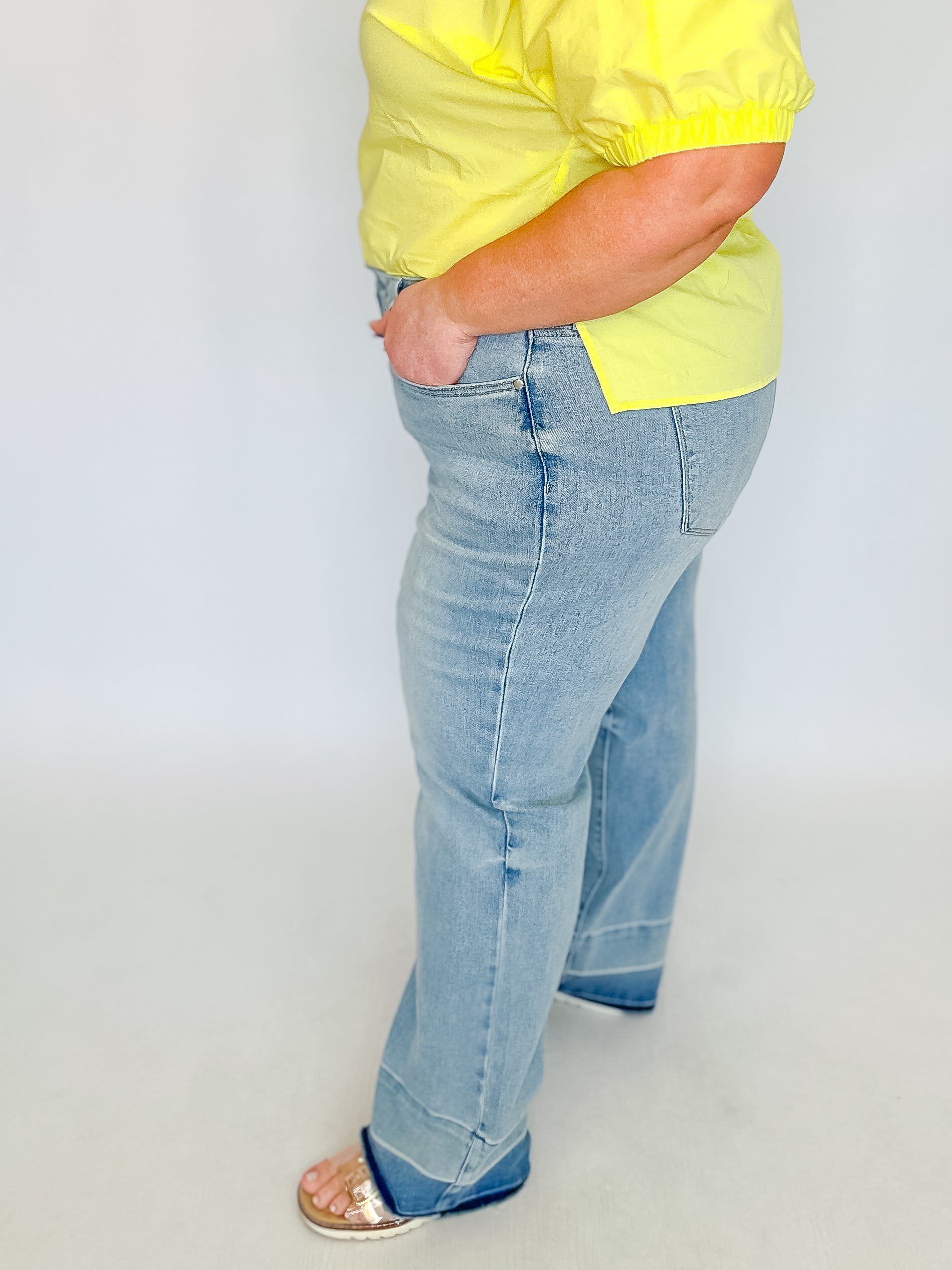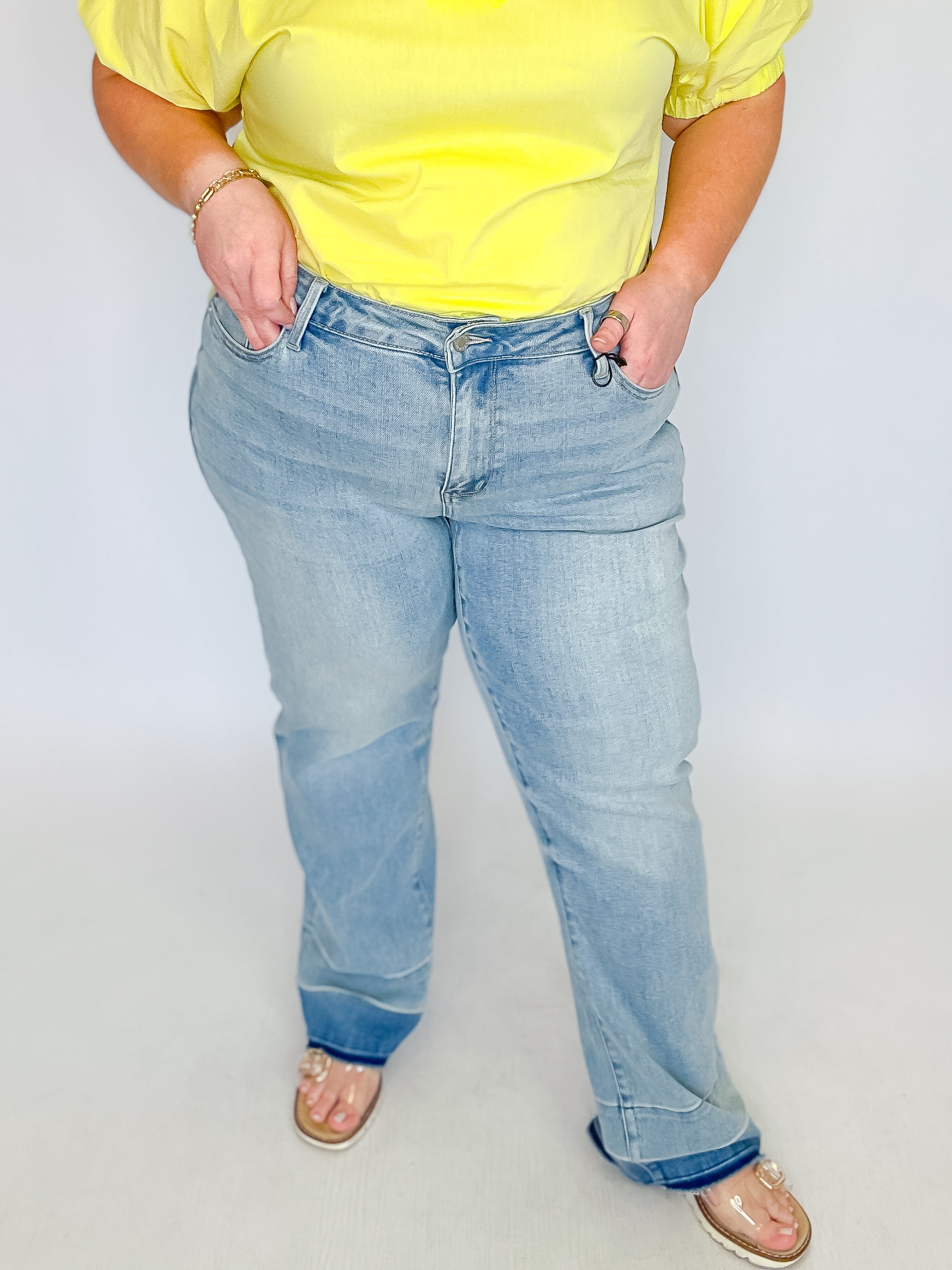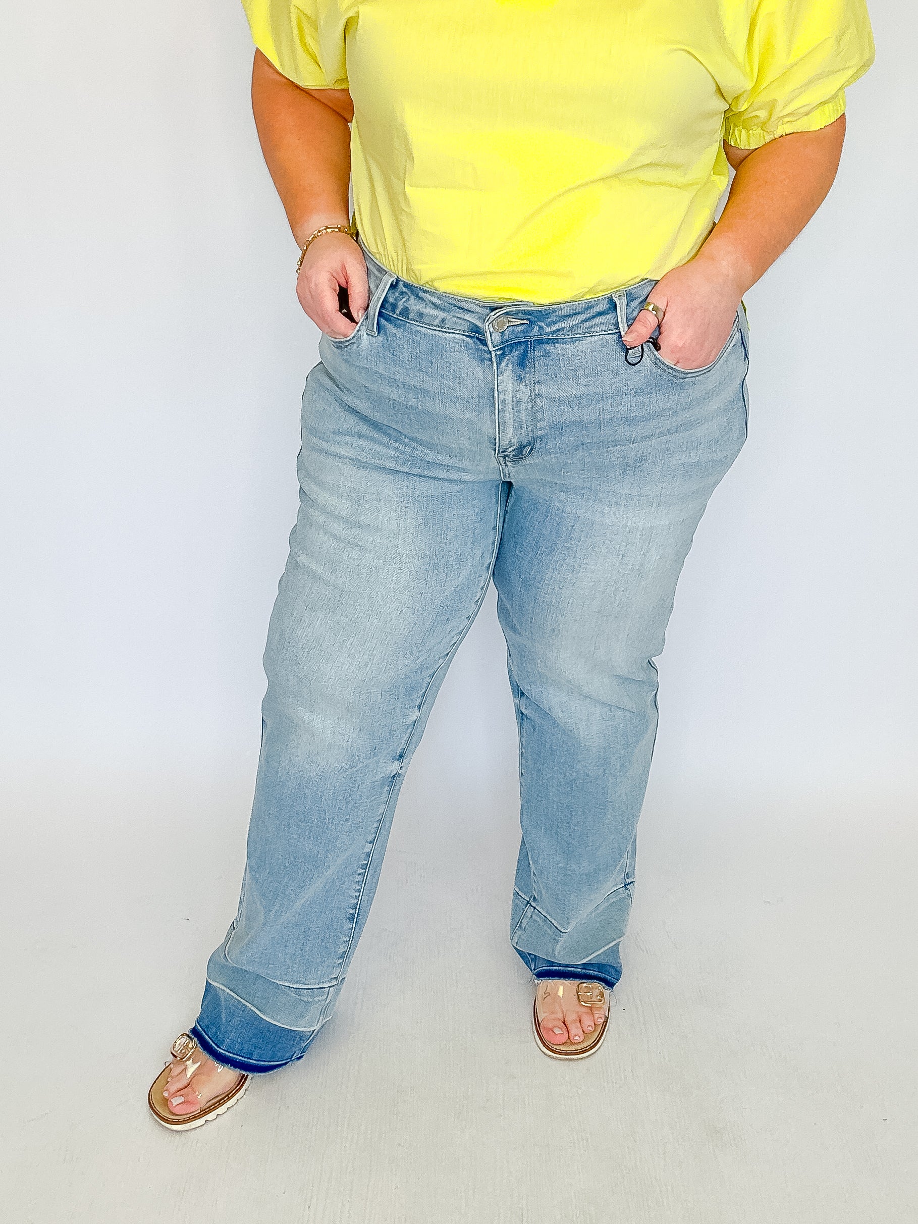 Relaxed with a trend-forward edge, these Mid Rise Raw Release Hem Wide Leg Jeans from Judy Blue are a standout addition to your denim collection. Featuring a comfortable mid-rise waist, they offer an easy, flattering fit for everyday wear. The wide-leg silhouette delivers effortless movement, while the raw release hem adds a cool, undone finish that elevates the look. Made with Judy Blue’s signature soft, stretchy denim, these jeans pair perfectly with fitted tops, cropped knits, or casual tees for an effortlessly styled outfit.