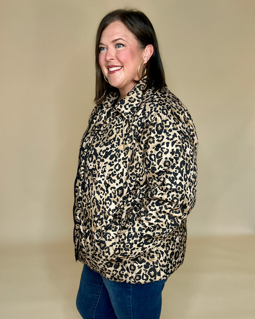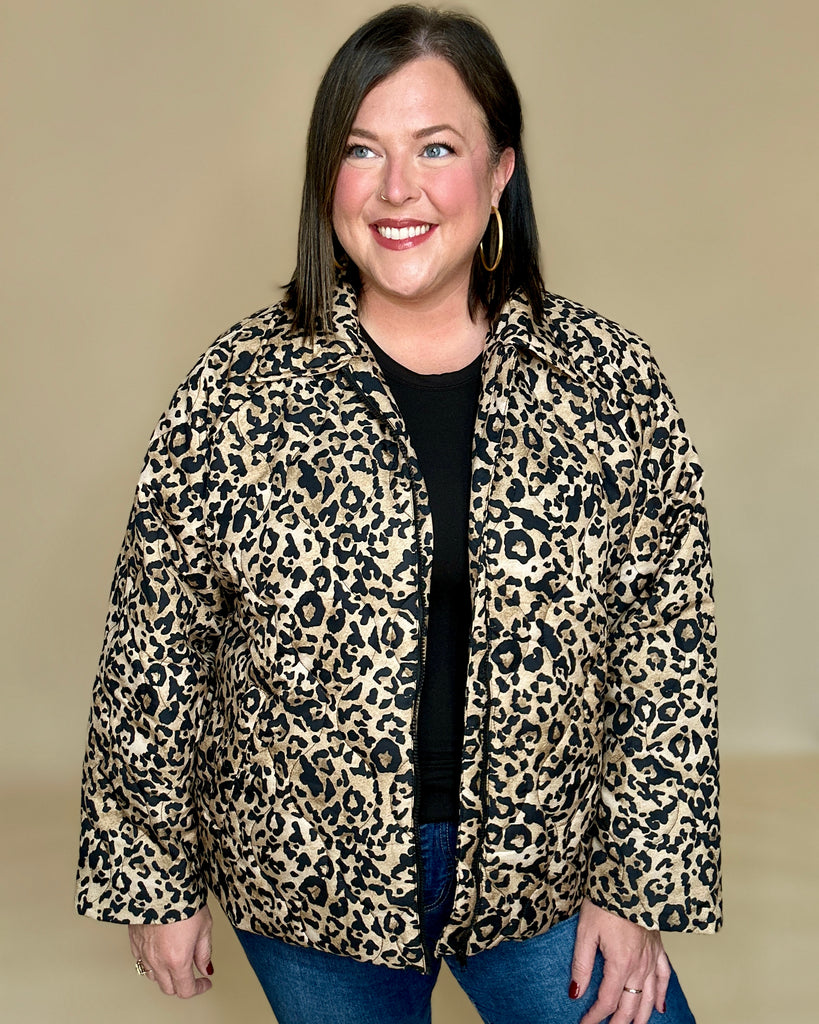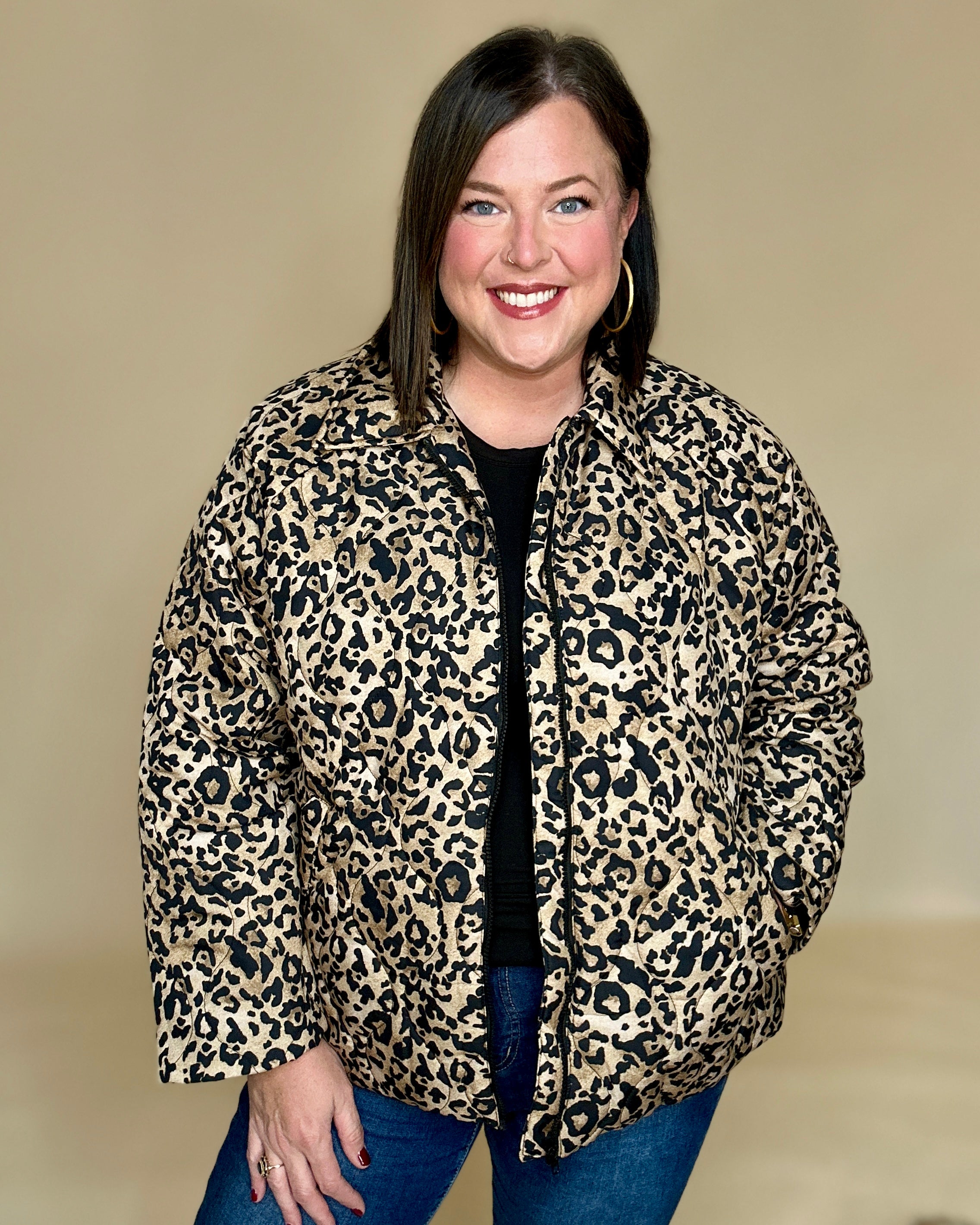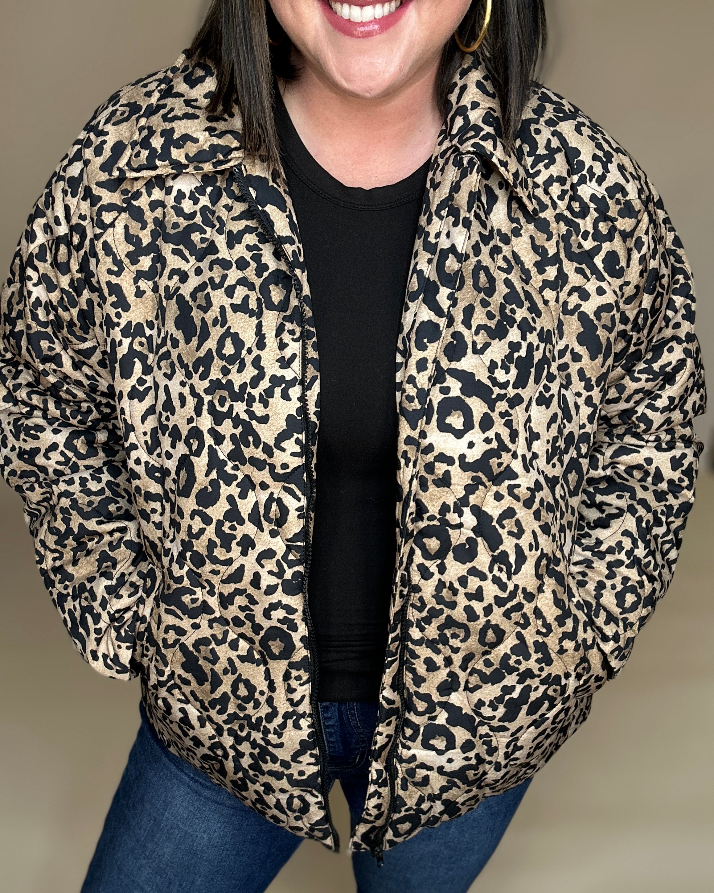This leopard print jacket is your new go-to for a cozy yet bold look. With its zip-up front and relaxed fit, it wraps you in soft padding while keeping a cool, structured shape. Side pockets add a handy touch, and the striking allover print turns heads effortlessly. Perfect for adding a playful edge to any outfit, this jacket from Sew In Love keeps comfort and style roaring all day long.