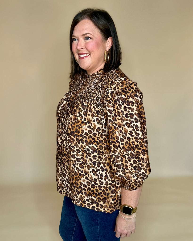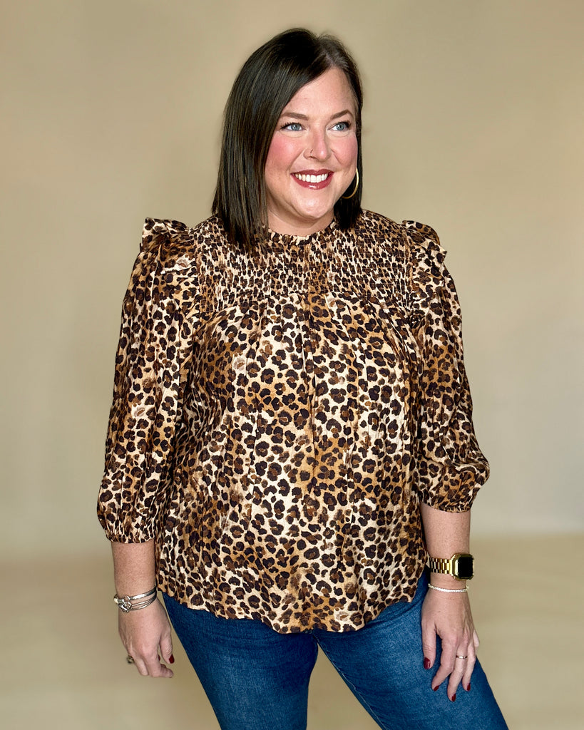 Leopard Smocked Babydoll Top