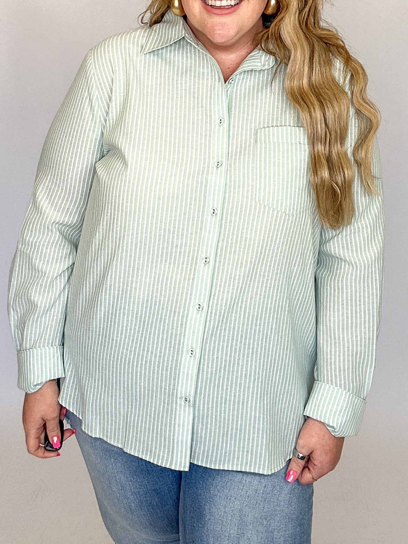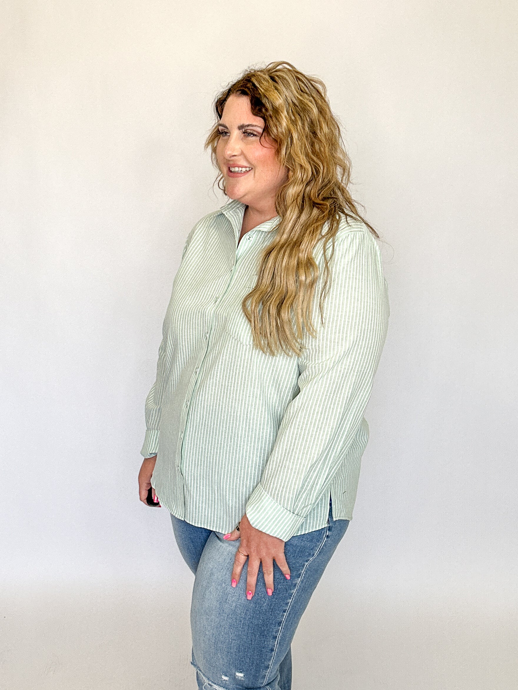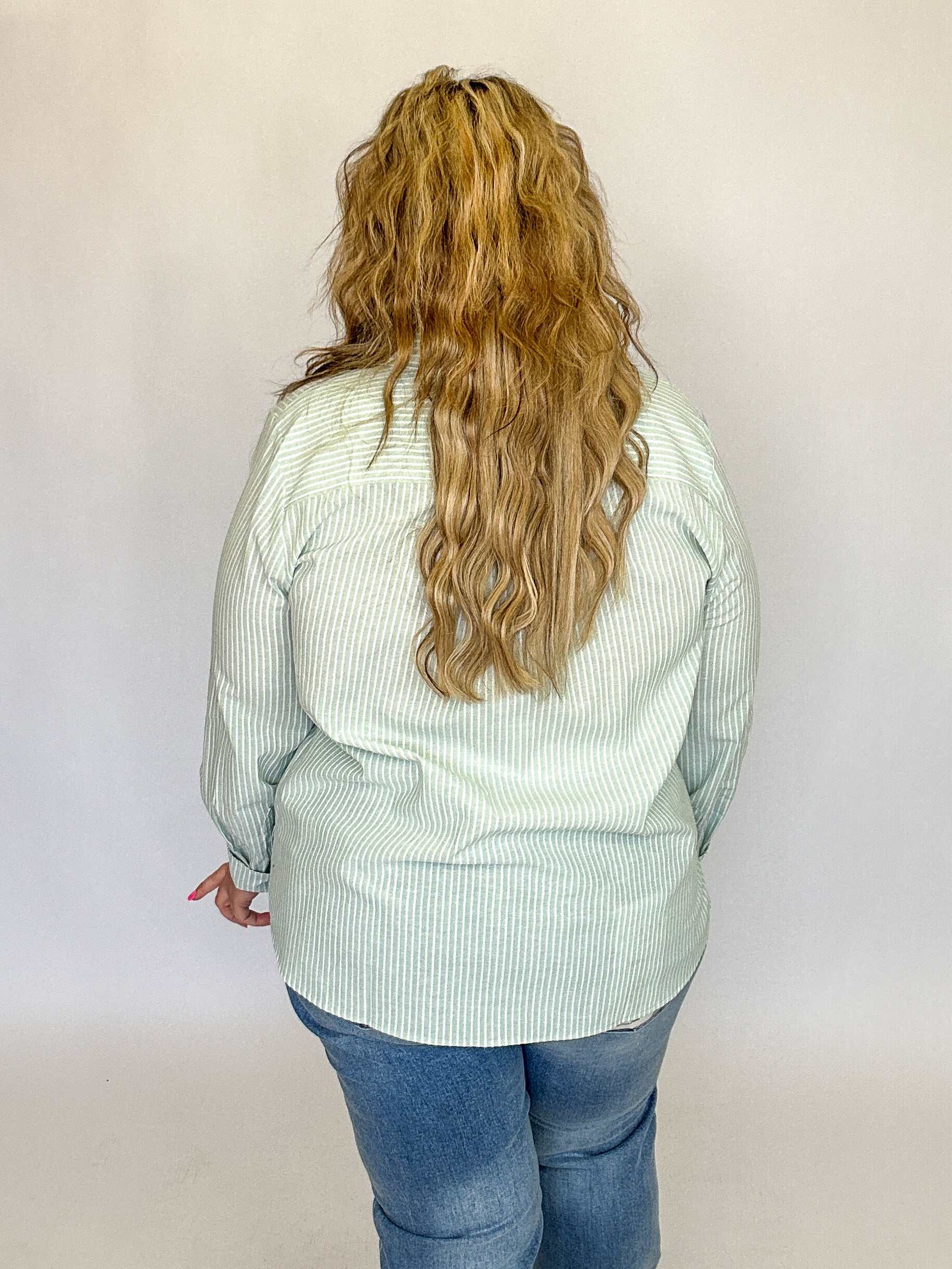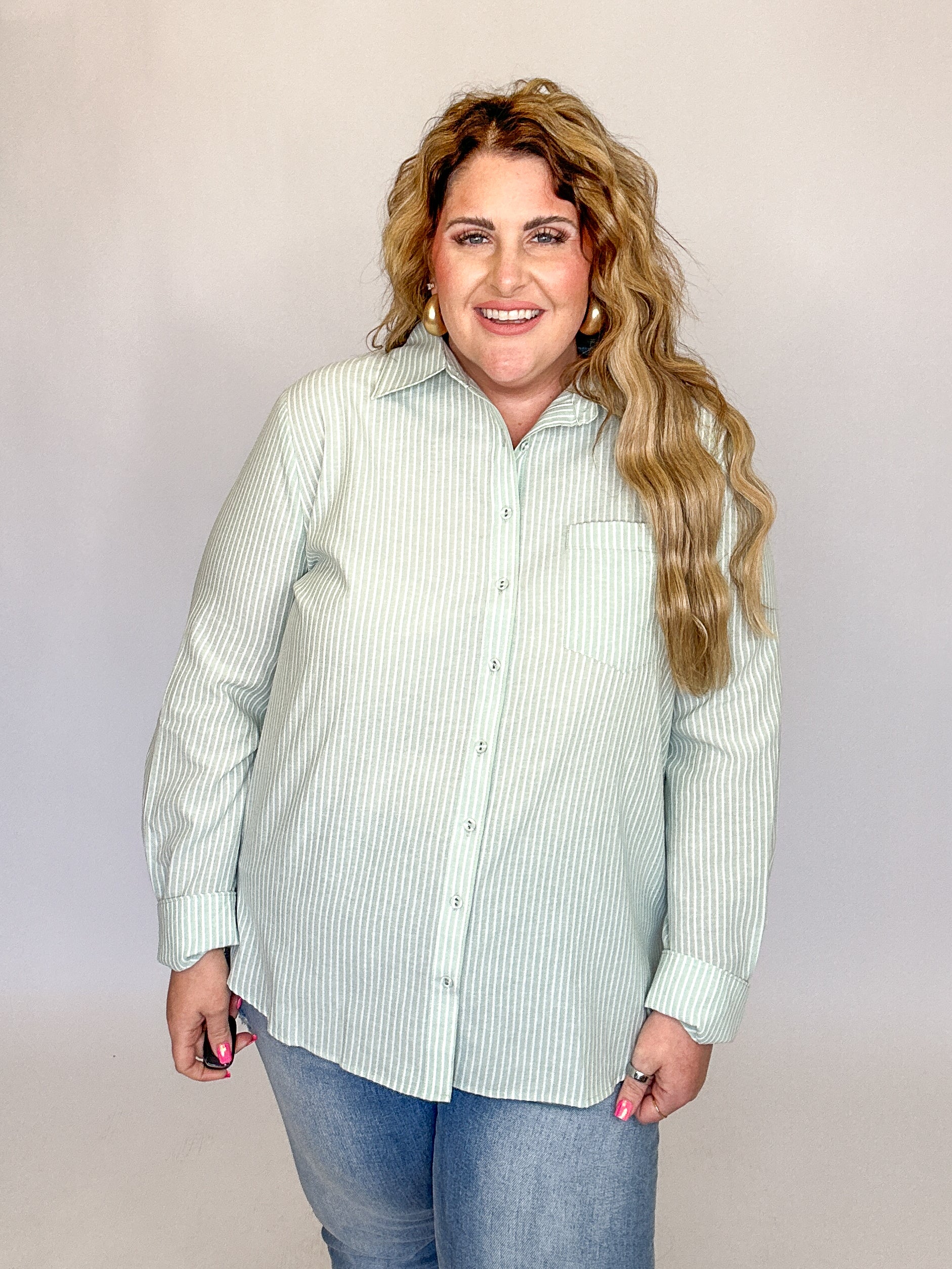 Mint Green Stripe Button Down Collared Top