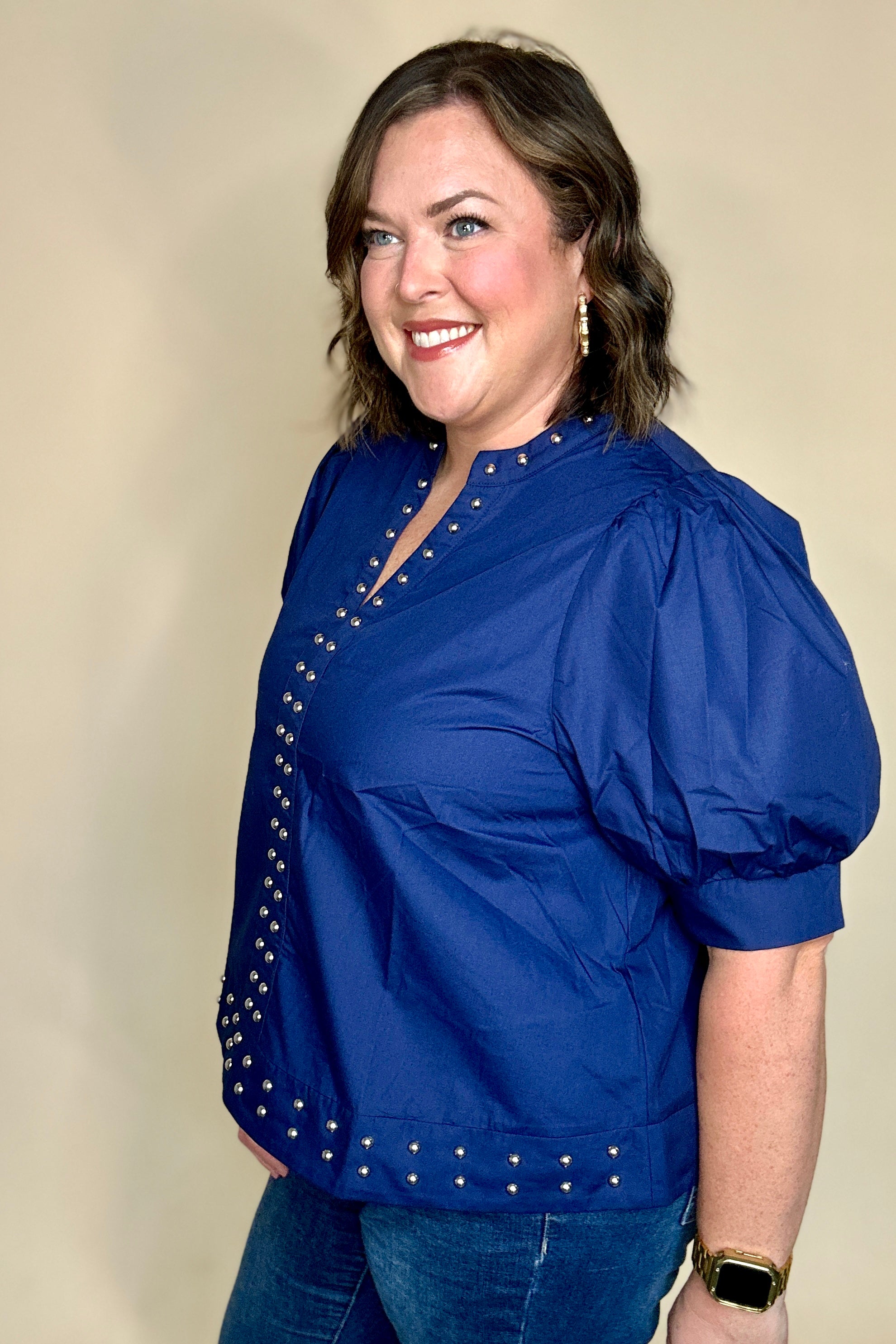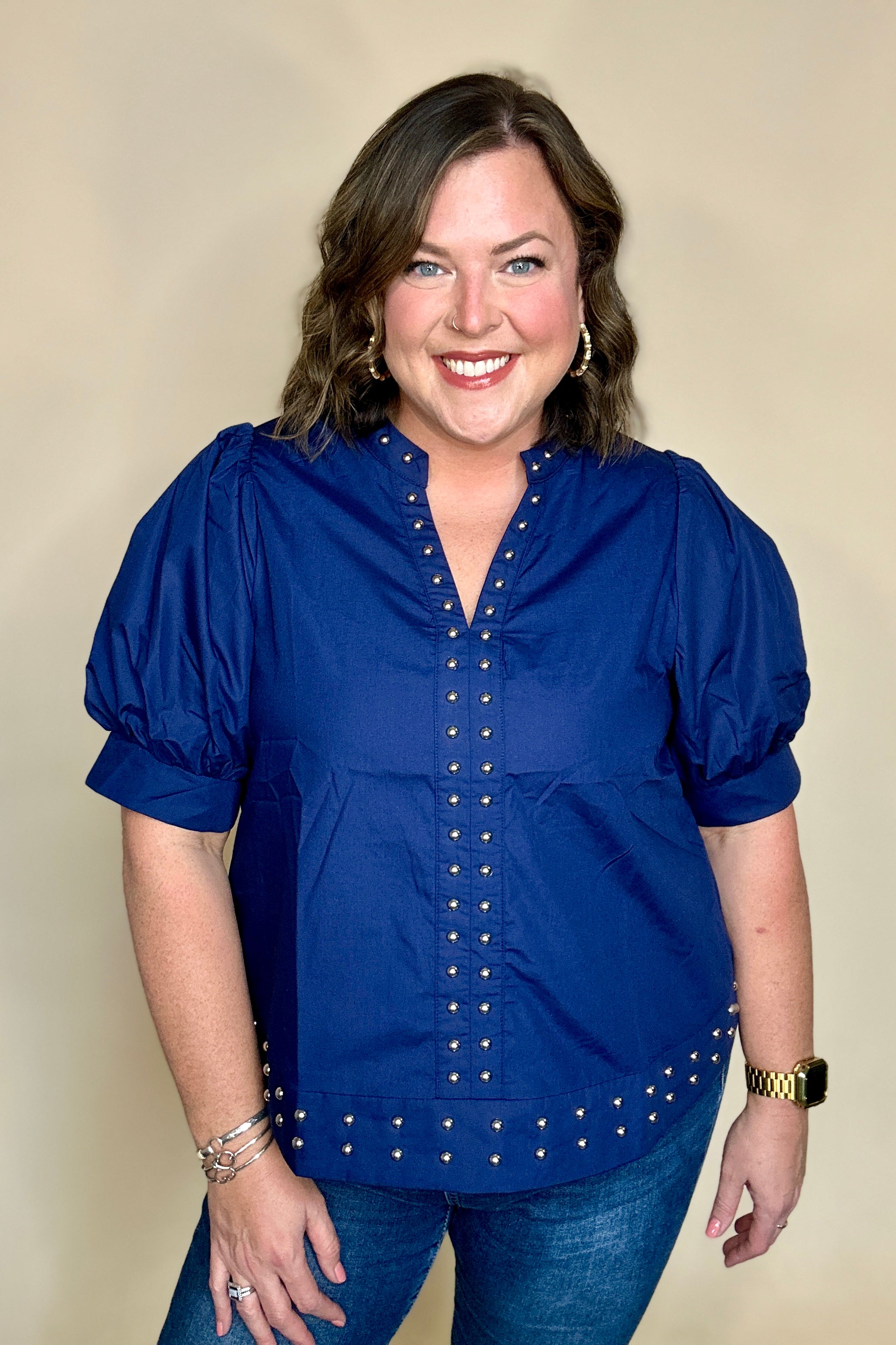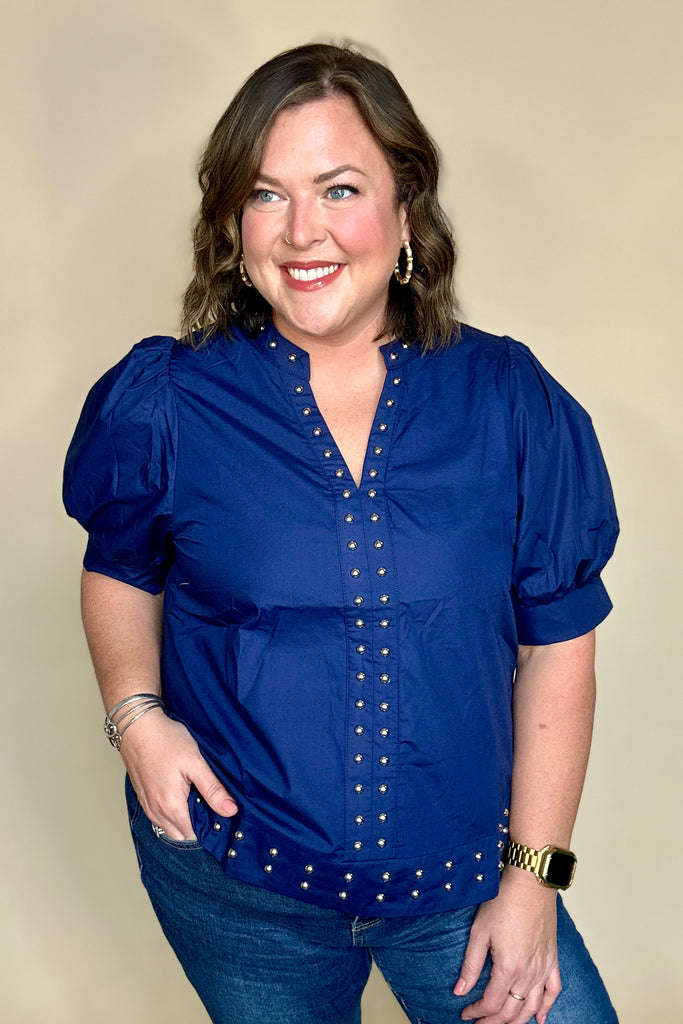 Refresh your wardrobe with this elegant Navy Stud Accent Top from Entro, designed with short puff sleeves and a solid cuff band for a flattering fit. Its lightweight woven fabric ensures you stay comfortable and confident, thanks to its non-sheer, breathable feel. The delicate stud details add a touch of sophistication, helping you achieve a polished look with ease. Unlined and light, this top provides both comfort and style you can rely on every day.