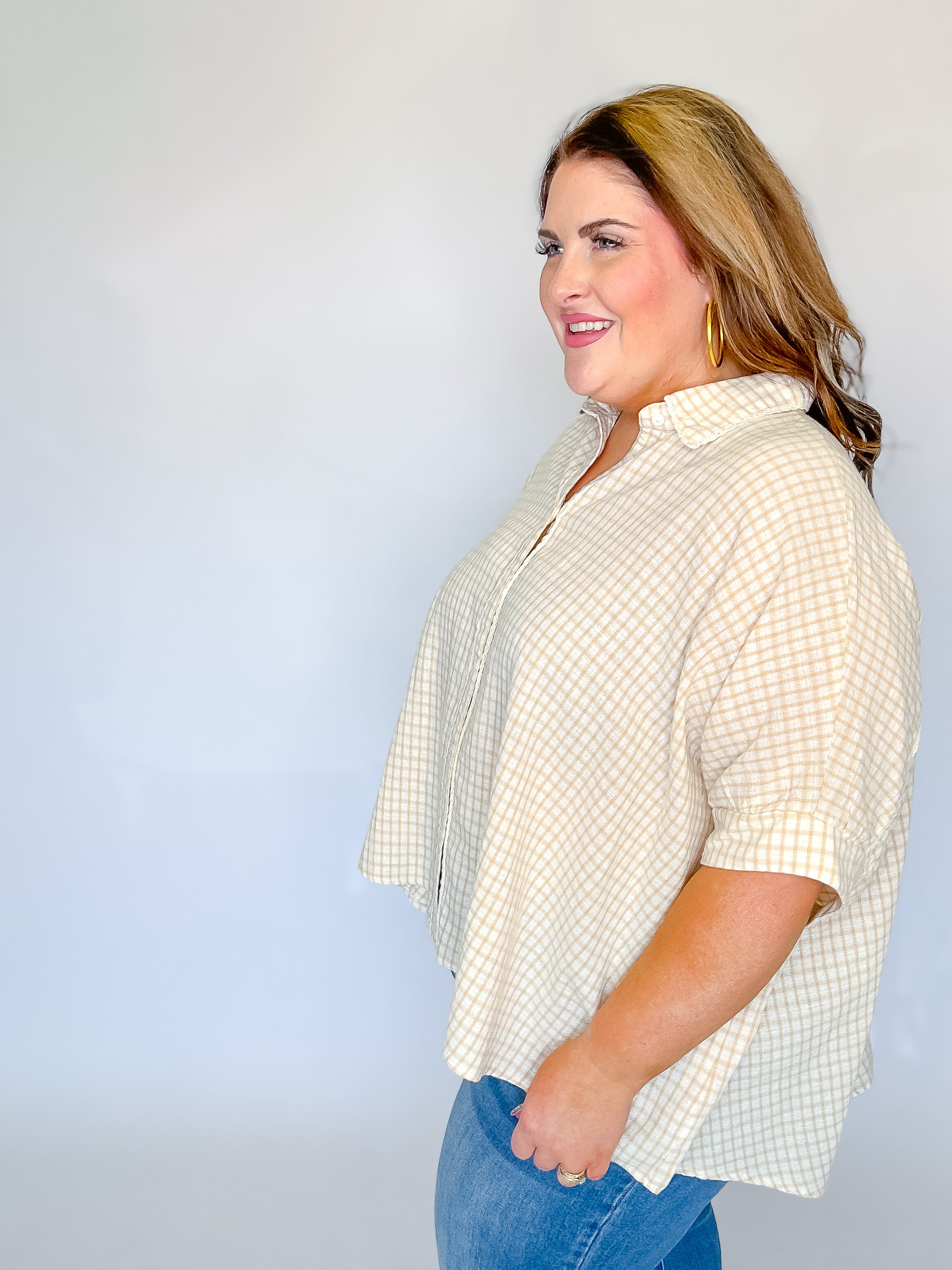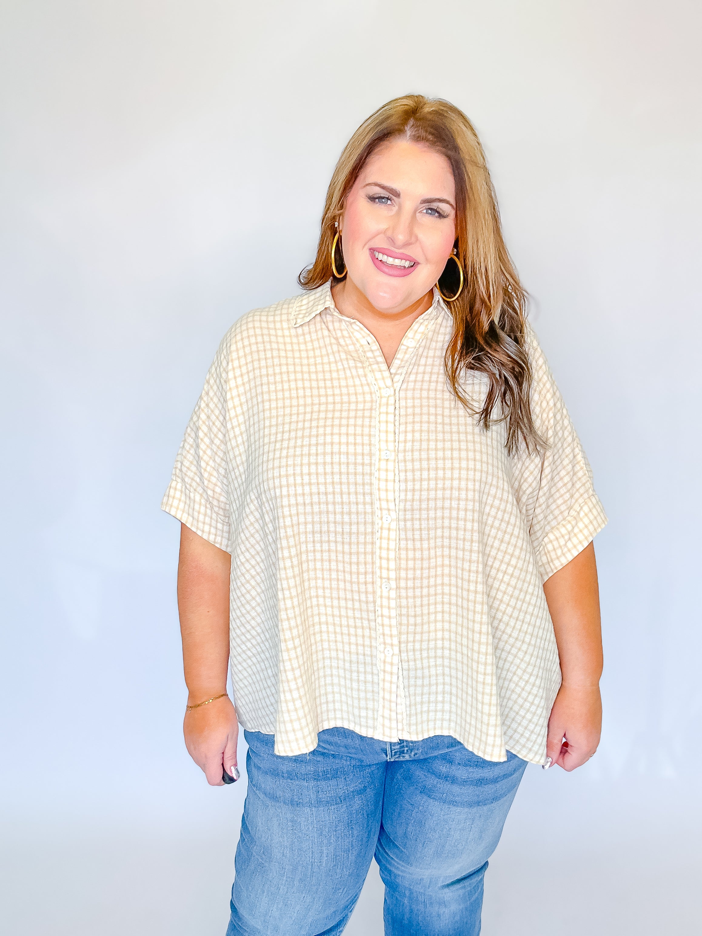Oatmeal Checkered Button Down Top