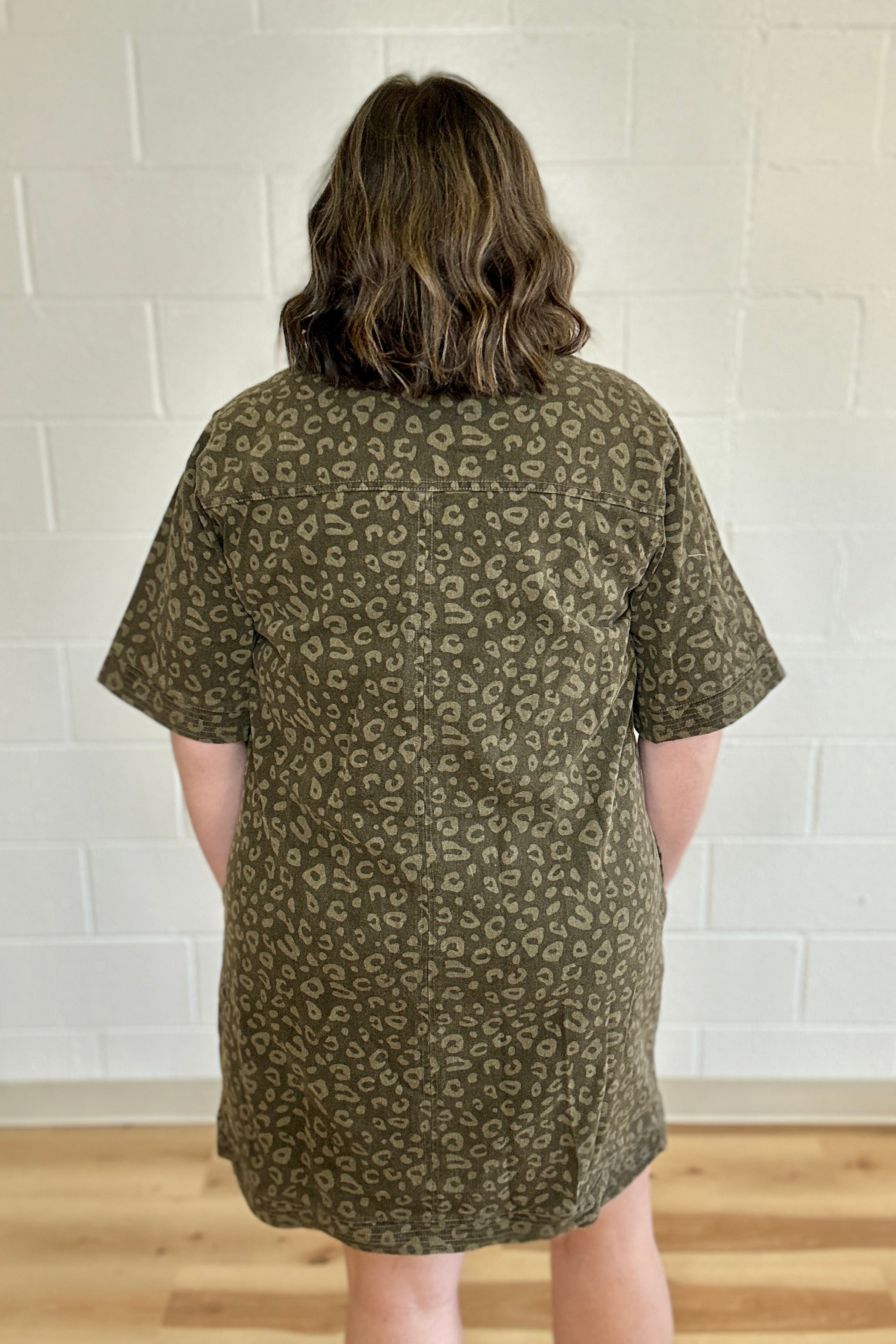 Effortlessly chic, this She+Sky mini dress combines relaxed sophistication with practical design. The washed animal print adds visual interest while the structured woven fabric maintains its shape throughout the day. Short sleeves and a classic collar create a polished silhouette, while decorative stitching details elevate the overall aesthetic. Functional pockets provide everyday convenience. Perfect for transitional seasons, this versatile piece pairs seamlessly with sneakers for casual outings or heels for elevated occasions.