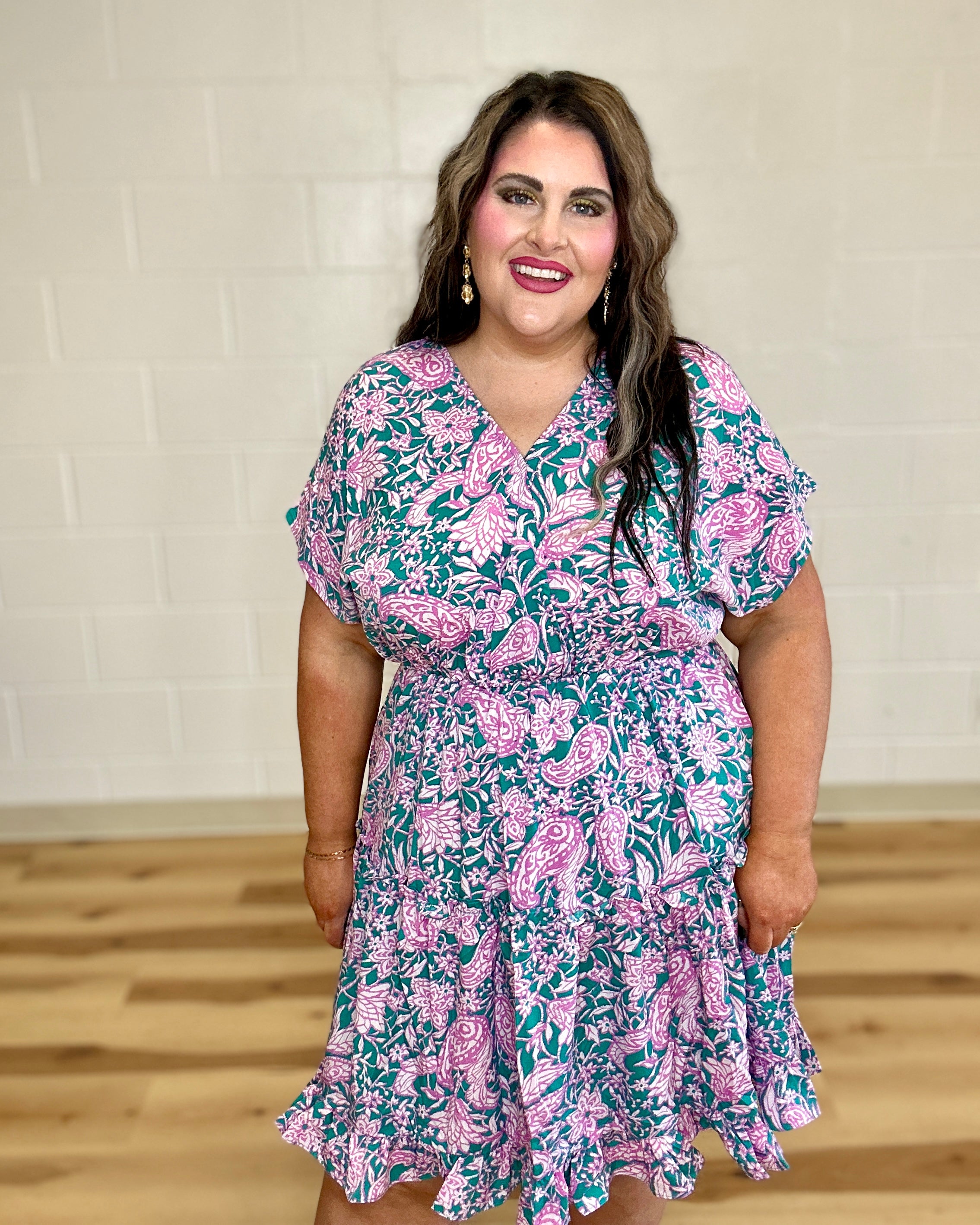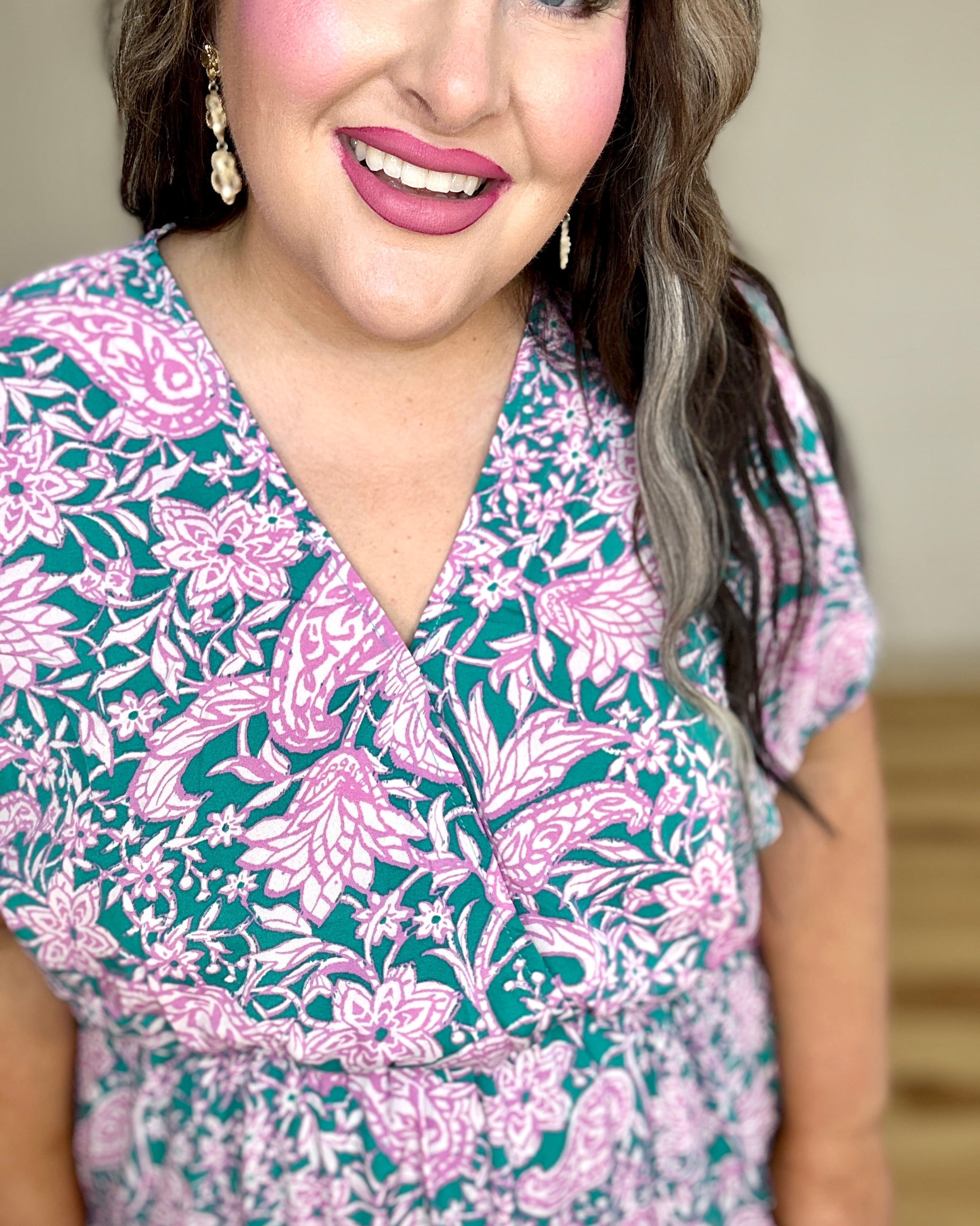 Effortless style meets comfort in this charming tiered dress from She+Sky. The flattering V-neck and elastic waist create an easy, breezy silhouette that moves with you, while the pink and jade floral color combo brings a fresh, modern vibe to your everyday rotation. Perfect for casual outings or dressed up for something special—this piece is your new go-to for looking put-together without the fuss.