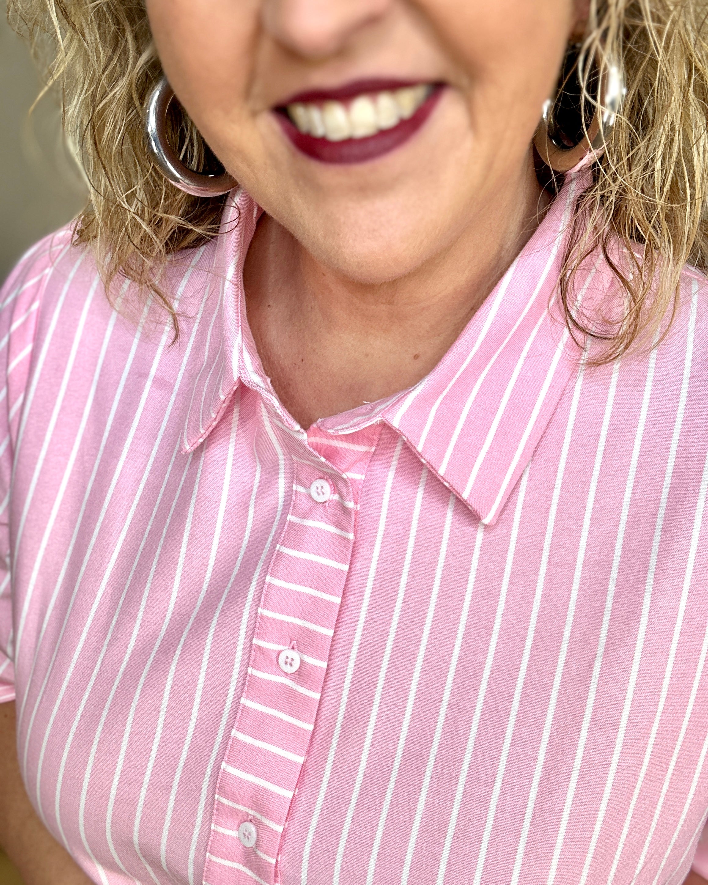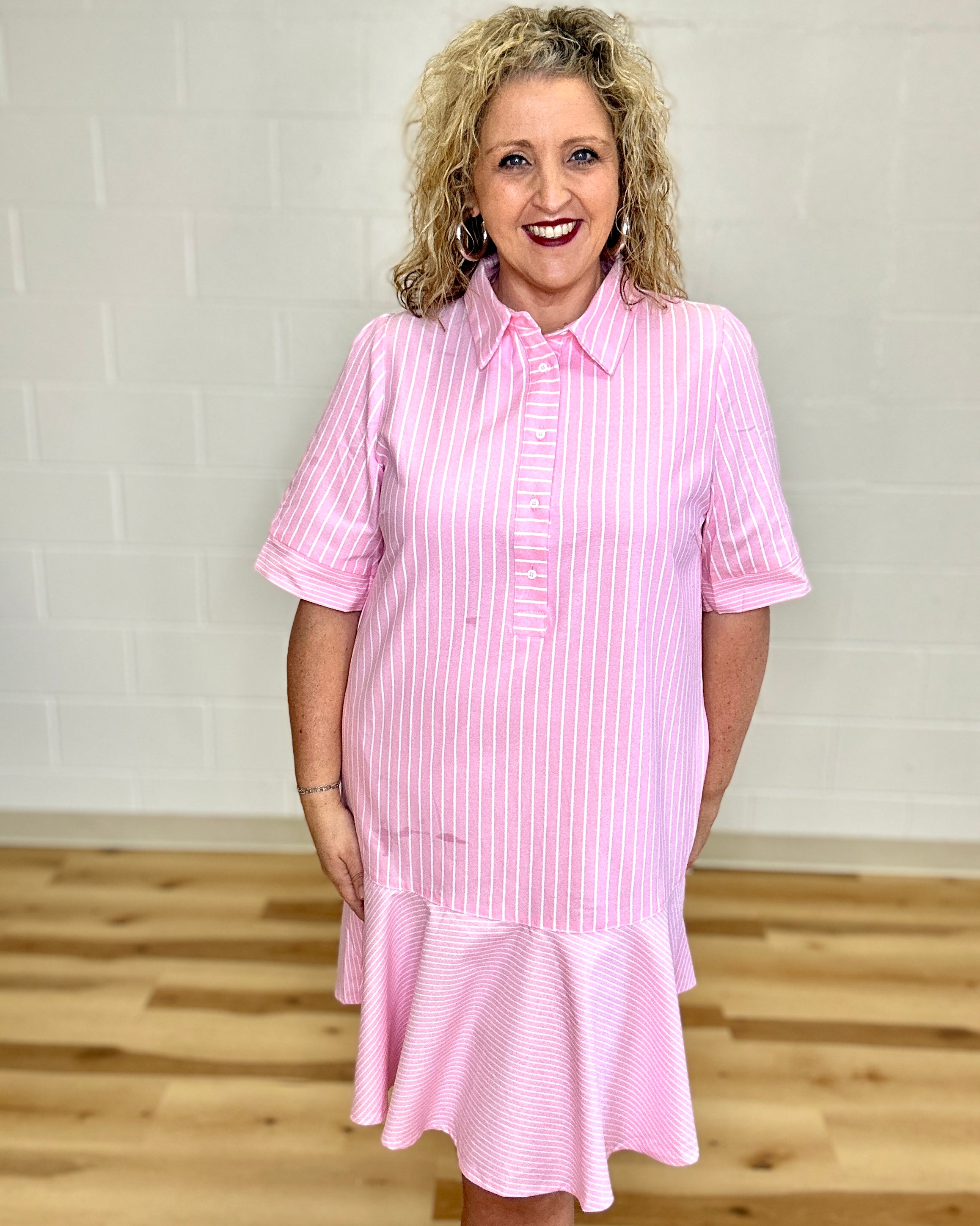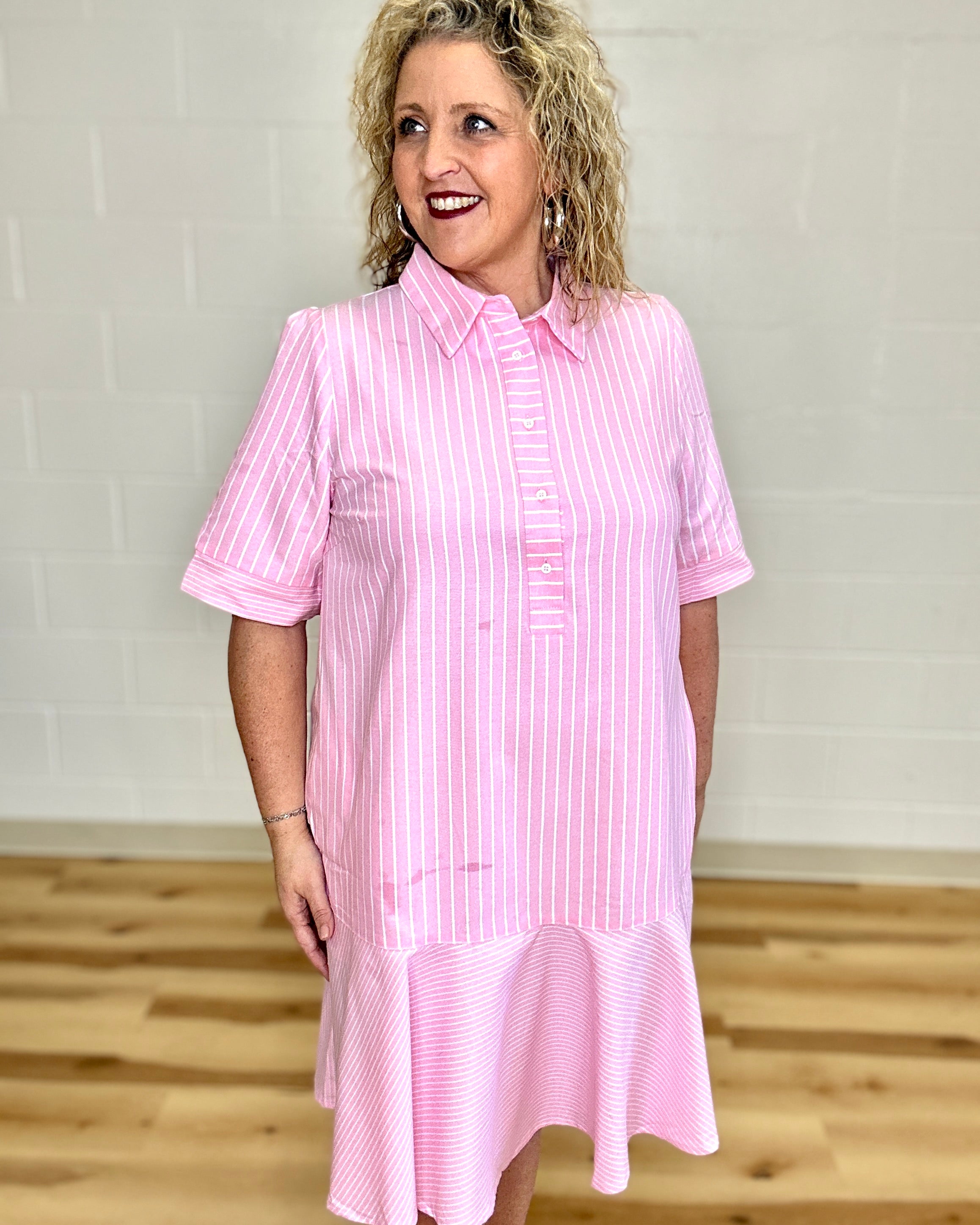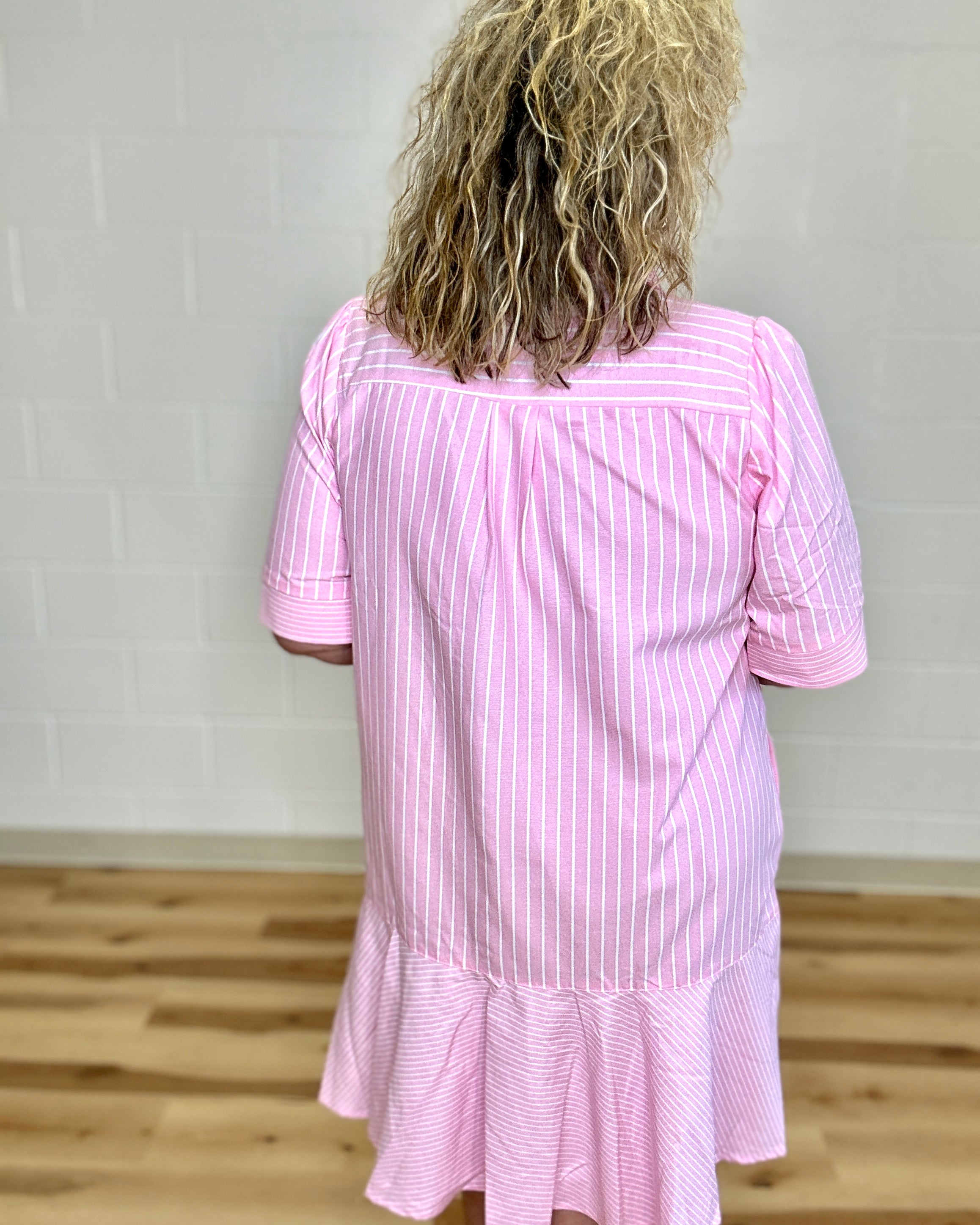 Pink Striped Half Button Front Dress