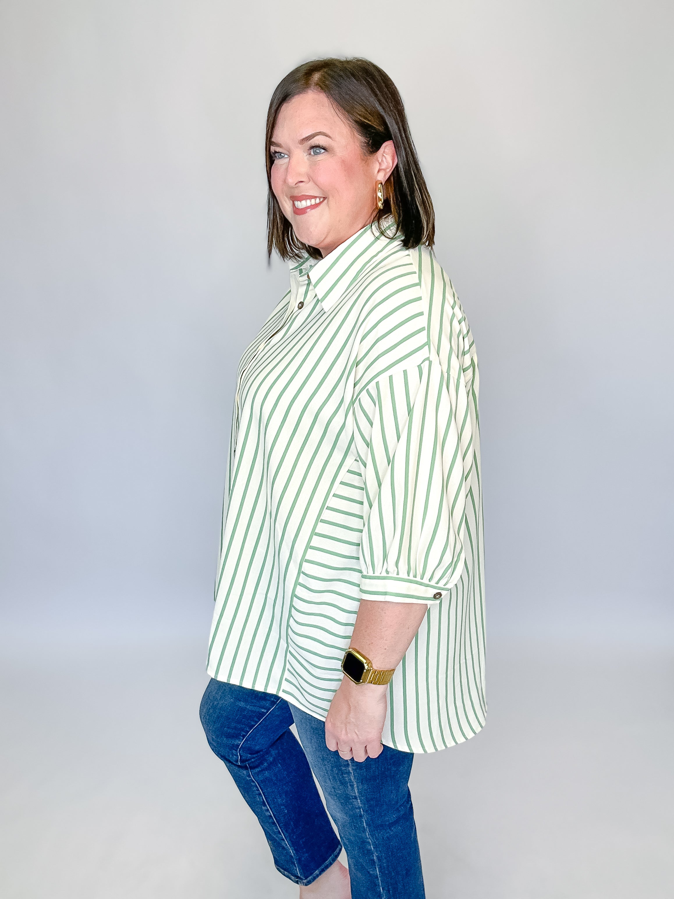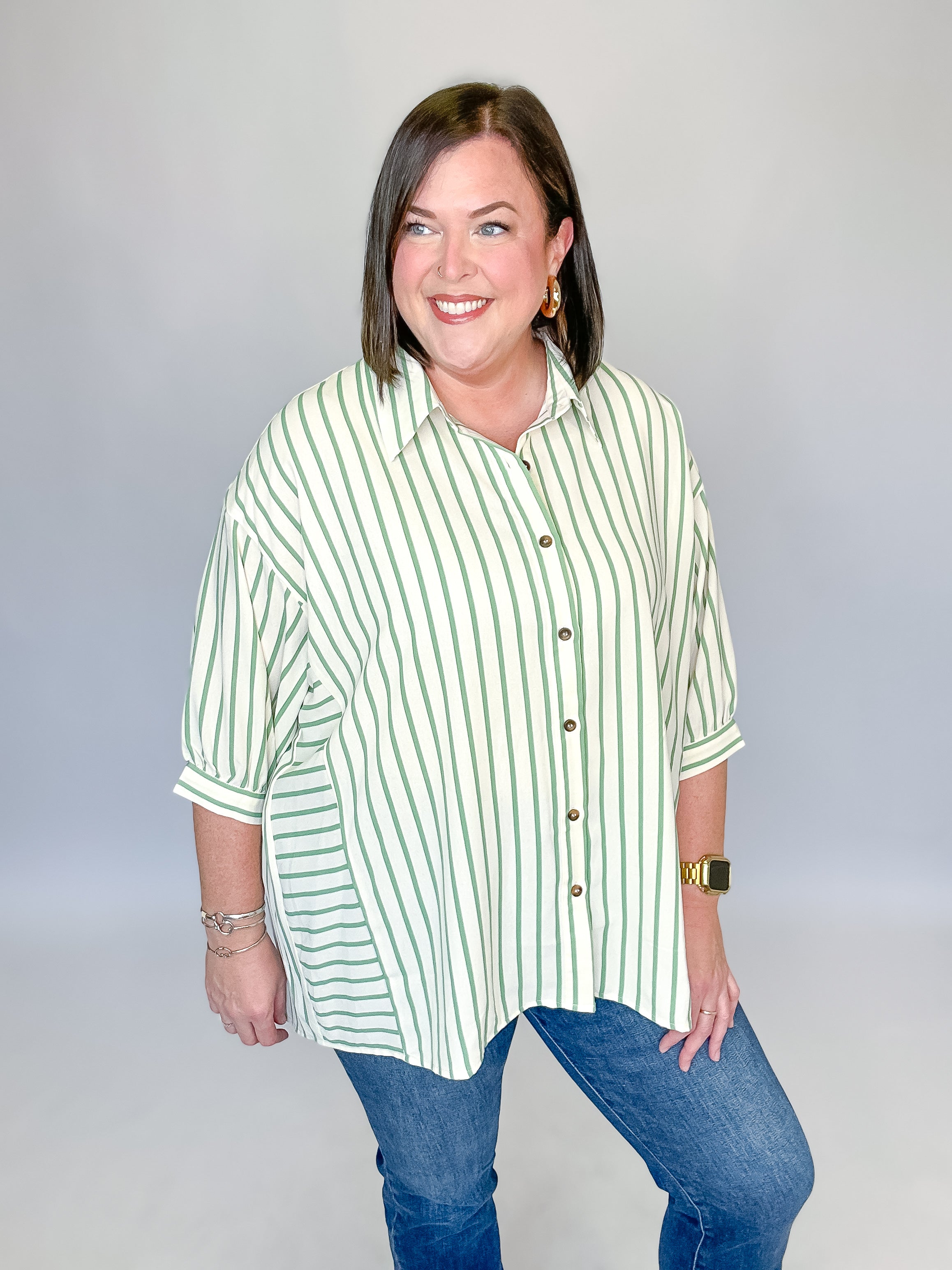 Sage & Cream Stripe Tunic Top