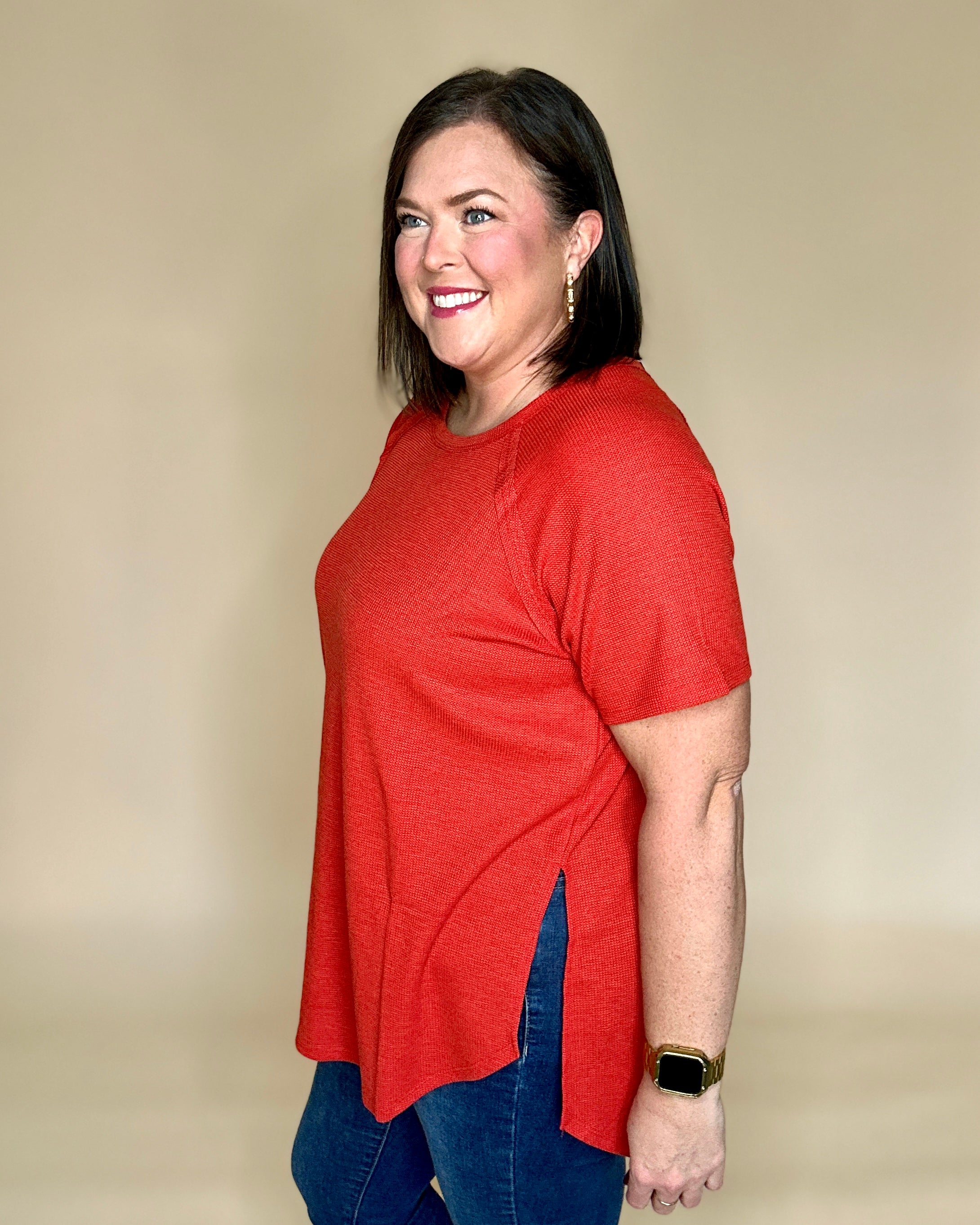 This Solid Waffle Knit Hi-Lo Top from Zenana is a playful twist on a cozy classic. Featuring a soft waffle texture, a round hem, and cute side slits, it adds effortless style and comfort to any baby’s outfit. Perfect for layering or wearing on its own, this short sleeve top keeps your little one comfy while looking adorably cool.