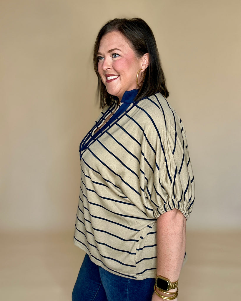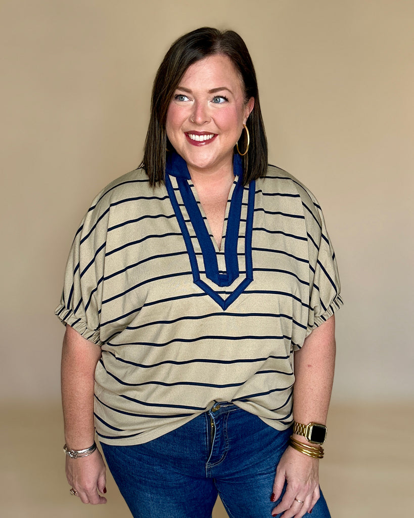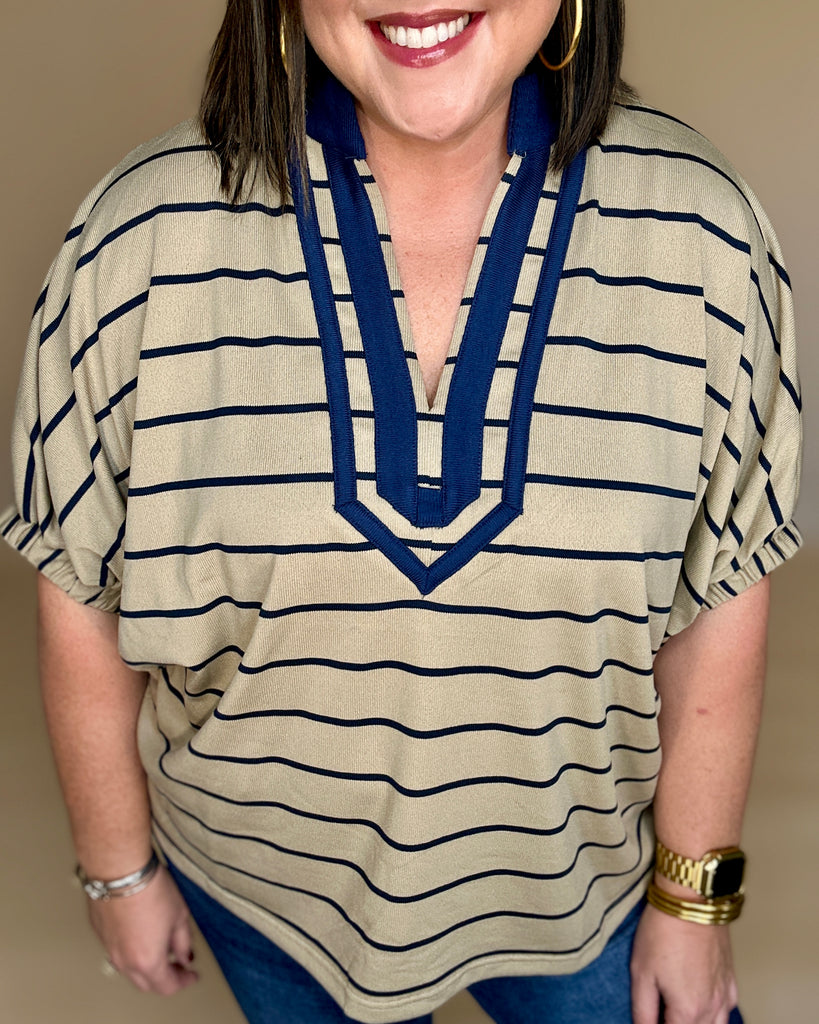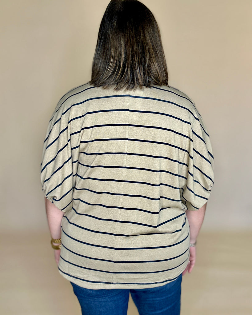 This lightweight, striped short dolman sleeve top by Entro combines comfort and style effortlessly. Featuring a contrast trim split V-neck and elasticated sleeve openings, it offers a flattering fit without compromising ease of movement. Made from non-sheer knit fabric and unlined for breathable wear, it’s perfect for layering or wearing on its own during warmer days. Elevate your casual wardrobe with this versatile piece that balances relaxed fit and chic detailing.