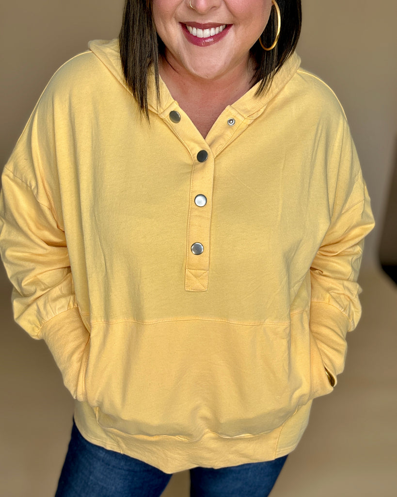 This acid-washed French terry hoodie from Oddi brings cozy vibes with a twist. Featuring snap buttons for easy on-and-off, roomy kangaroo pockets for your essentials, and relaxed drop shoulders for that effortlessly cool look. It’s your new go-to for laid-back days with a splash of fun!