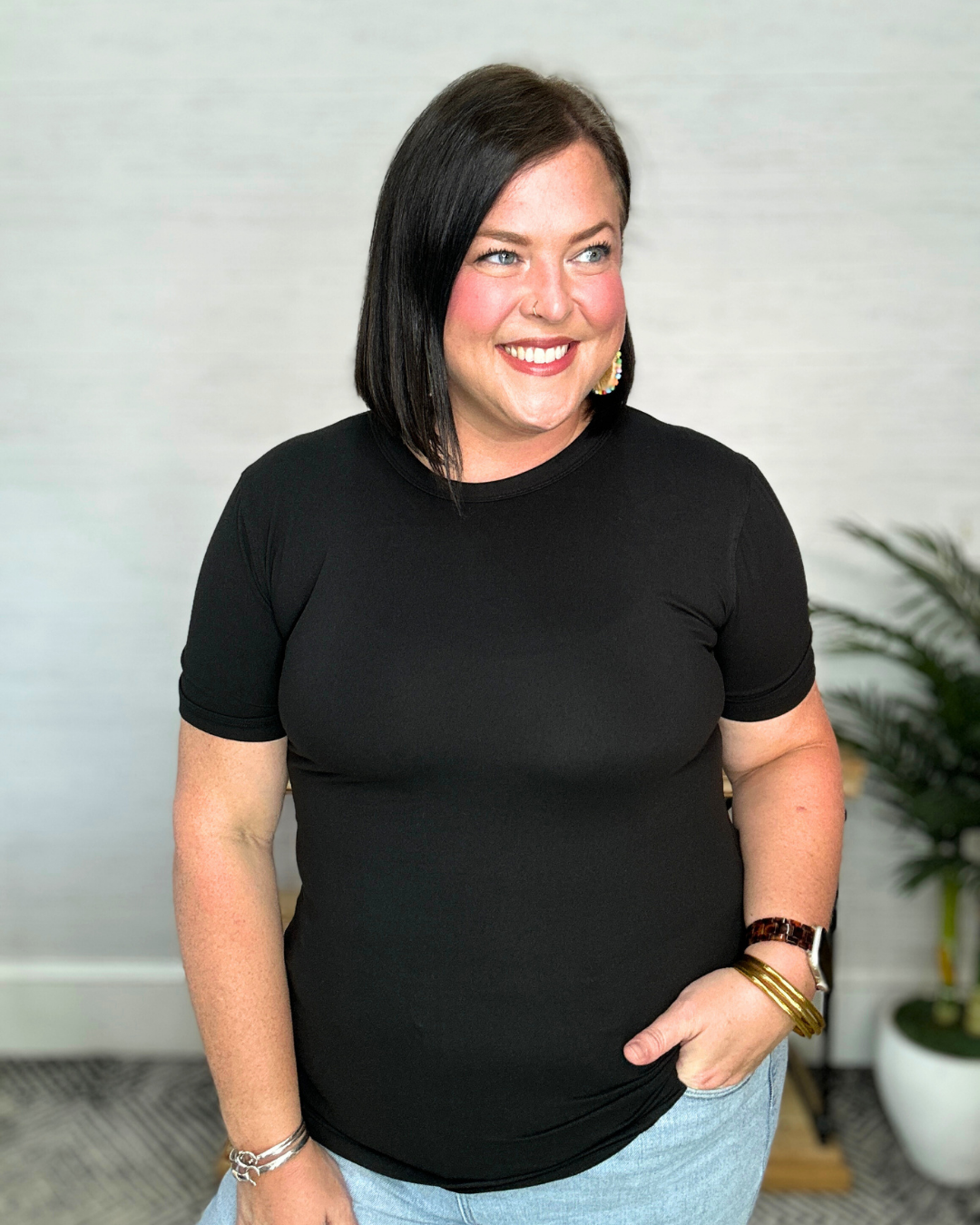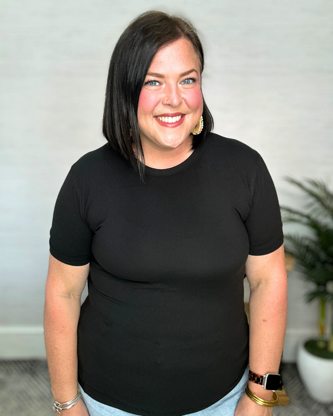 This Black Basic Knit Top is your new go-to for effortless style by Umgee! With its soft knit fabric, round neckline, and breezy short sleeves, it’s perfect for layering or wearing solo. Whether you’re dressing up or keeping it casual, this top adds a fresh, playful touch to any outfit.