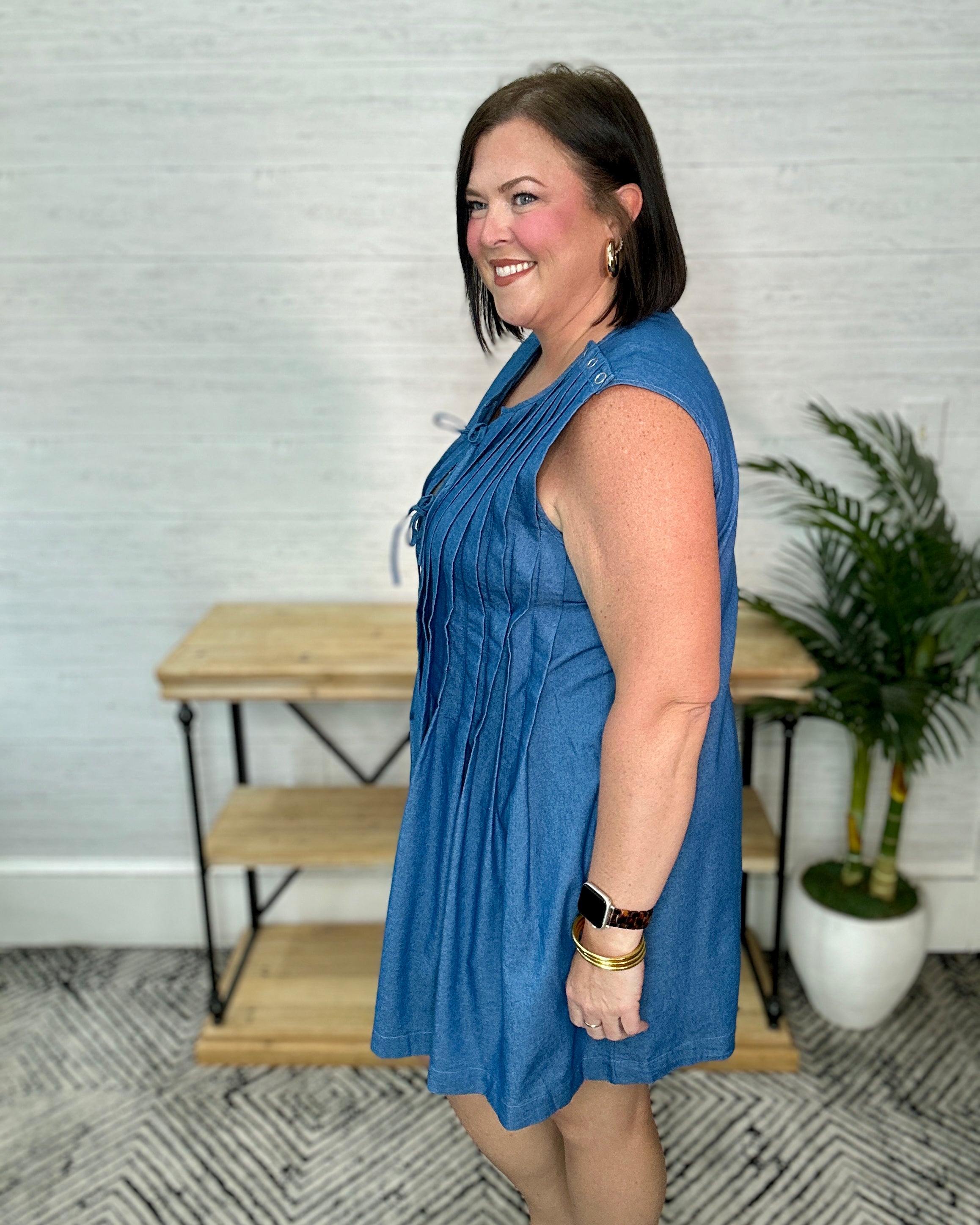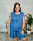 Effortlessly stylish and versatile, this Chambray Pleated Sleeveless Romper combines comfort with fashion-forward design. The lightweight chambray fabric moves with you while the pleated details add a touch of sophistication. Perfect for warm-weather outings or layered with your favorite cardigan, this romper will quickly become your go-to piece for both casual and dressed-up occasions.