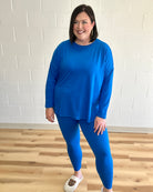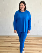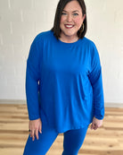 Slip into pure comfort with this Blue Long Sleeve Loungewear Set. Crafted from brushed DTY microfiber, it's buttery soft against your skin and designed to move with you. The fabric offers perfect stretch and recovery, so you stay cozy without losing shape—whether you're lounging at home or running errands. Your new go-to for effortless, all-day comfort.