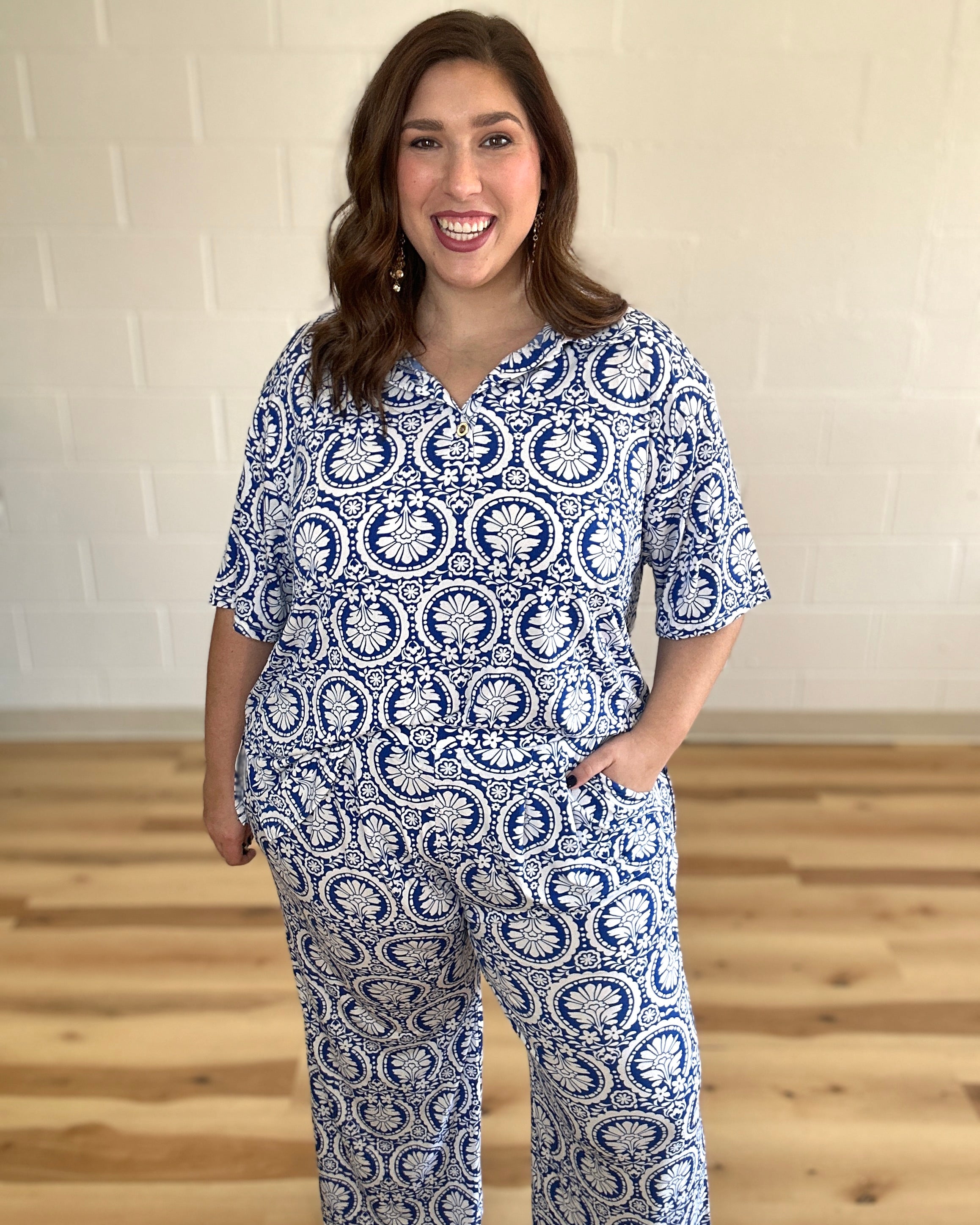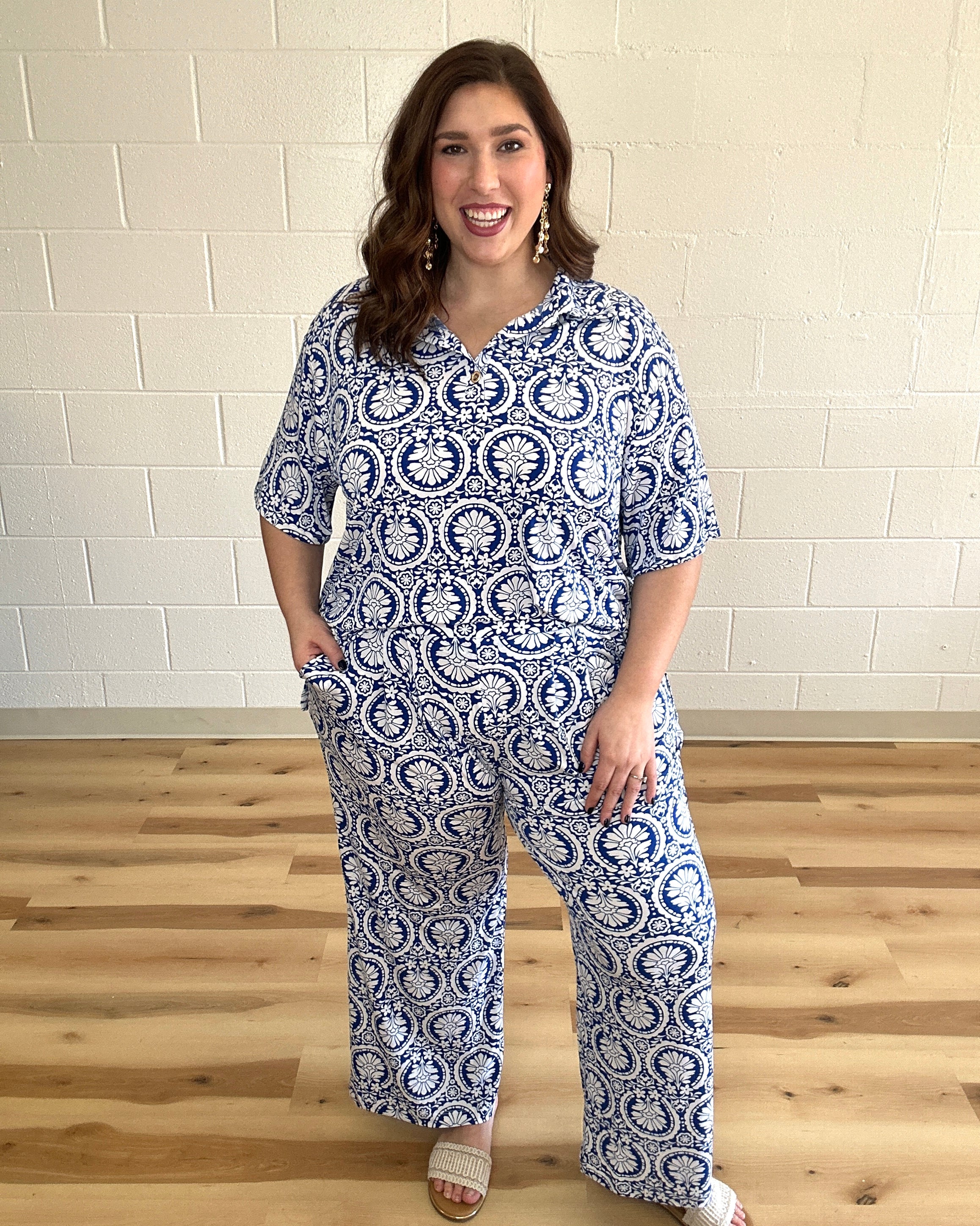 Elevate your warm-weather wardrobe with the Ocean Tide Set, a refined two-piece ensemble designed for understated elegance. The relaxed short-sleeve blouse features subtle placket detailing, while the coordinating bottoms showcase graceful pleats that add dimension and movement. Versatile enough for casual days yet polished enough for special occasions, this set delivers effortless sophistication when you need it most.