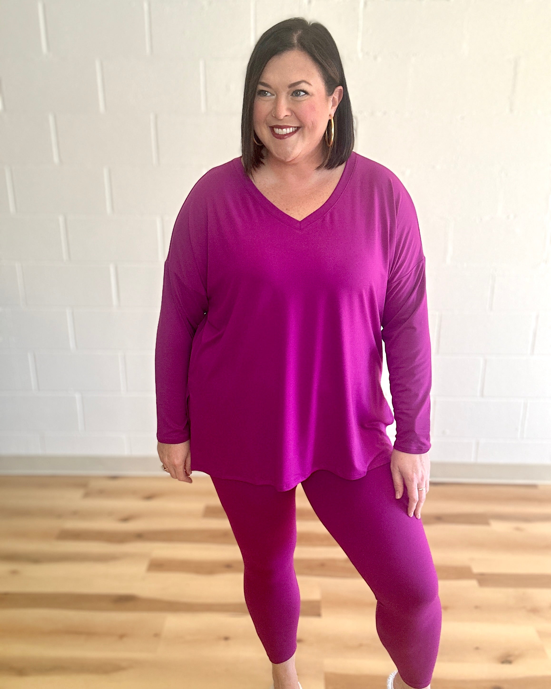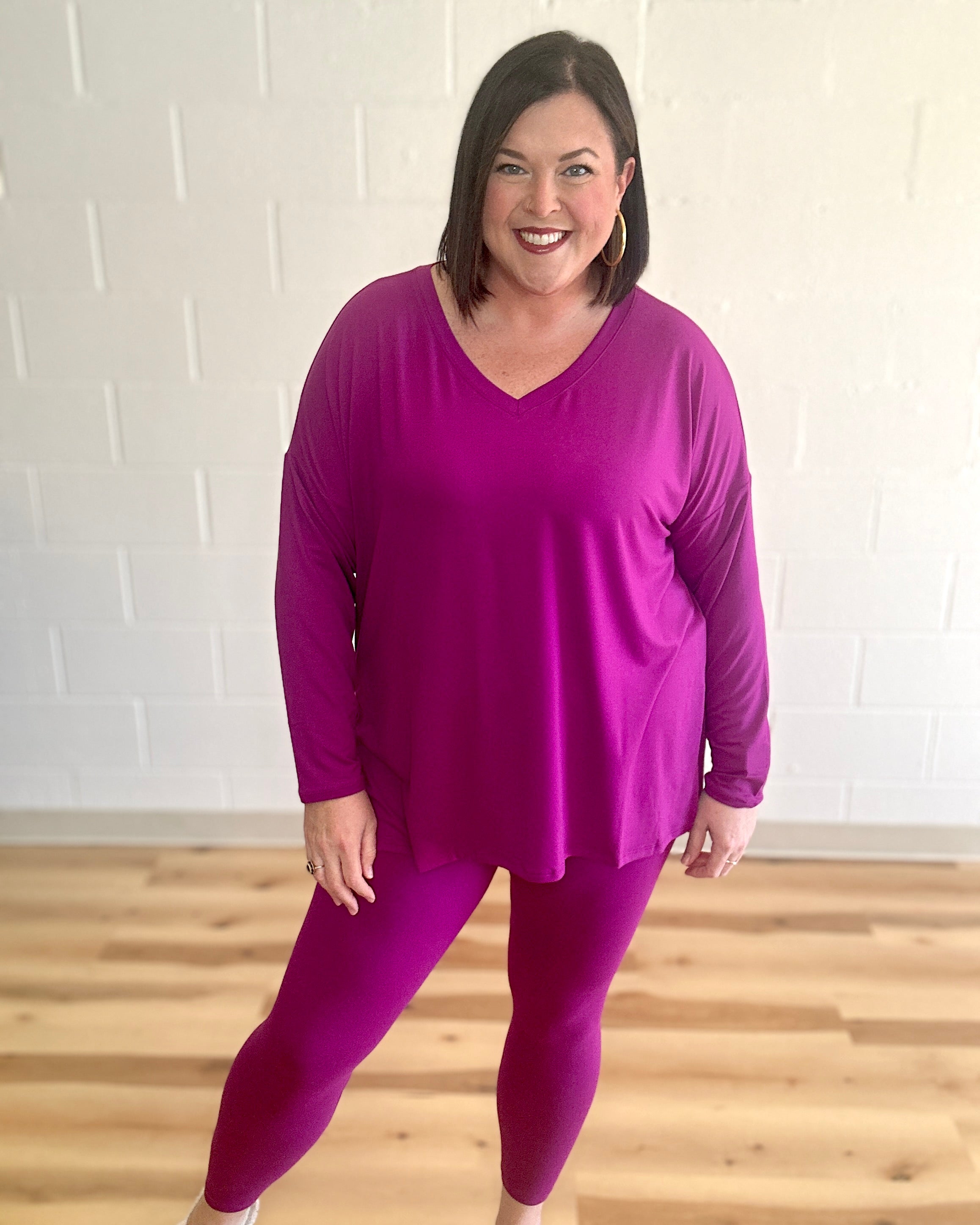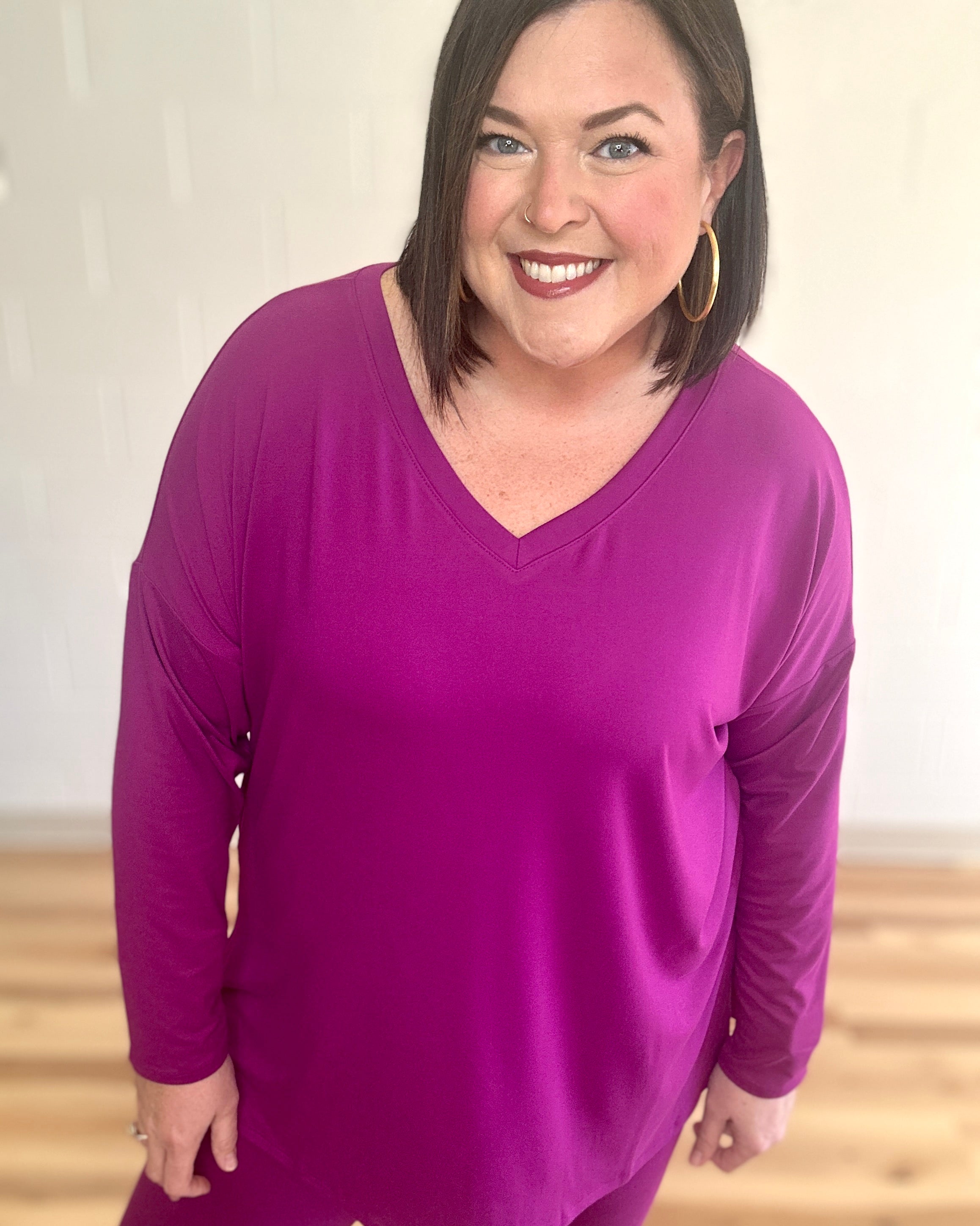 Indulge in effortless comfort with this brushed DTY microfiber loungewear set. Crafted from buttery-soft fabric that feels luxurious against the skin, it features exceptional stretch and recovery for a flattering fit that moves with you. The long-sleeve V-neck silhouette offers a refined, relaxed aesthetic perfect for unwinding at home or layering for casual outings. Experience the perfect balance of softness and durability in a piece designed for everyday elegance.