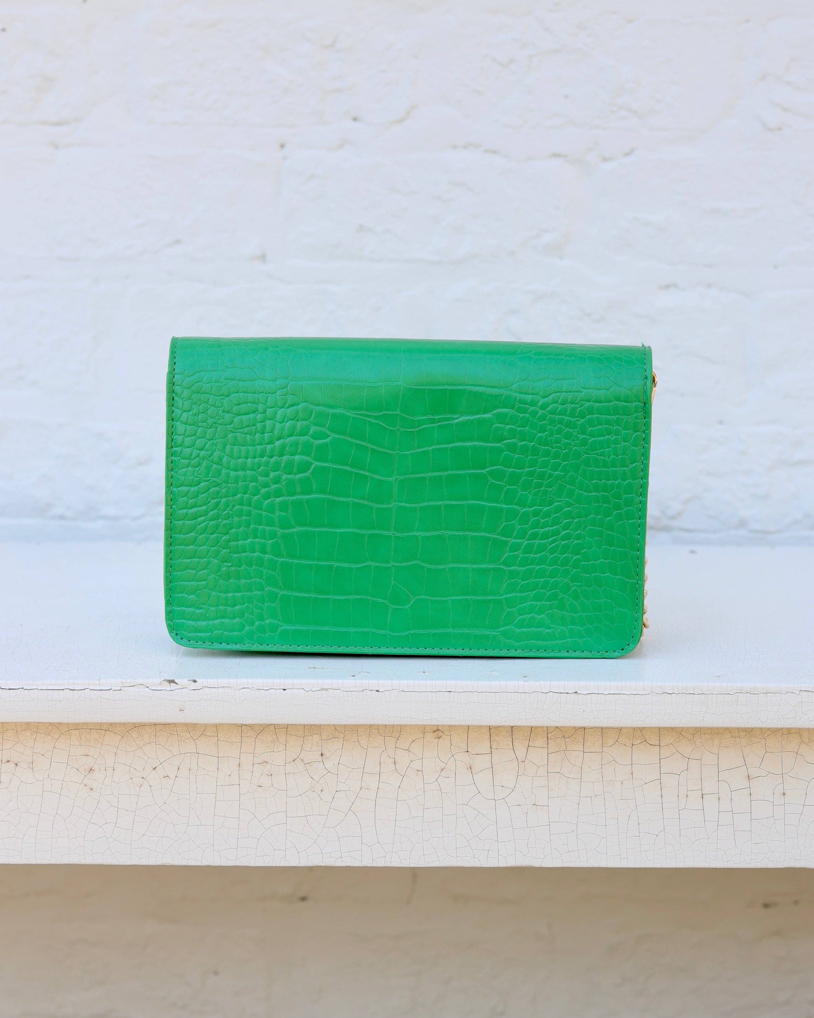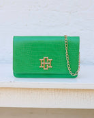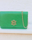 This embossed croc textured, vegan leather crossbody is equipped to keep you organized! There are built in credit card slots inside as well as a zippered pocket and open pocket. It features the signature, shiny gold Caroline Hill logo on the front magnetic flap. The chain crossbody strap has a strip of matching material to sit comfortably on your shoulder. It can also be removed to carry as a stylish clutch. Great for events or everyday wear!