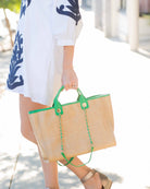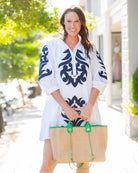 This adorable straw tote is a perfect on the go bag! Missy is designed after Melissa, one of our best sellers! The Missy is smaller and lighter to carry! It has two short top handles as well as two elongated braided handles to carry on your shoulder. The Caroline Hill logo is centered at the top of the bag on one side. It has a magnetic closure and a zipper pocket and 2 open pockets inside. This bag is a great addition to any Spring wardrobe!