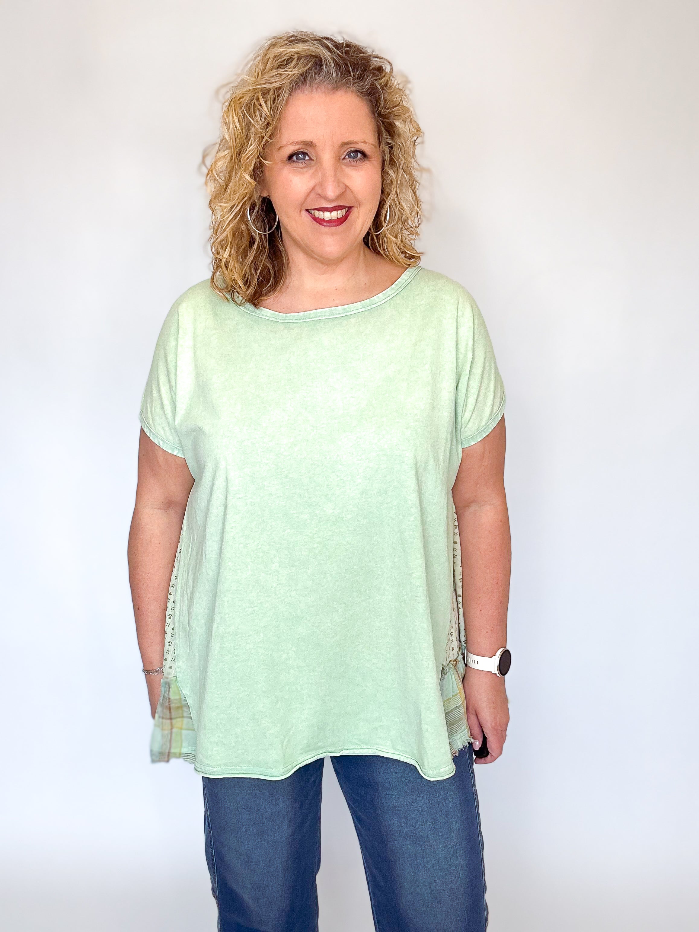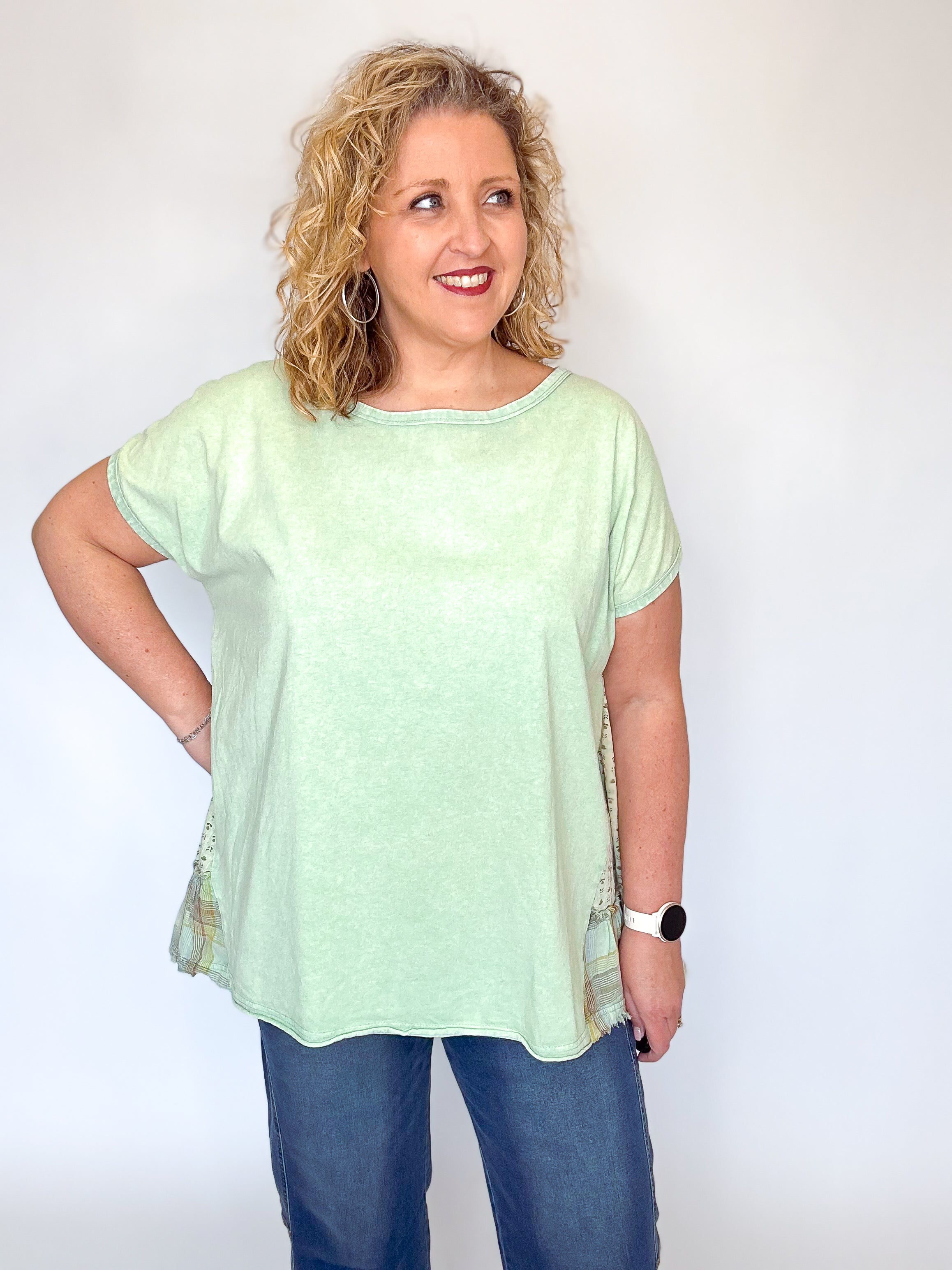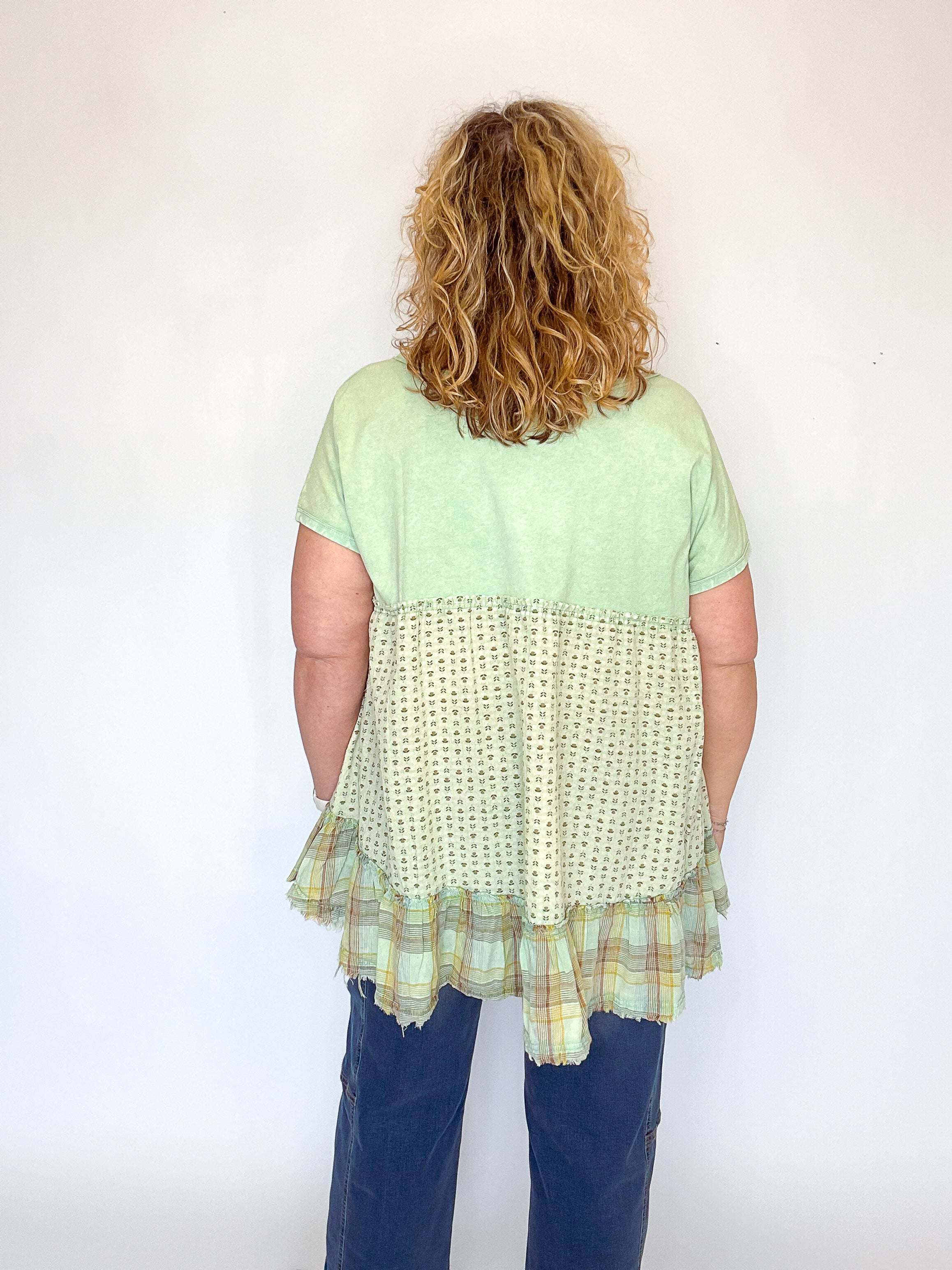 Sage Mixed Print Washed Tunic Top