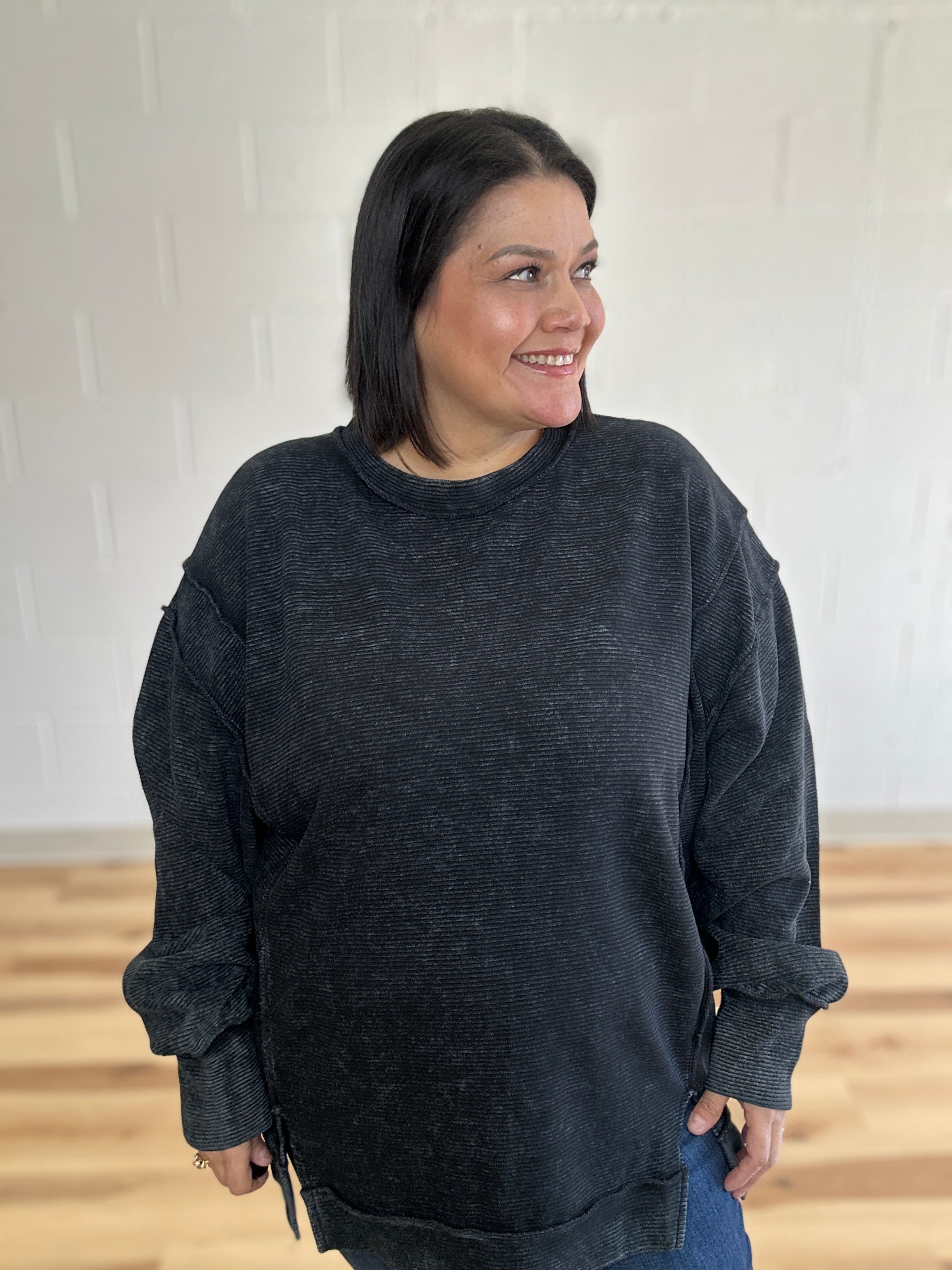Black Ribbed Side Slit Top