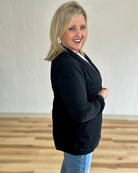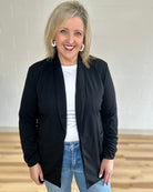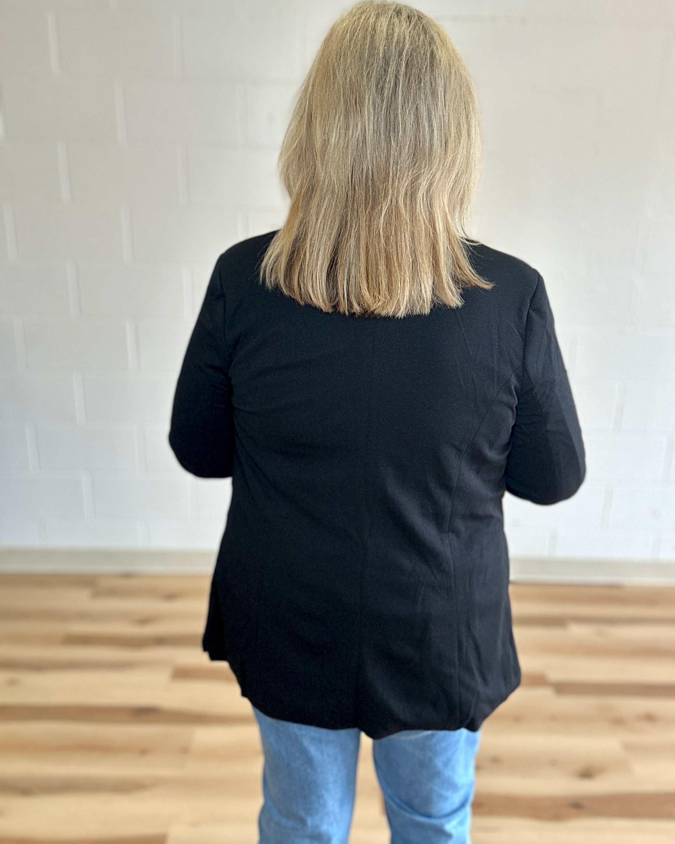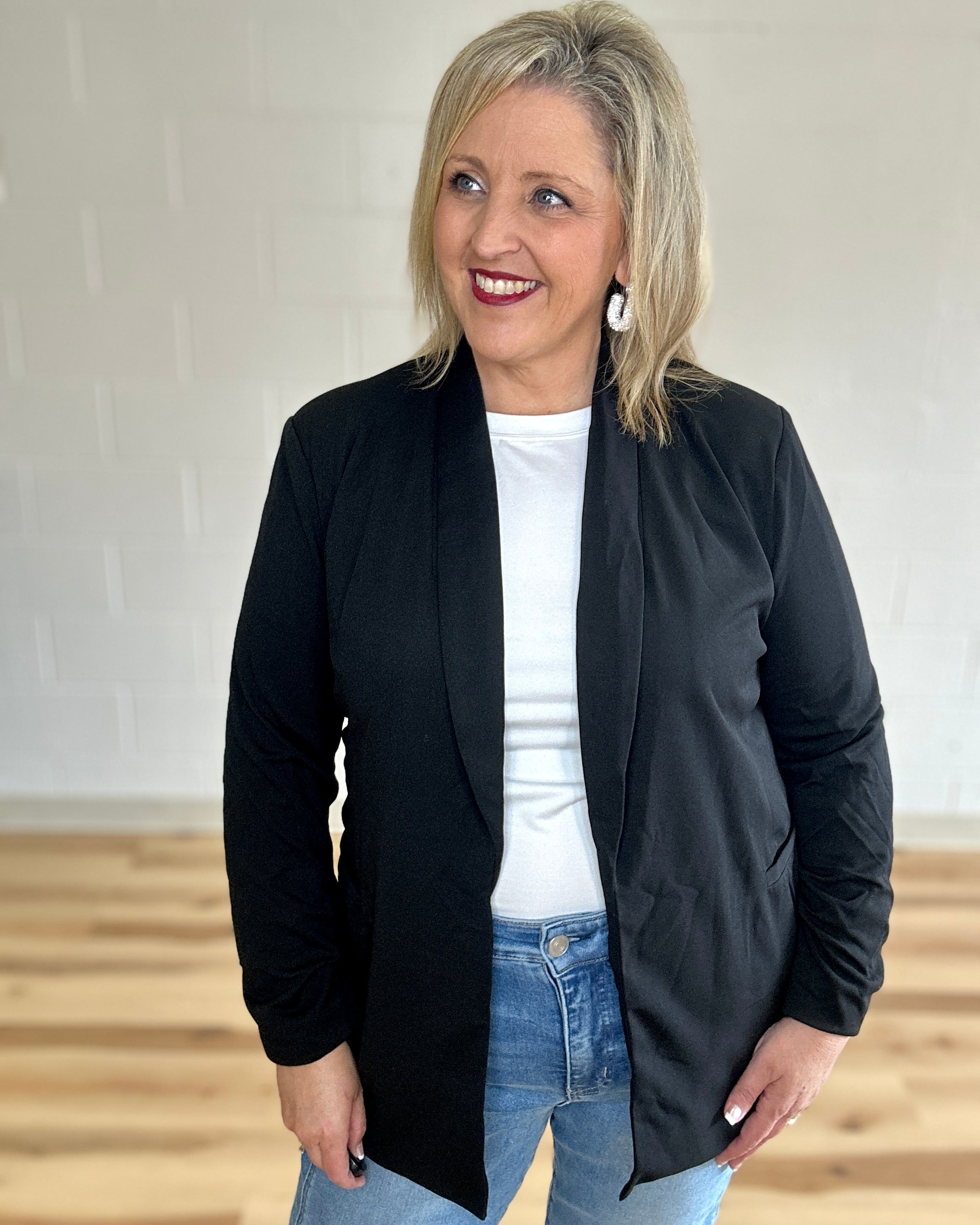 Meet the blazer you’ll reach for again and again. This sleek, open-front blazer instantly elevates any outfit while still feeling comfortable and effortless. Made from a soft, lightweight stretch fabric, it gives you a polished look without feeling stiff or restrictive. Whether you’re styling it with denim for everyday wear or layering it over a dress for work or events, this blazer does it all.