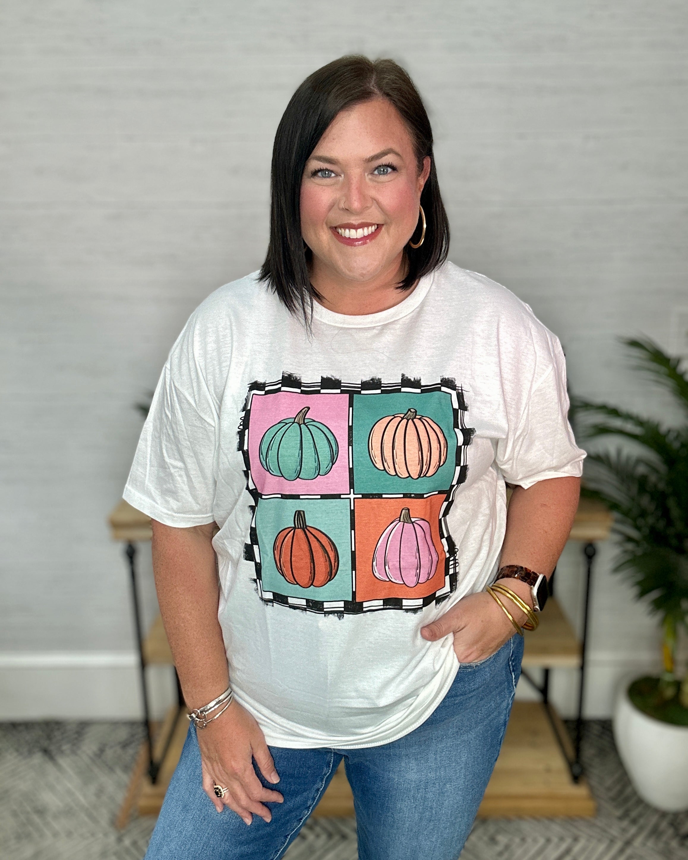 Checkered Square Pumpkins Tee