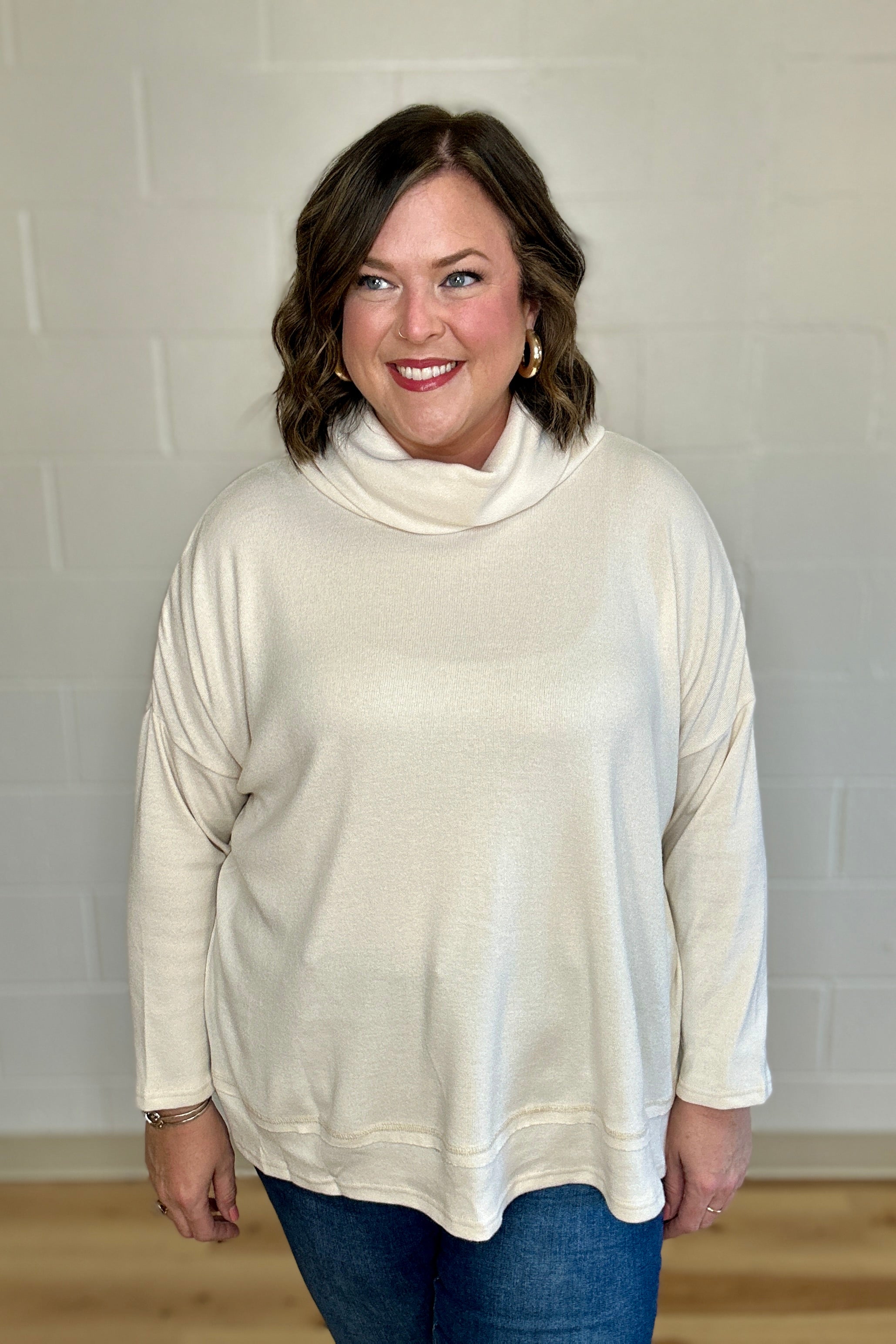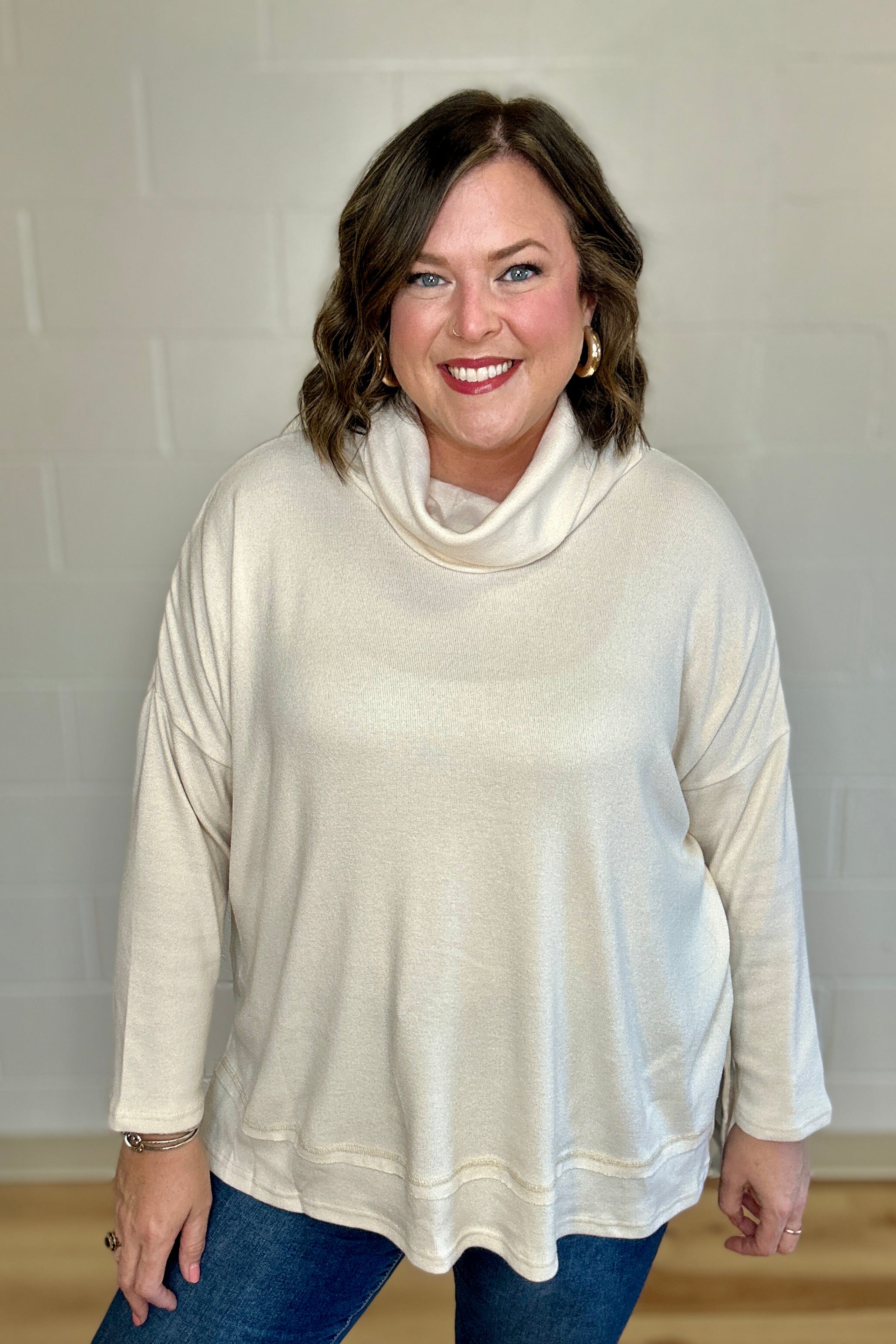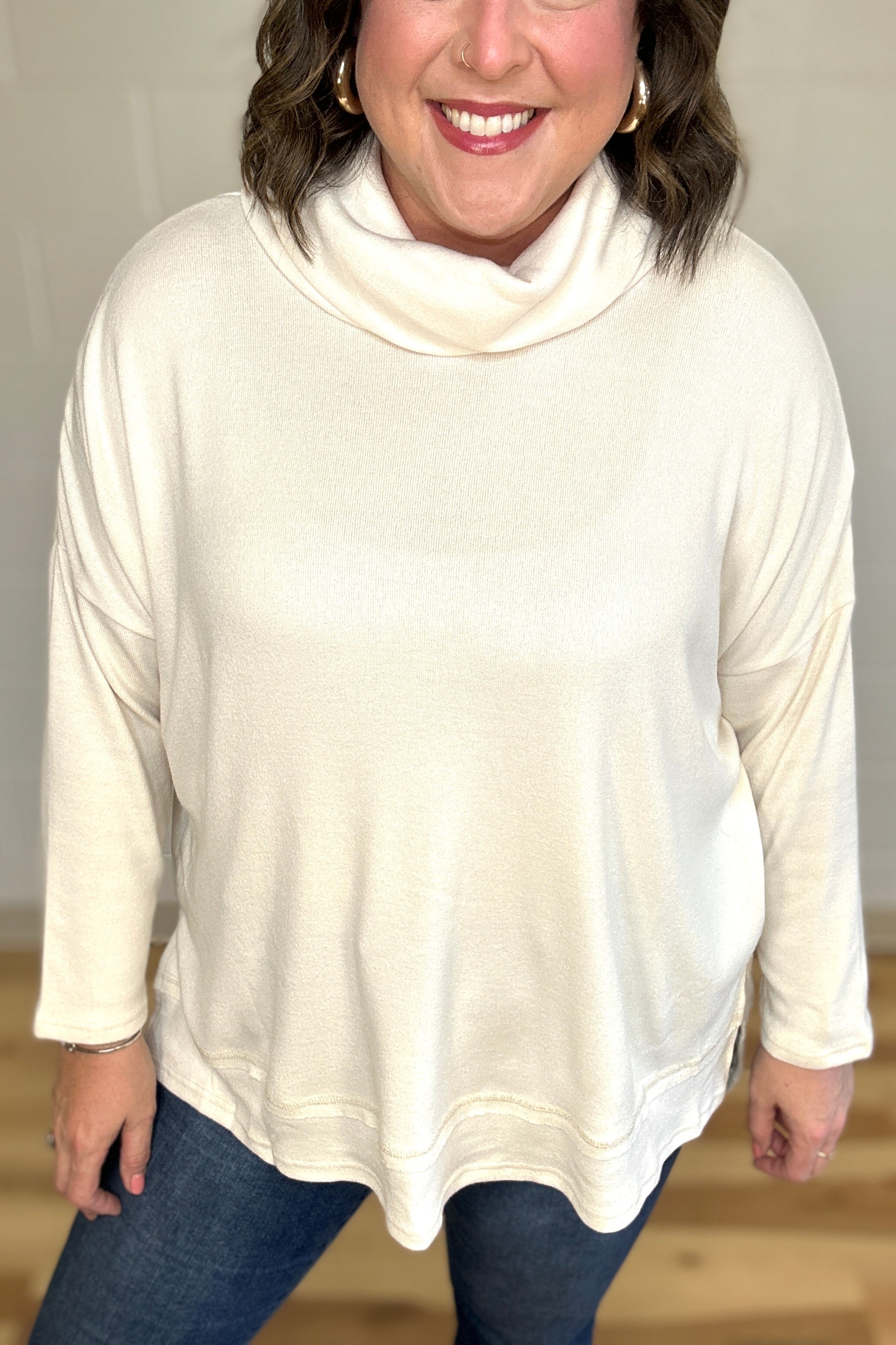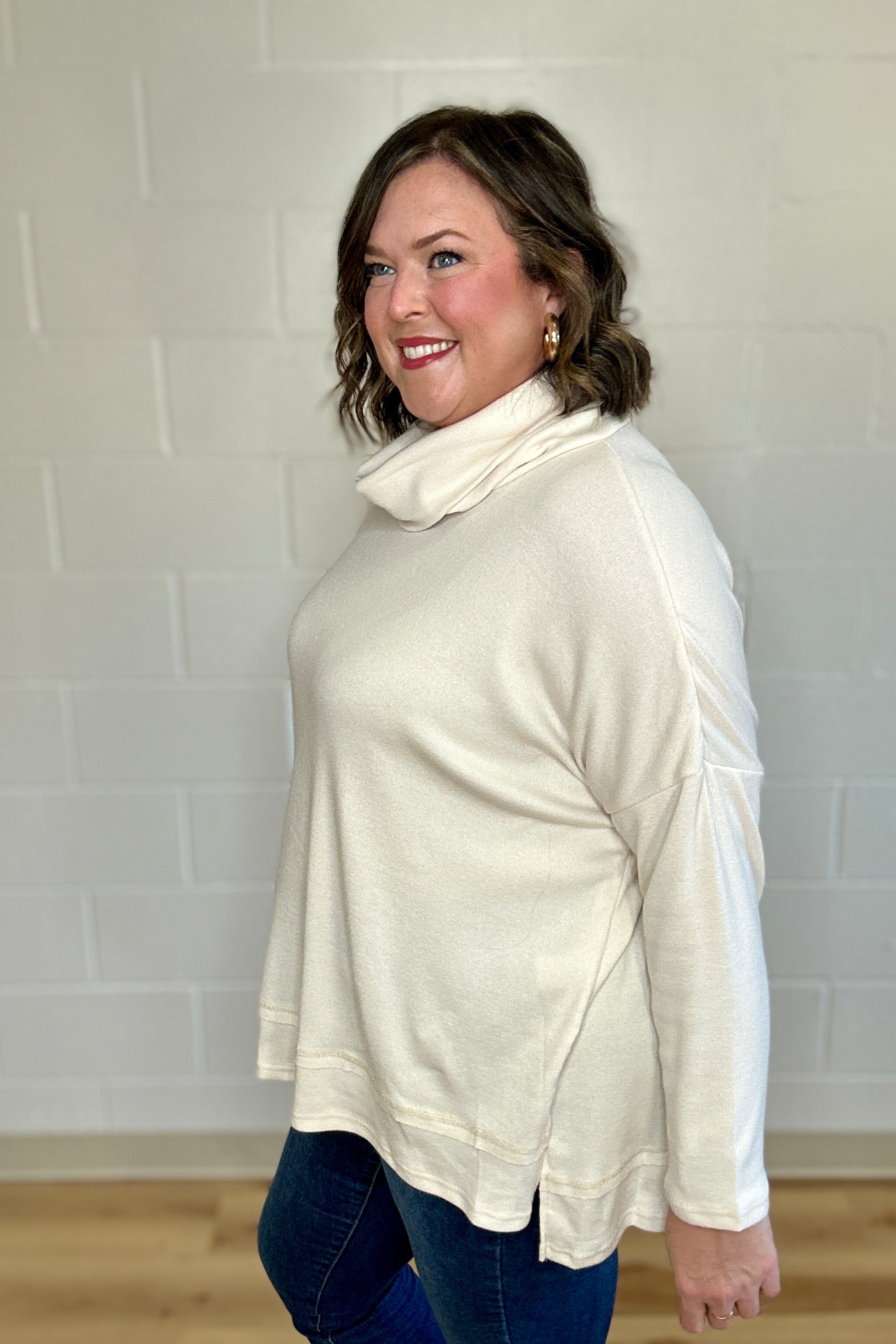 Cream Cowl Neck Side Slit Top