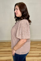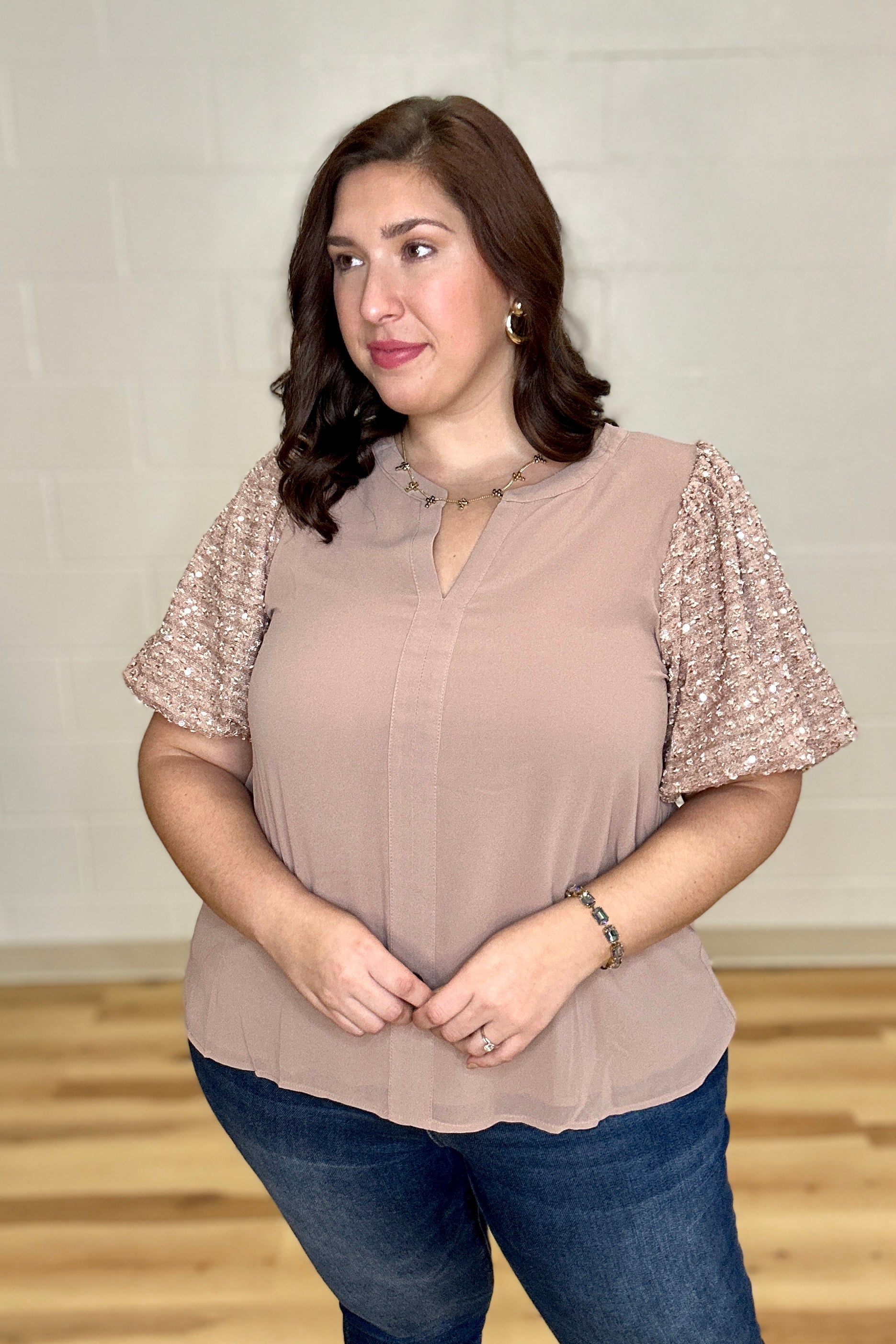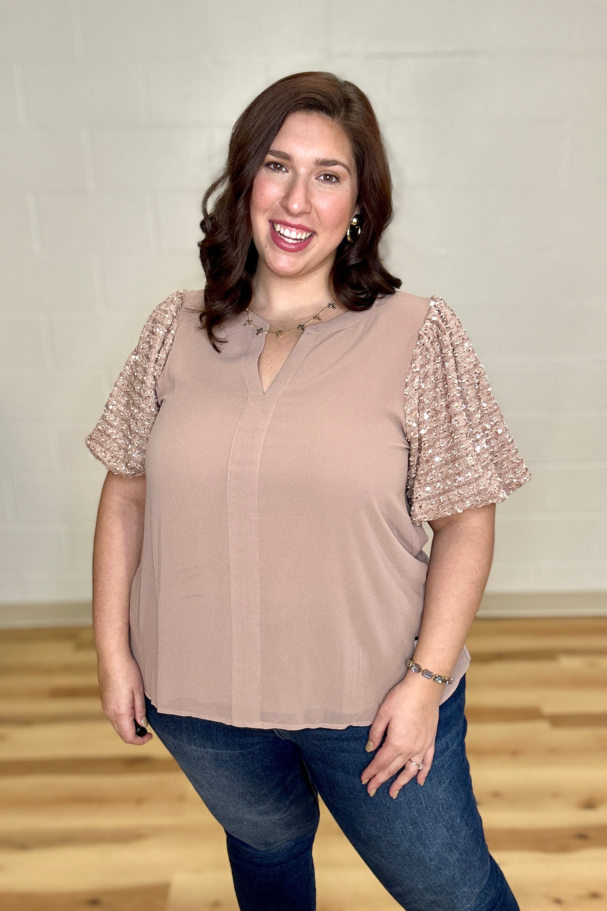 Dusty Rose Chiffon Sequin Puff Sleeves Top