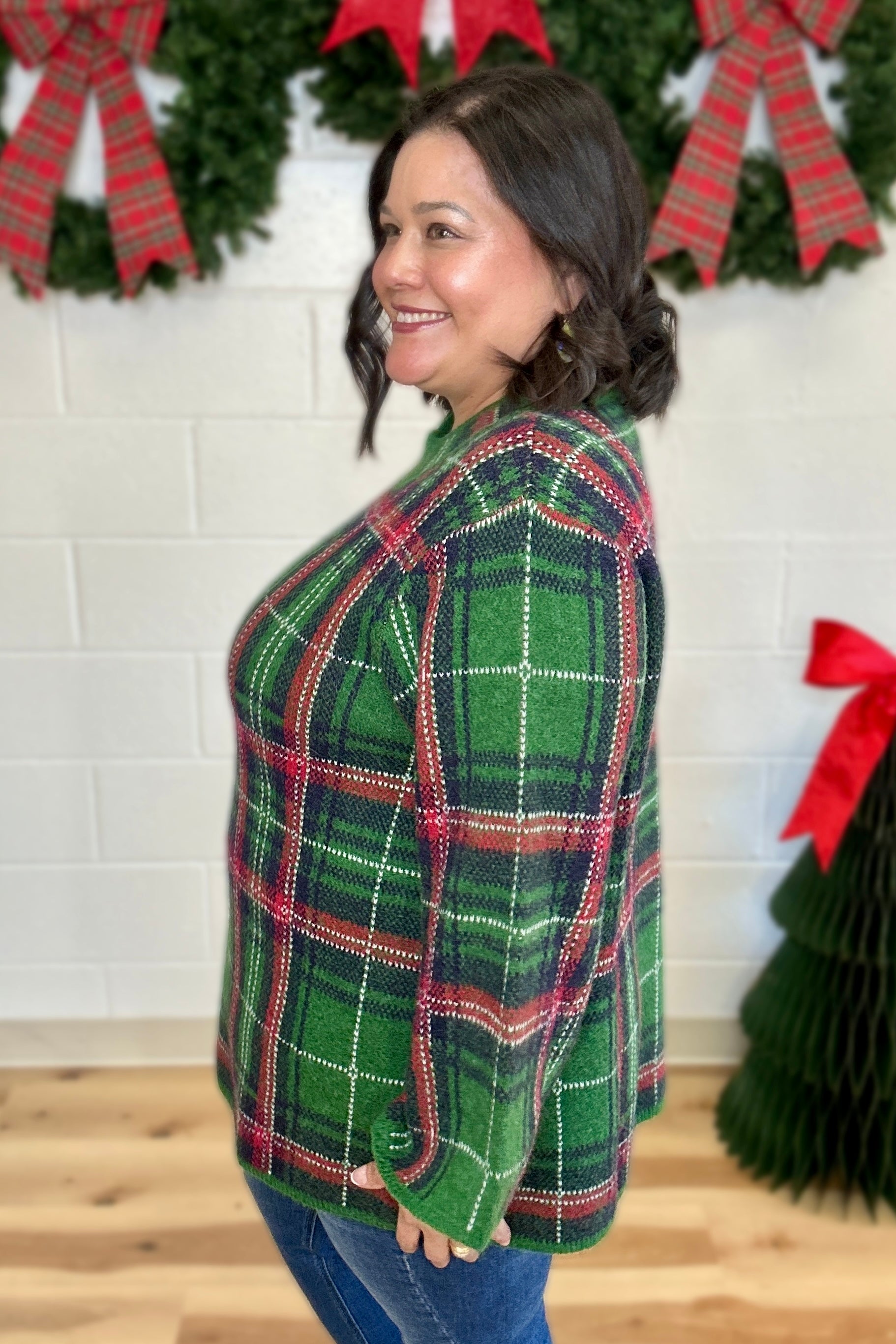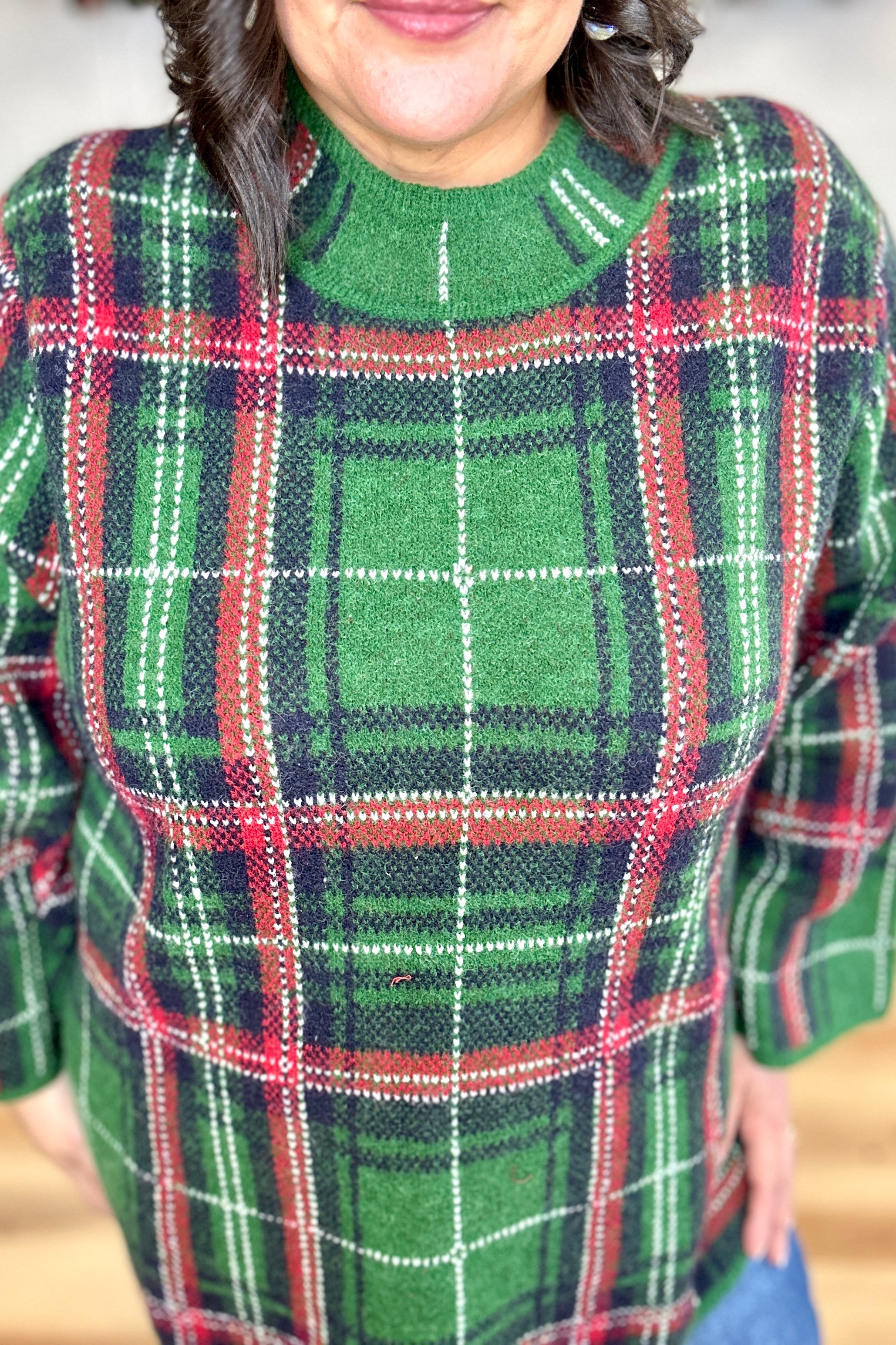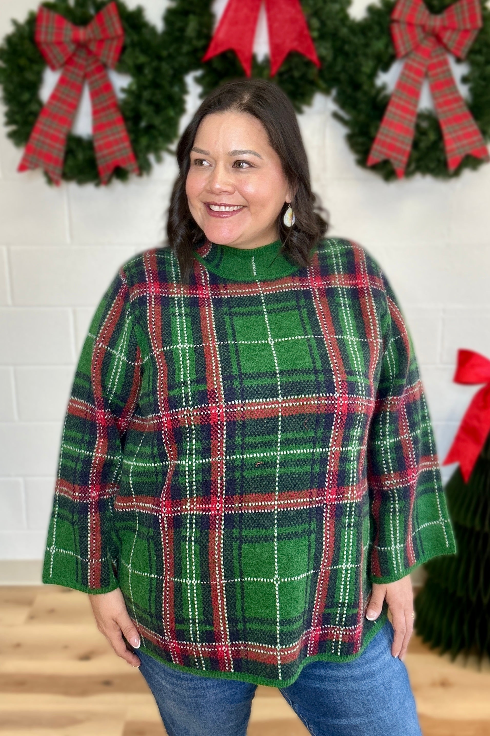 This plaid long sleeve sweater top showcases a relaxed silhouette combined with a mock neck design, offering both comfort and a contemporary edge. Constructed from medium-weight knit fabric, it provides substantial warmth while remaining breathable. The unlined, non-sheer material ensures a clean, polished appearance suitable for layering or standalone wear in diverse settings.