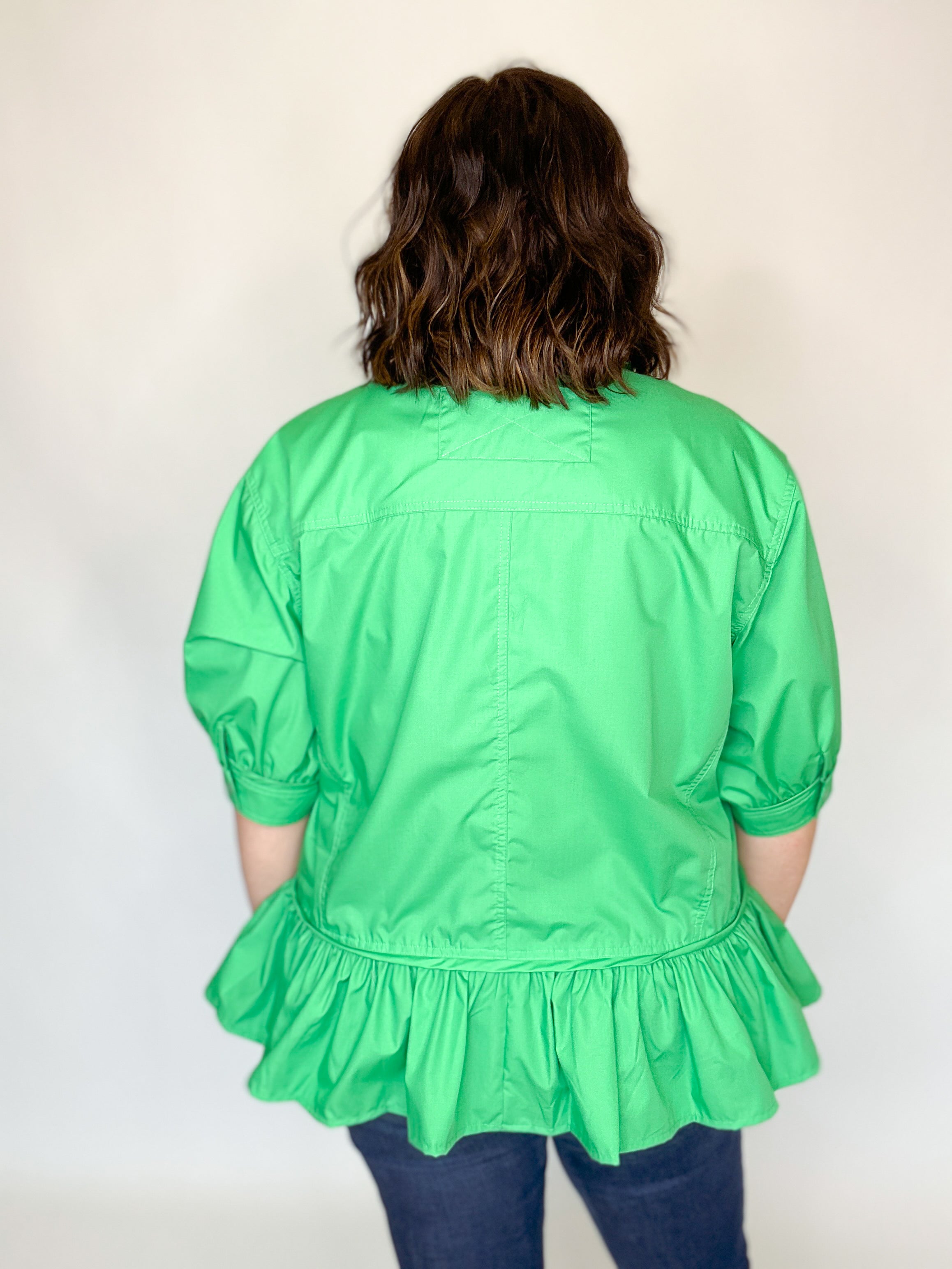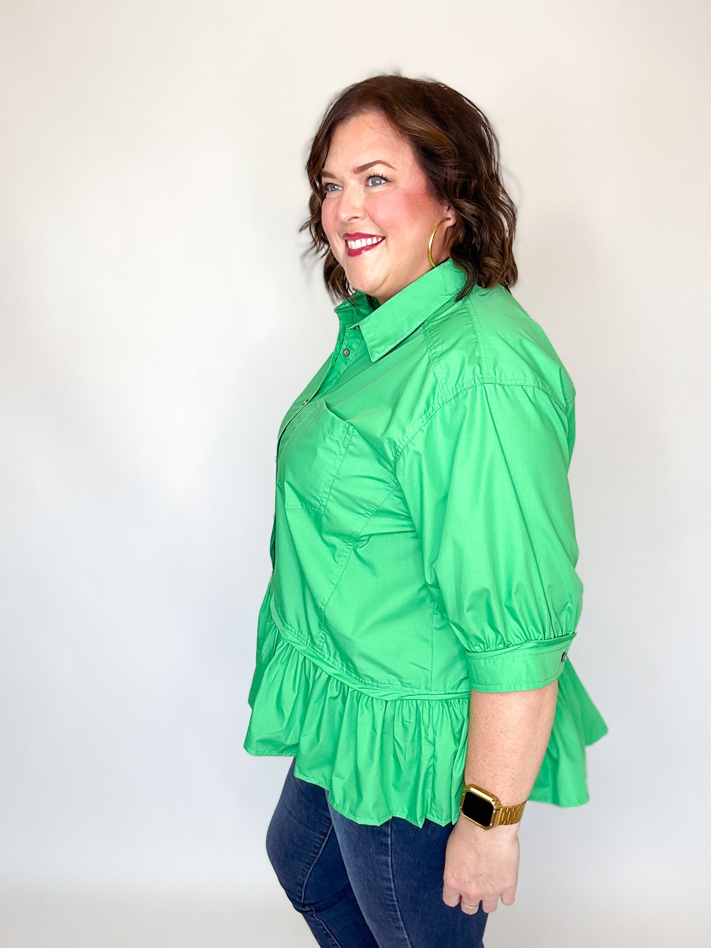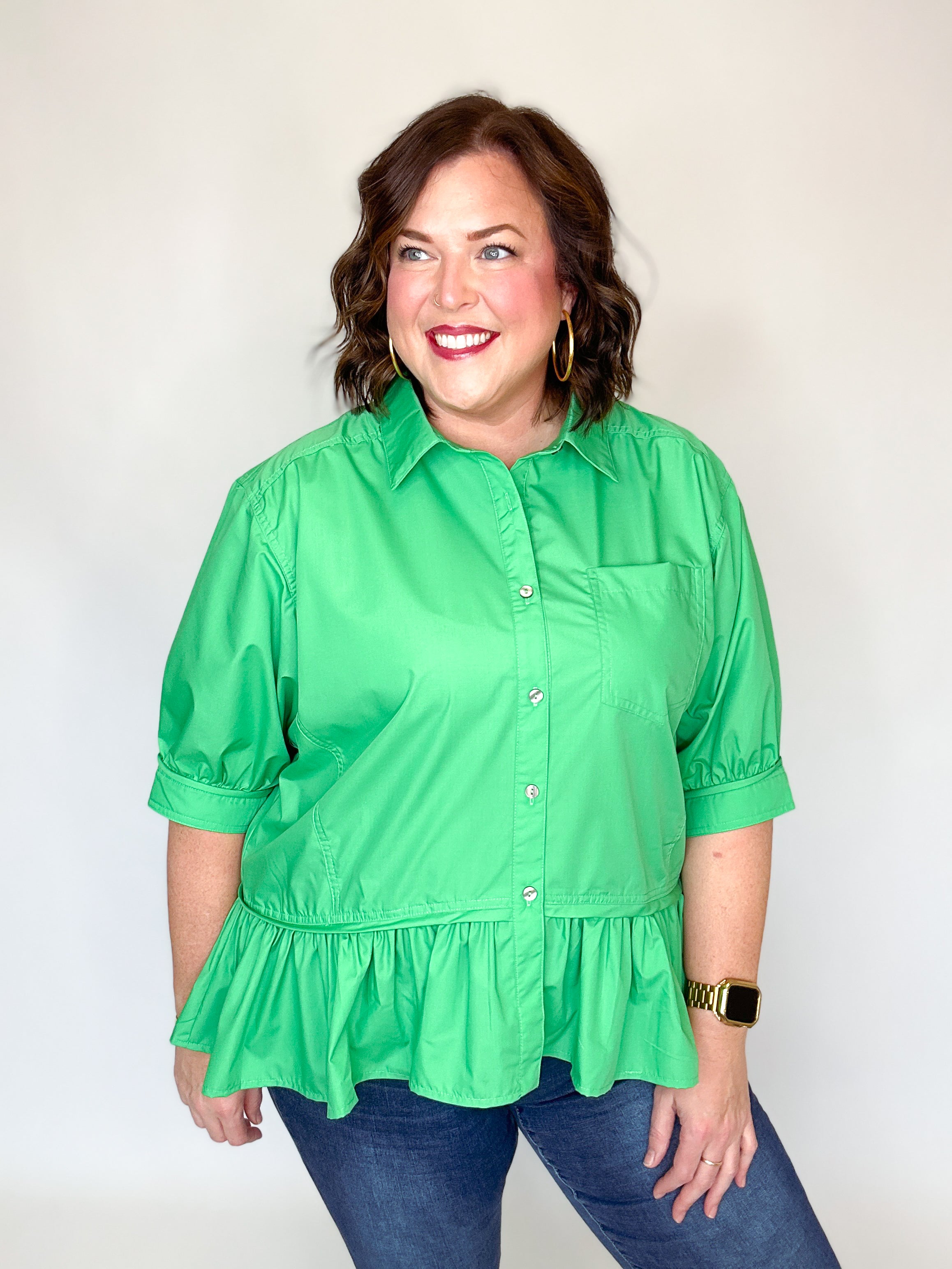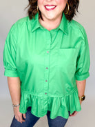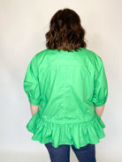 Green Ruffle Drop Waist Button Down Top