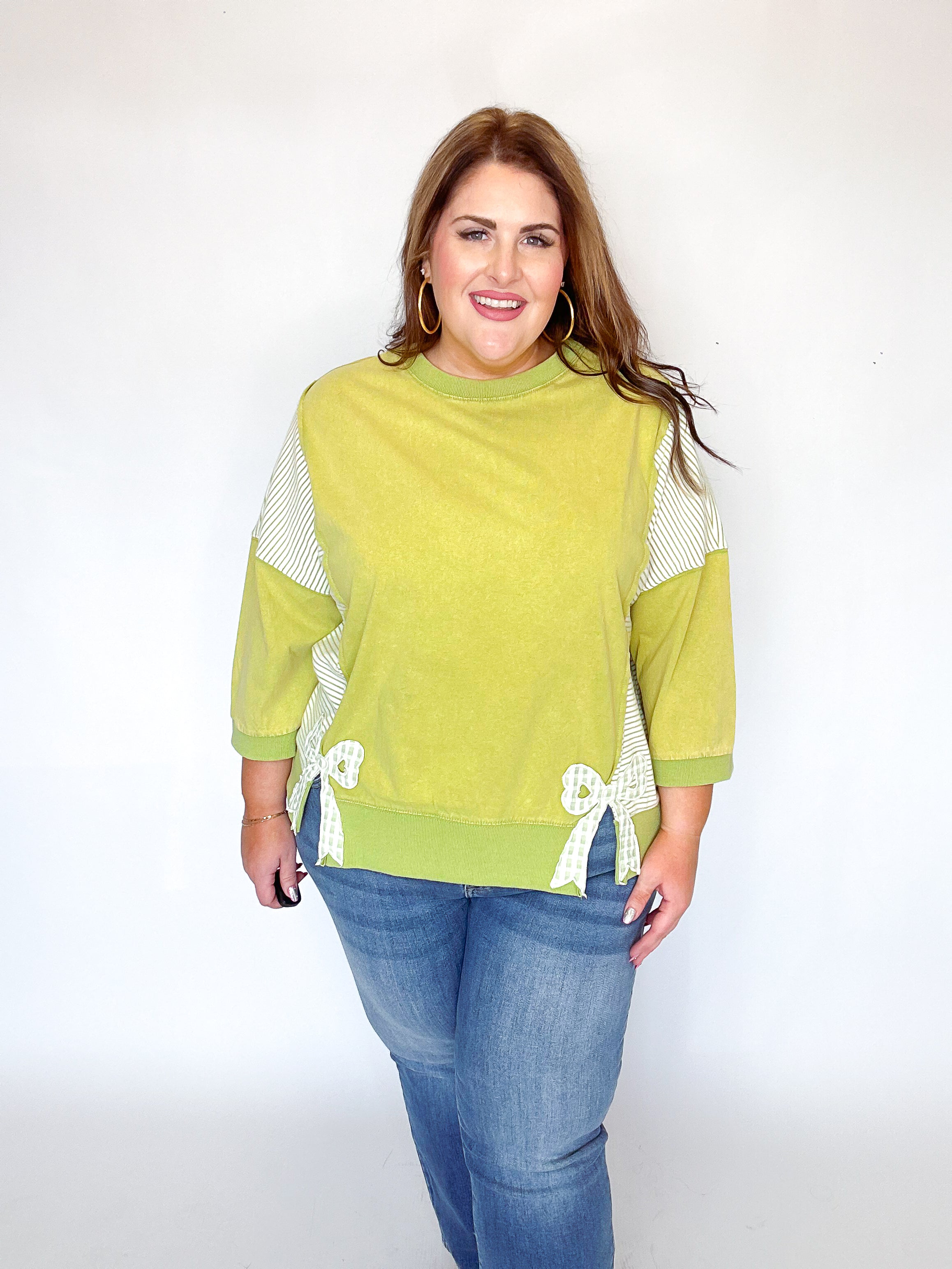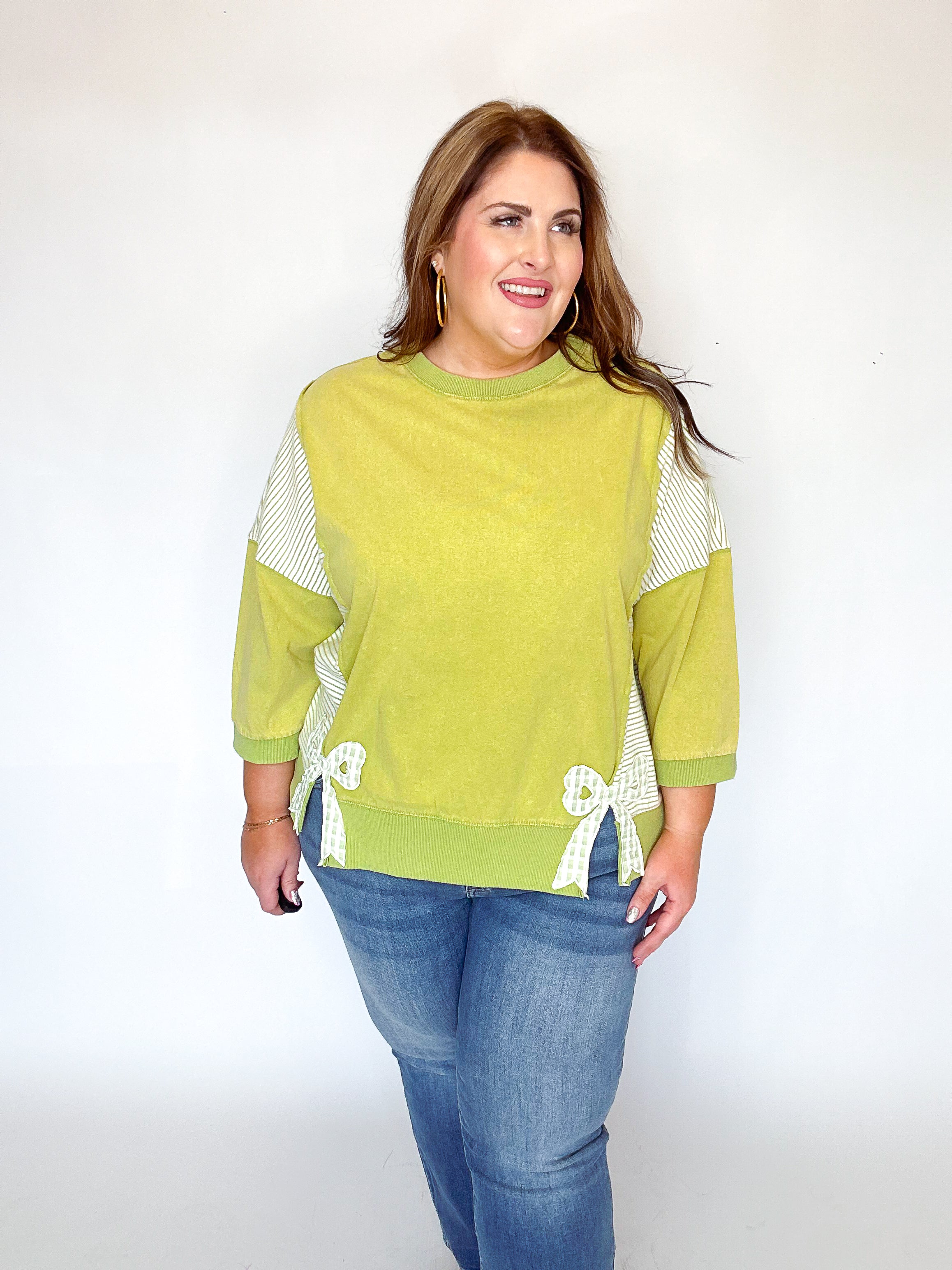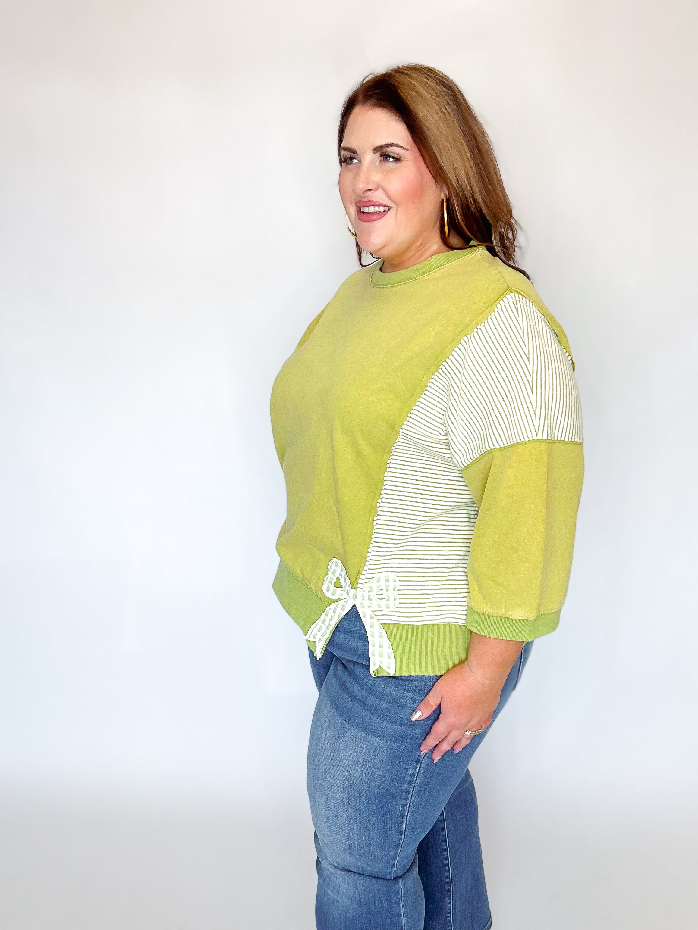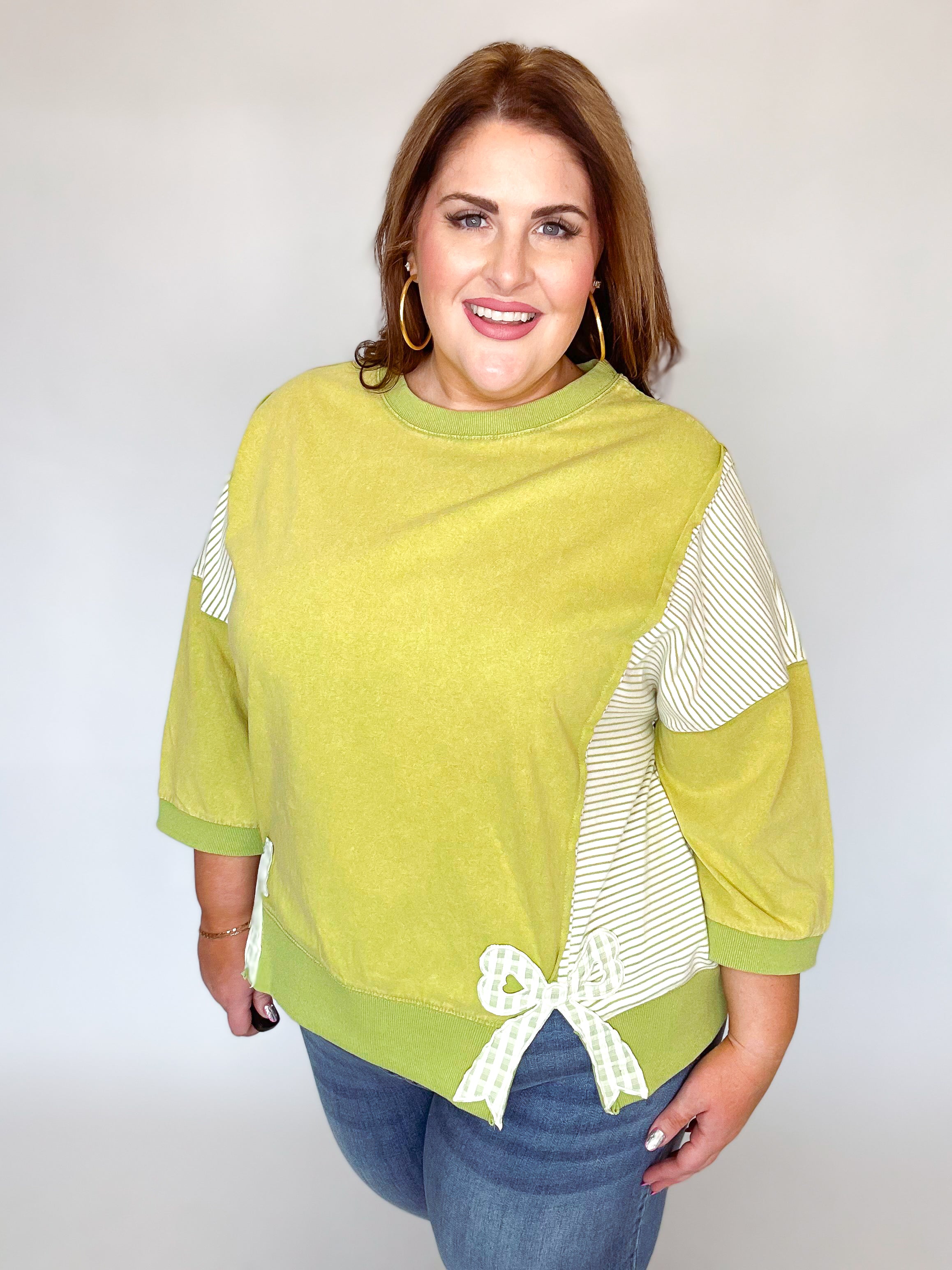 Effortlessly chic, this mineral-washed sweatshirt from Easel combines relaxed comfort with thoughtful design details. The oversized silhouette features a classic crew neckline and three-quarter length sleeves, while gingham bow patches at the side slits add a playful, feminine touch. Perfect for layering or wearing solo, this piece transitions seamlessly from casual weekends to elevated everyday wear.