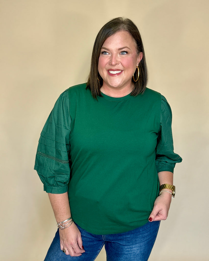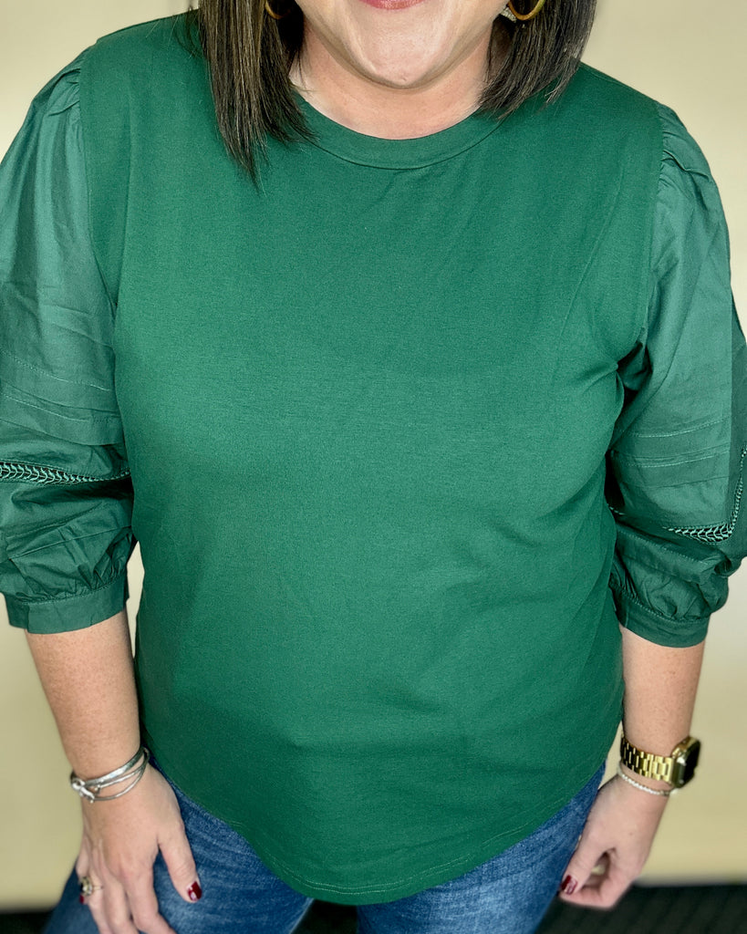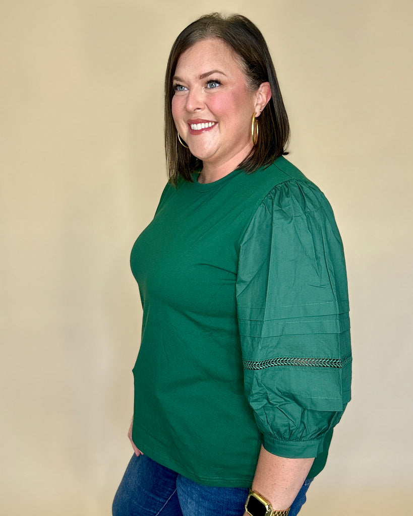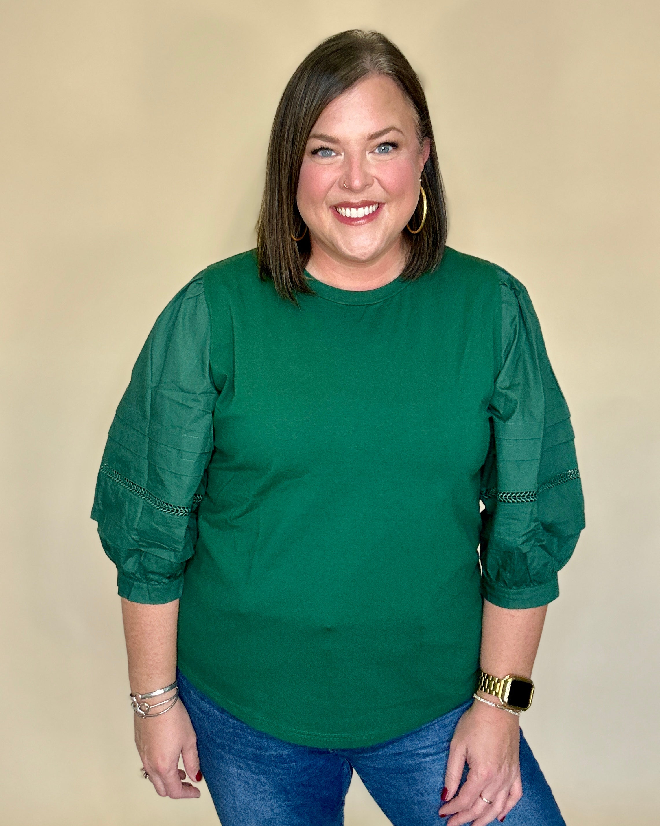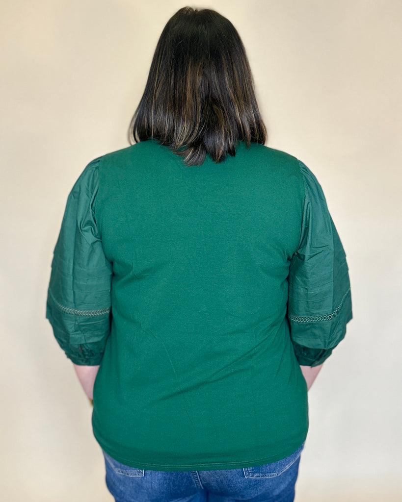 This top features flattering 3/4 puff sleeves and delicate ladder lace trim for a touch of elegance. The button closure cuffs add a refined finish while ensuring a comfortable fit. Designed to highlight your curves with style and ease, it’s perfect for everyday wear or dressing up for special occasions.