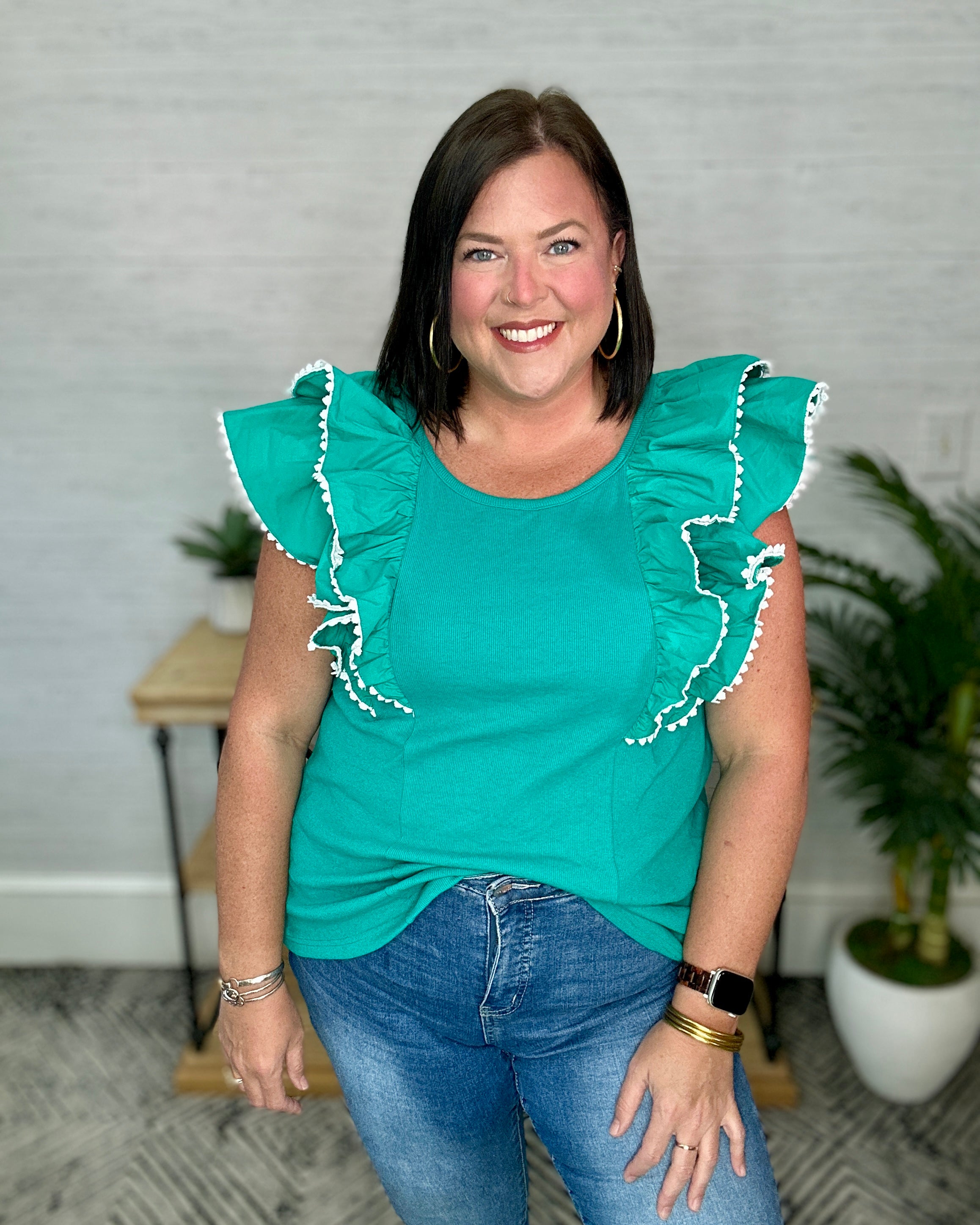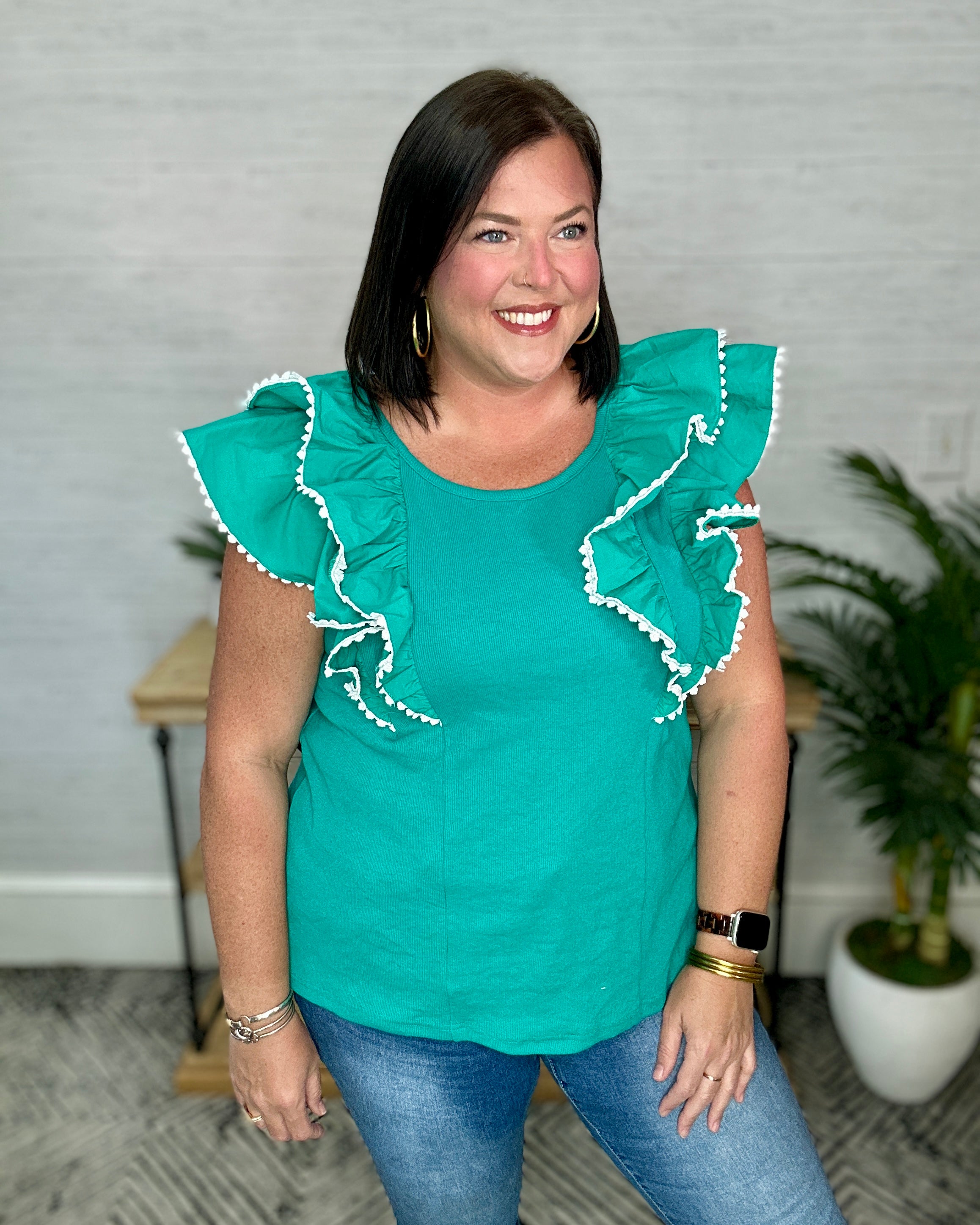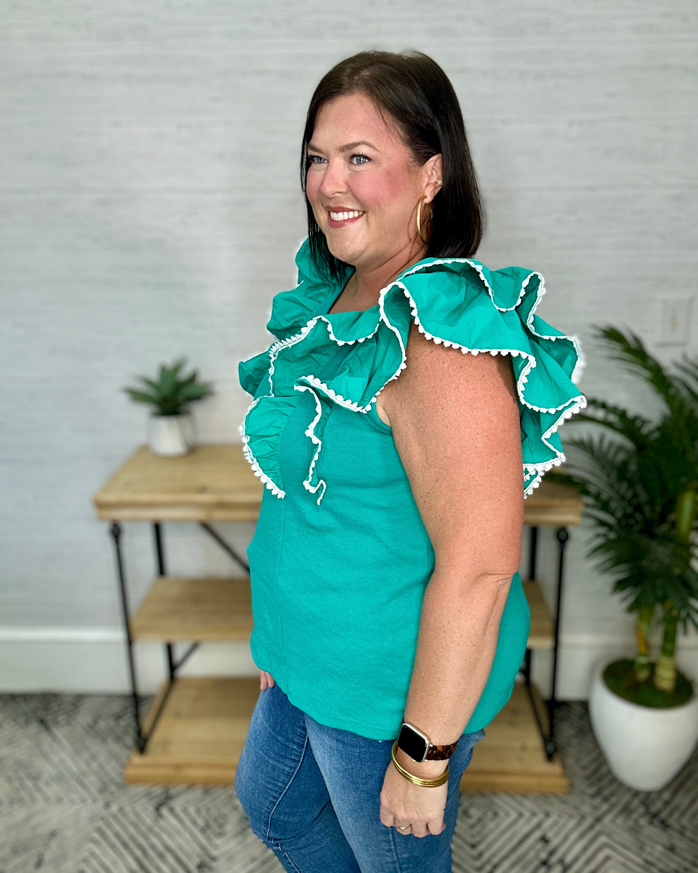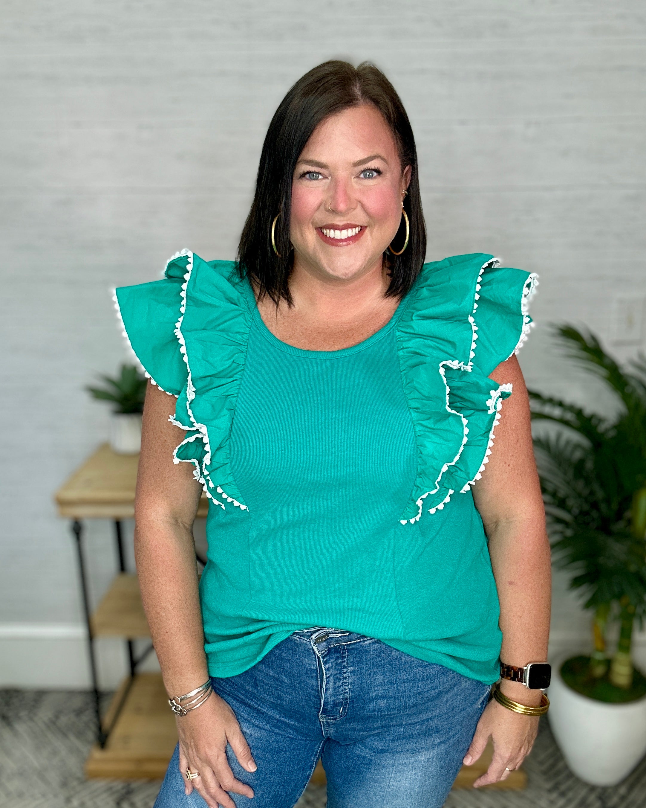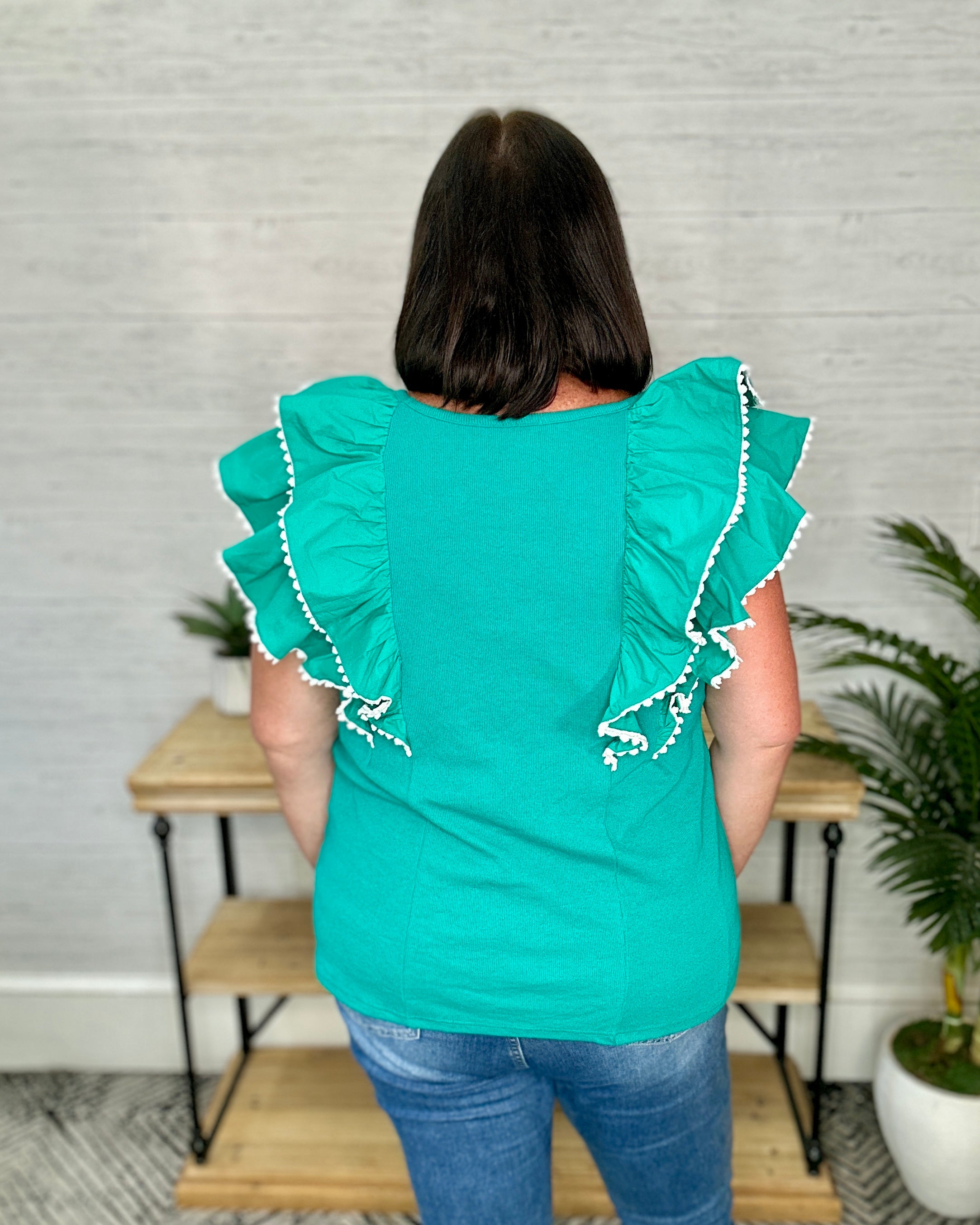 Jade Ruffle Sleeve Lace Trim Top
