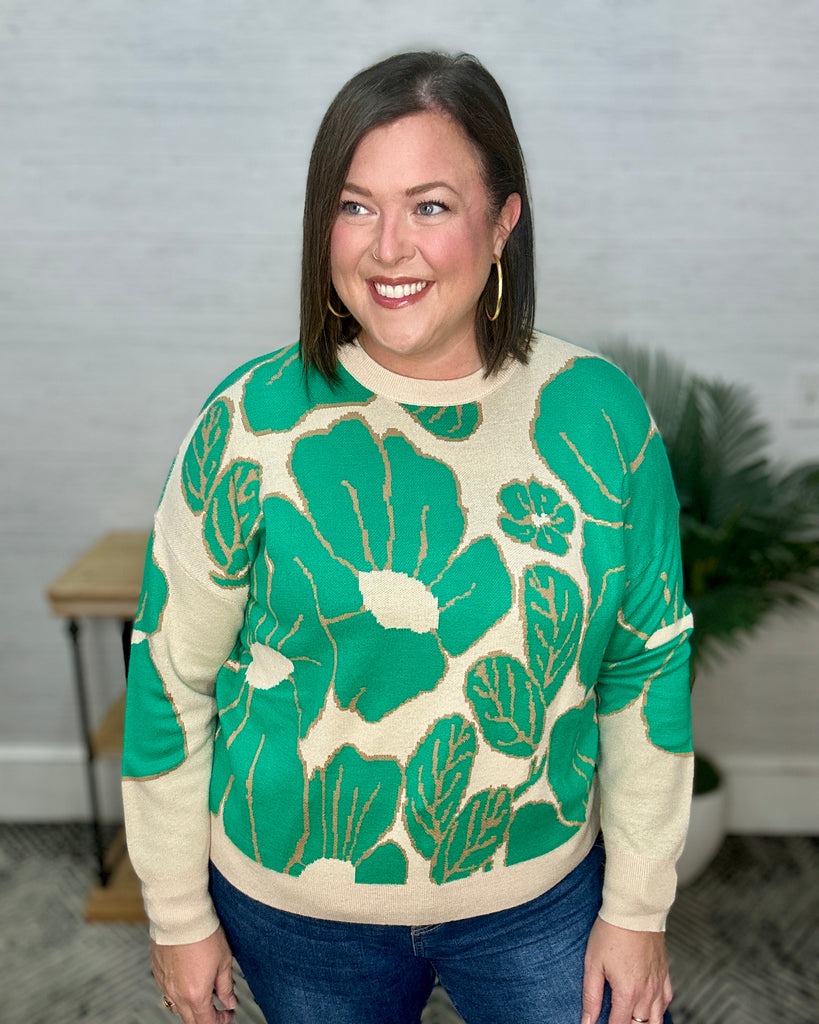 Elevate your wardrobe with this elegant long-sleeve sweater featuring a refined floral print and a classic round neck. Its sophisticated design pairs comfort with timeless style, making it perfect for both casual and polished occasions. Crafted to provide a flattering fit while adding a touch of delicate charm to your ensemble.