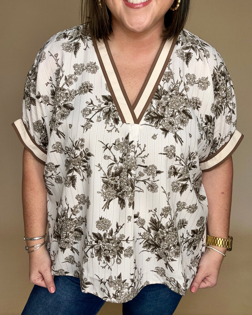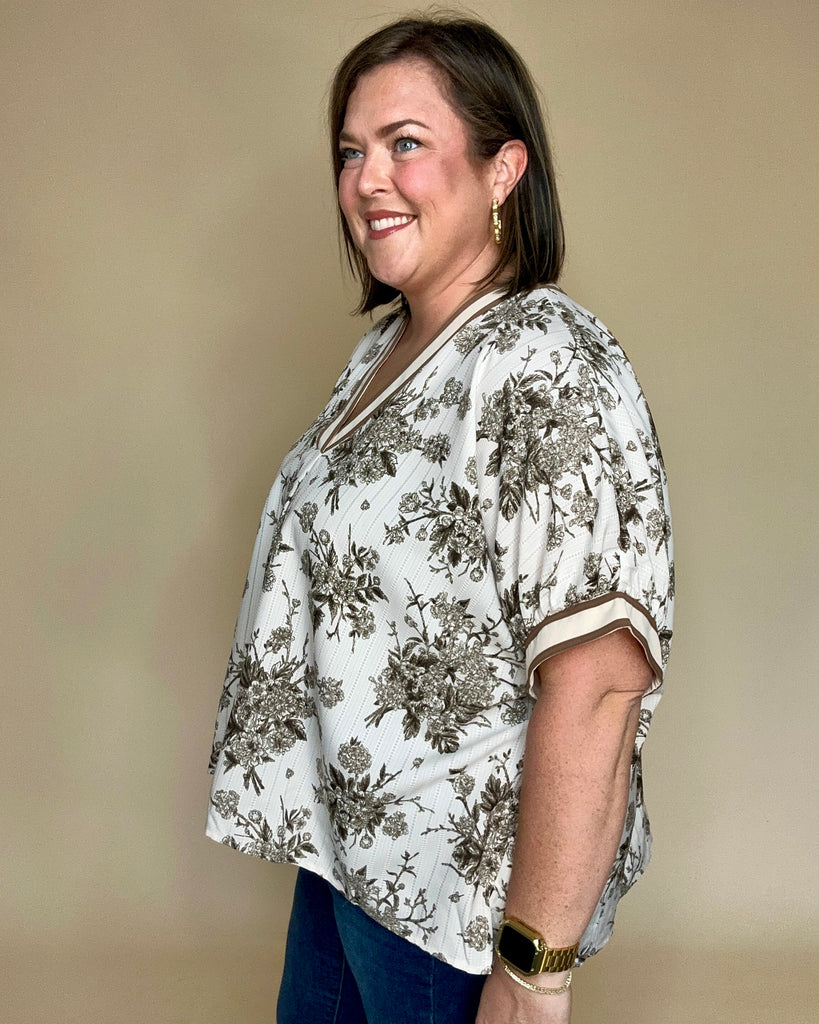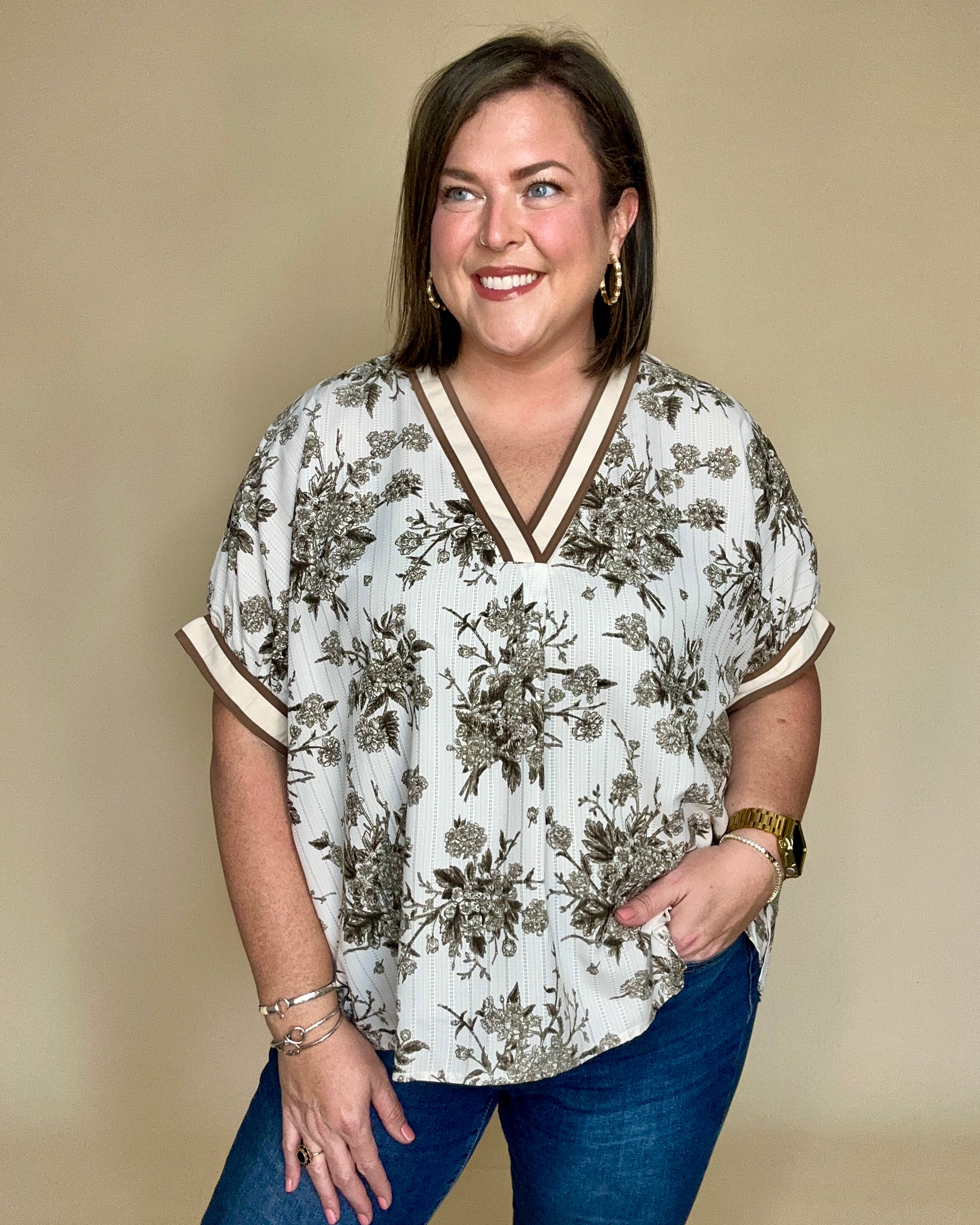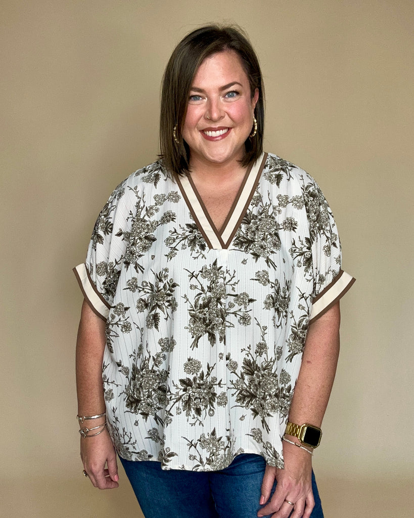 Embrace effortless style with this Mocha Floral Hi-Lo Top from Entro. Its oversized fit and short dolman sleeves create a breezy, relaxed vibe, while the vibrant multicolor band adds a fun pop of color. Lightweight and woven, this unlined top is perfect for layering or wearing on its own without any sheerness. Playful and comfortable, it’s your new go-to for easy, eye-catching outfits.