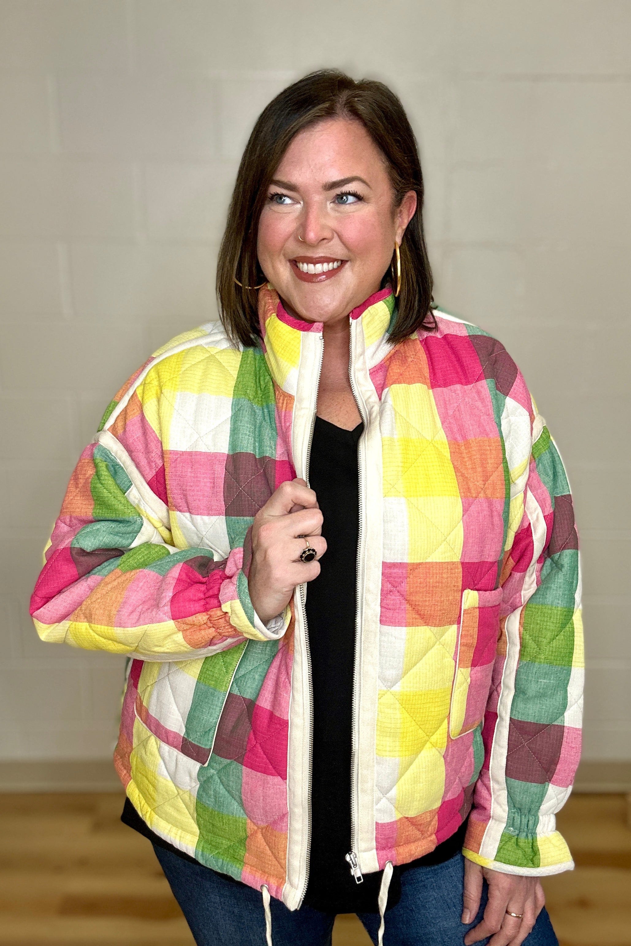 Stay cozy and stylish in this vibrant multi-color plaid puffer jacket from J.nna. The front zip makes layering effortless, while practical front pockets keep your essentials within reach. Perfect for adding a pop of pattern to any outfit, this jacket brings both warmth and personality to your cold-weather wardrobe. Whether you're heading out for adventure or just running errands, this playful piece has got you covered.