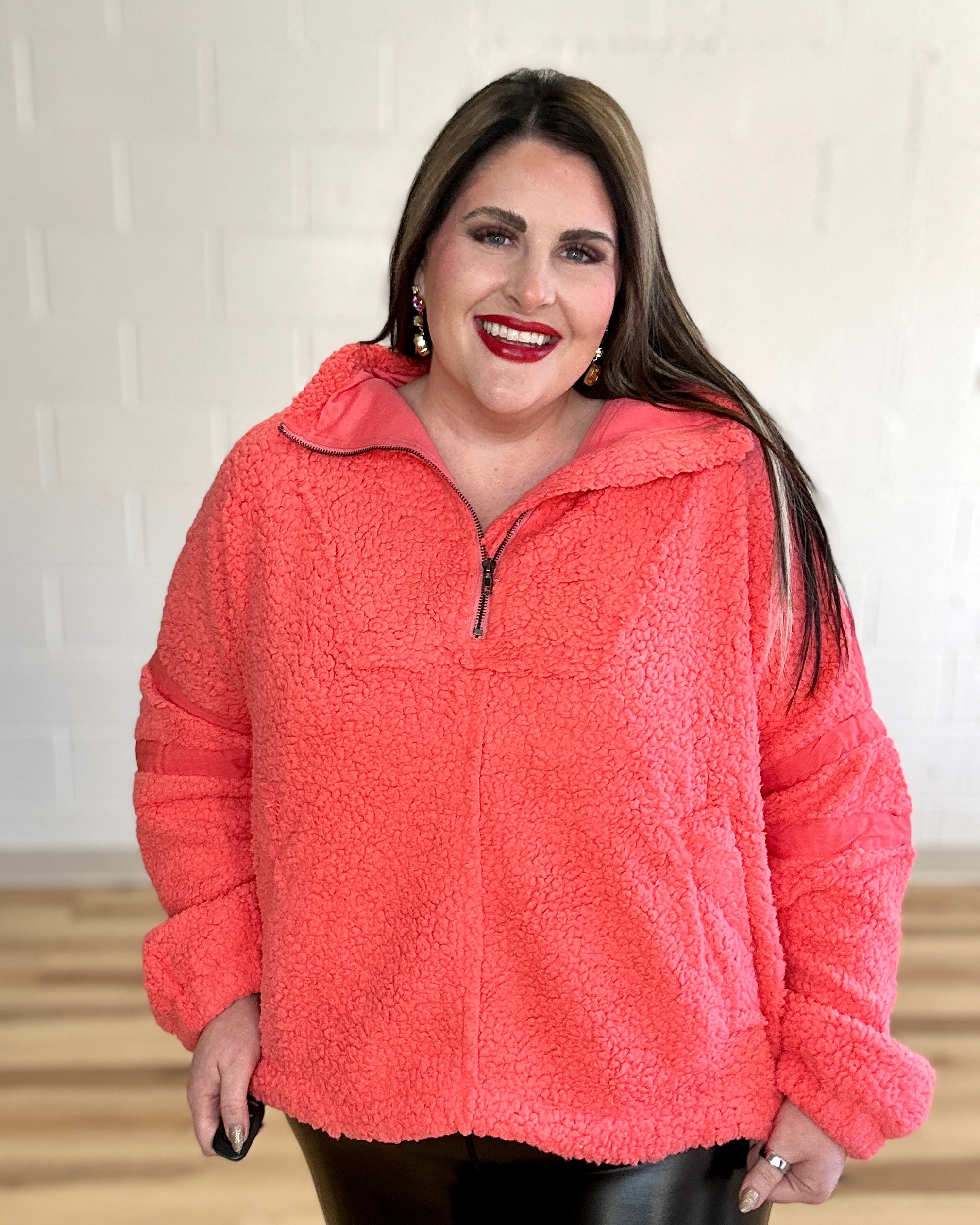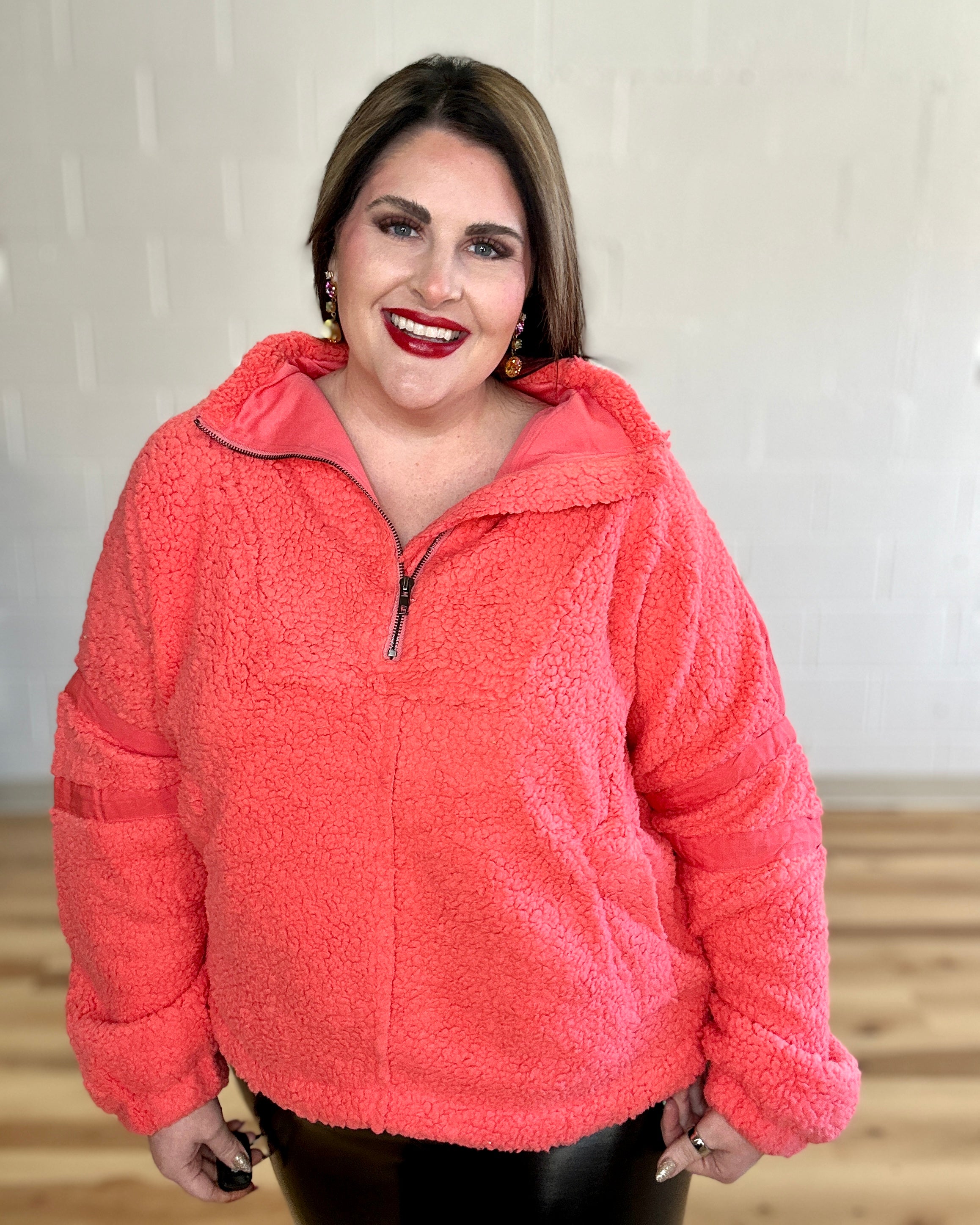 Elevate your casual wardrobe with this neon pink sherpa half-zip jacket from Davi&Dani. Crafted with a plush sherpa lining for warmth and comfort, this versatile piece features a convenient half-zip front for easy layering and functional pockets to keep your essentials close. The solid design pairs effortlessly with any outfit, making it an essential addition to your everyday collection.